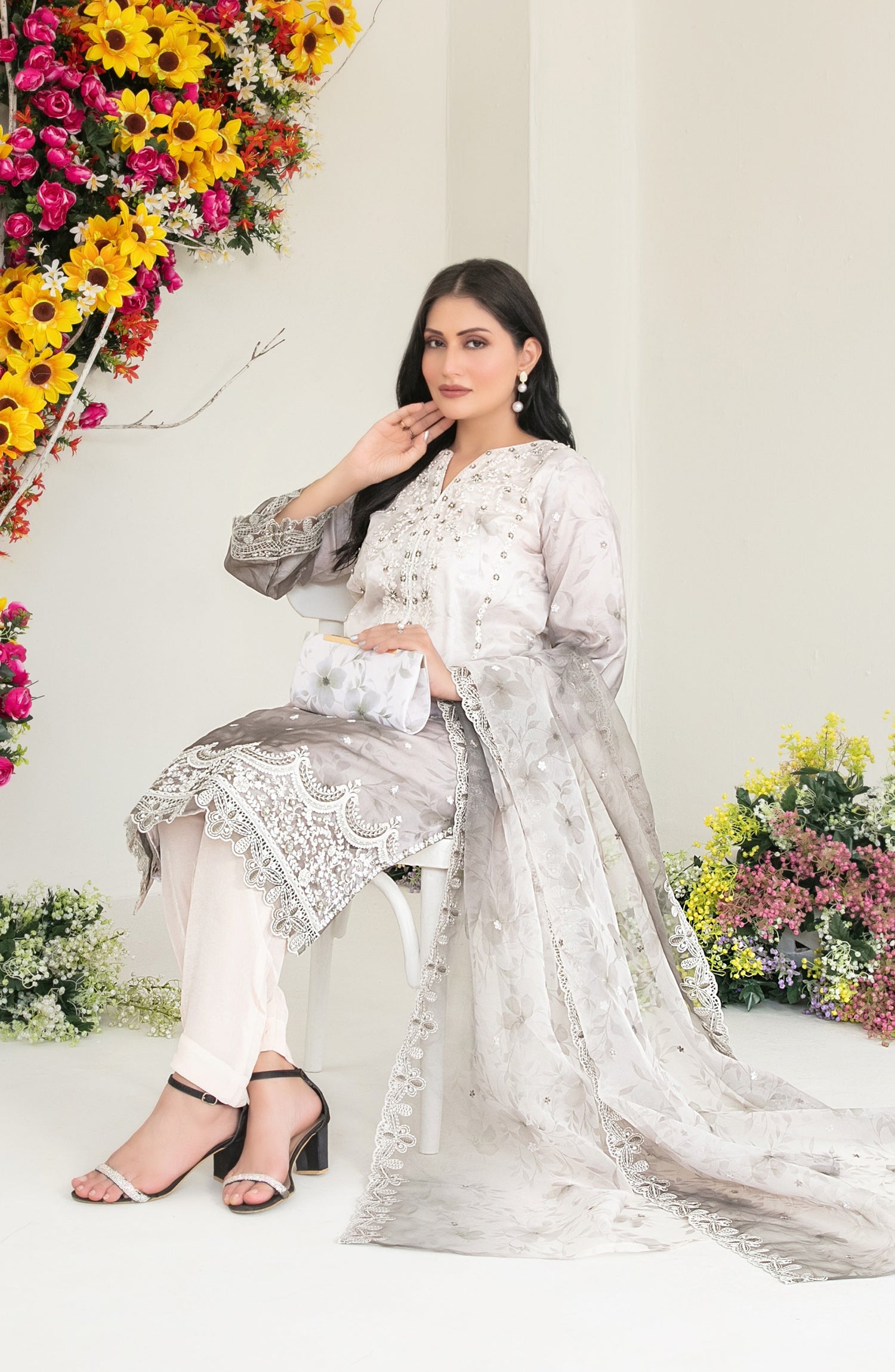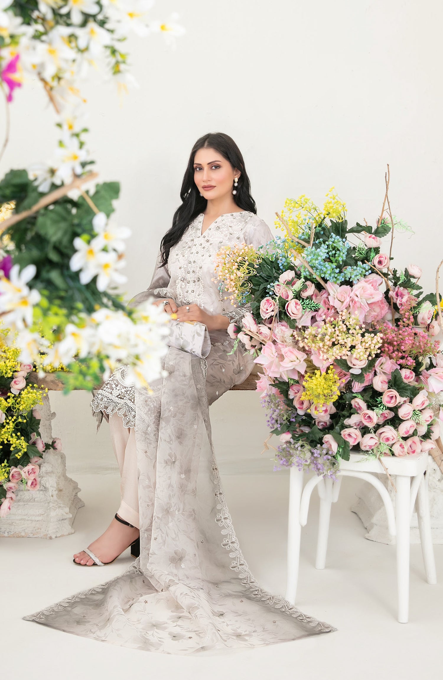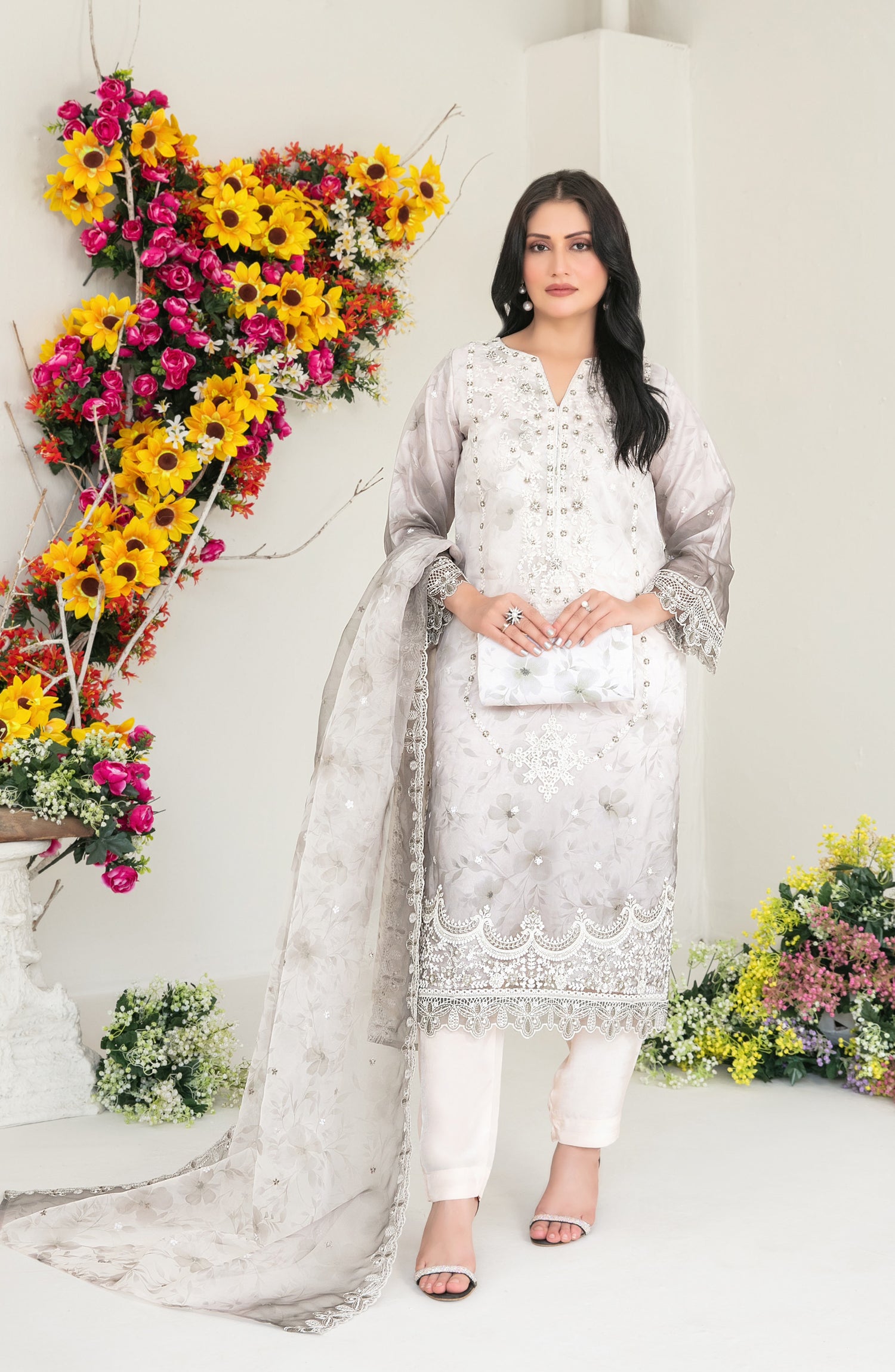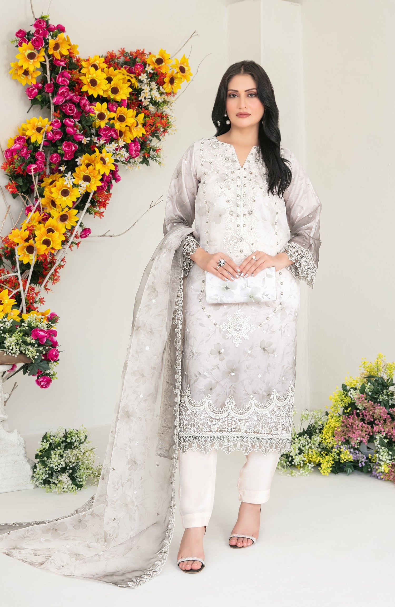 Gulyaz by Tawakkal Fabric Embroidered Organza Stitched 3 Piece Suit - D-1936 - TF25GYZ - Grey - Festive Collection