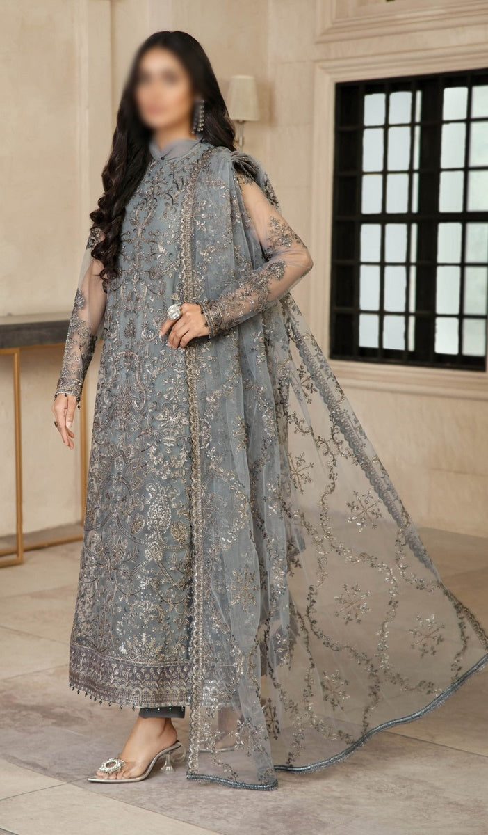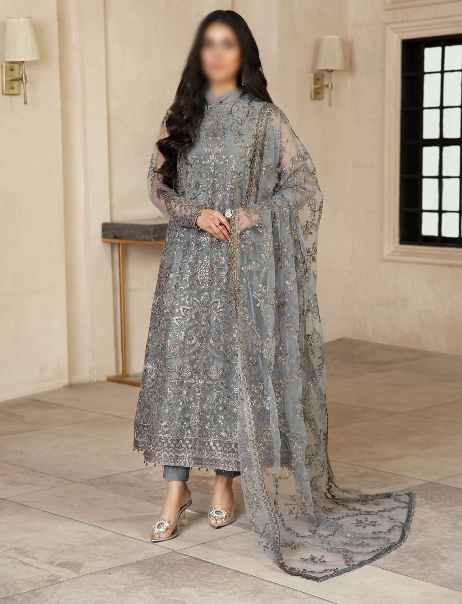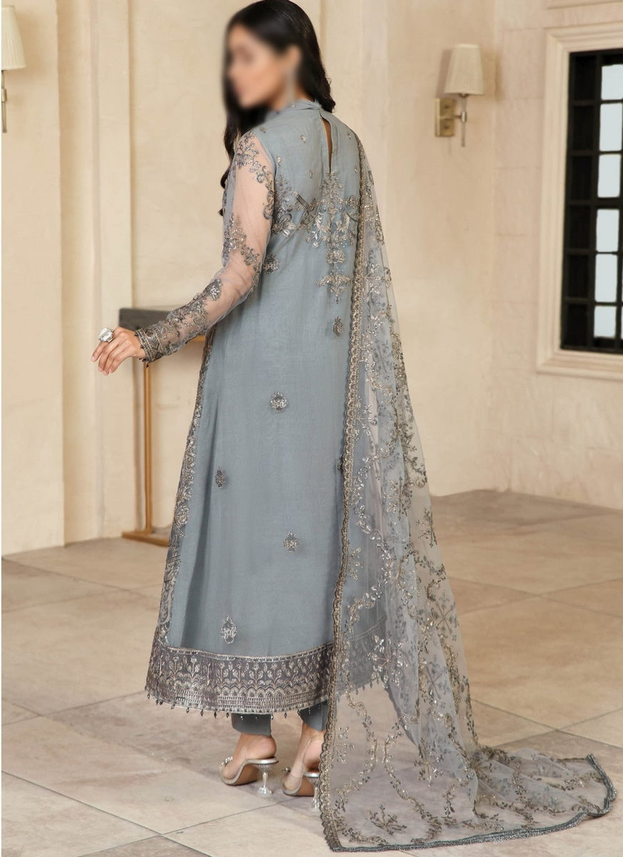 Amna Khadija Embroidered Crinkle Chiffon Unstitched 3 Piece Suit - D-04 - AM25LXC - Grey - Formals Collection