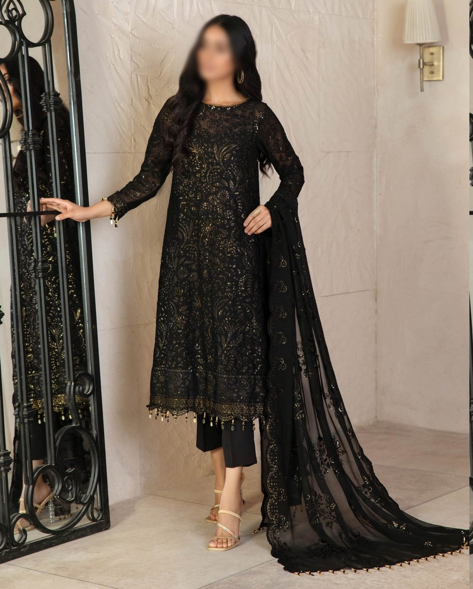 Amna Khadija Embroidered Crinkle Chiffon Unstitched 3 Piece Suit - D-04 - AM25LXC - Grey - Formals Collection