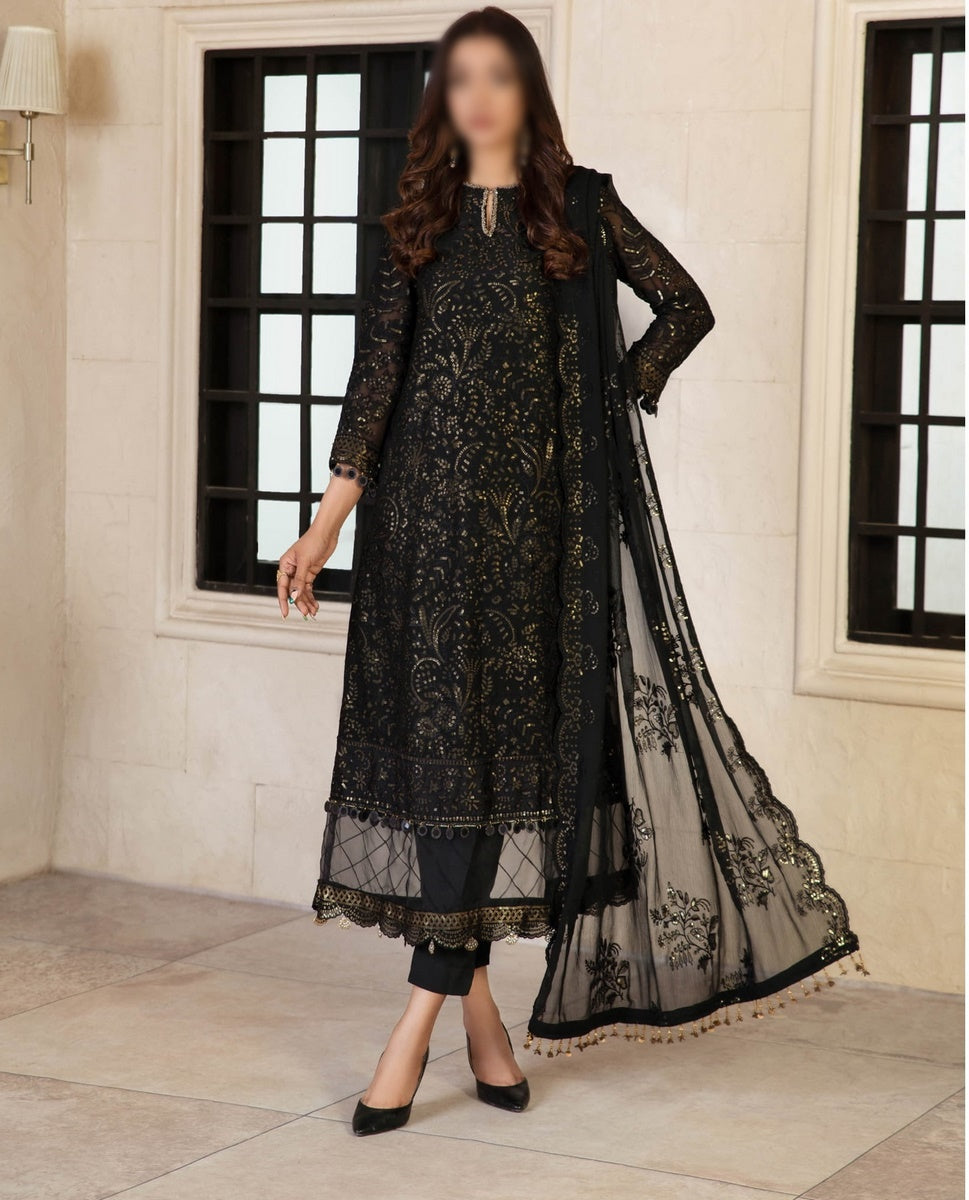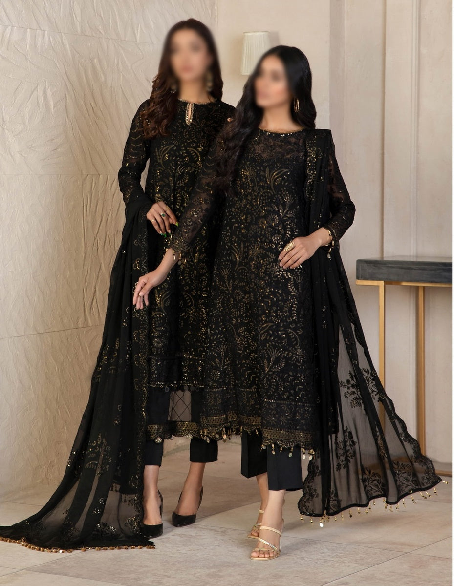 Amna Khadija Embroidered Crinkle Chiffon Unstitched 3 Piece Suit - D-03 - AM25LXC - Blue - Formals Collection
