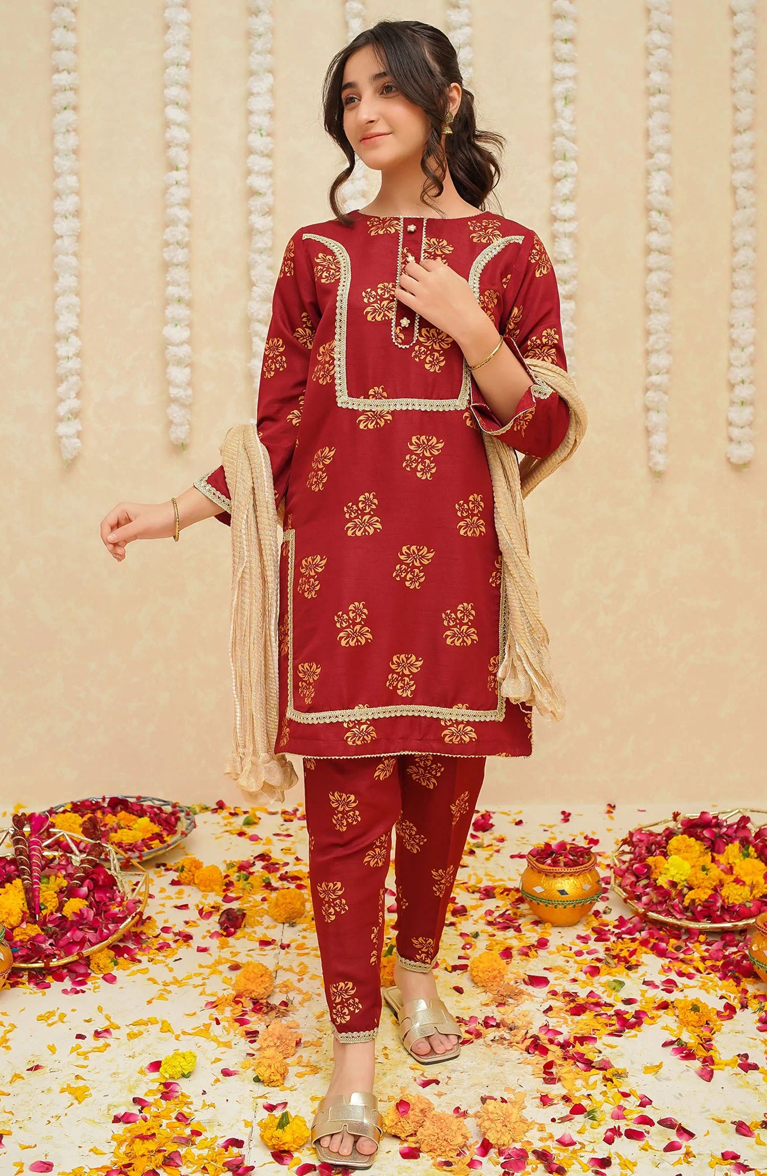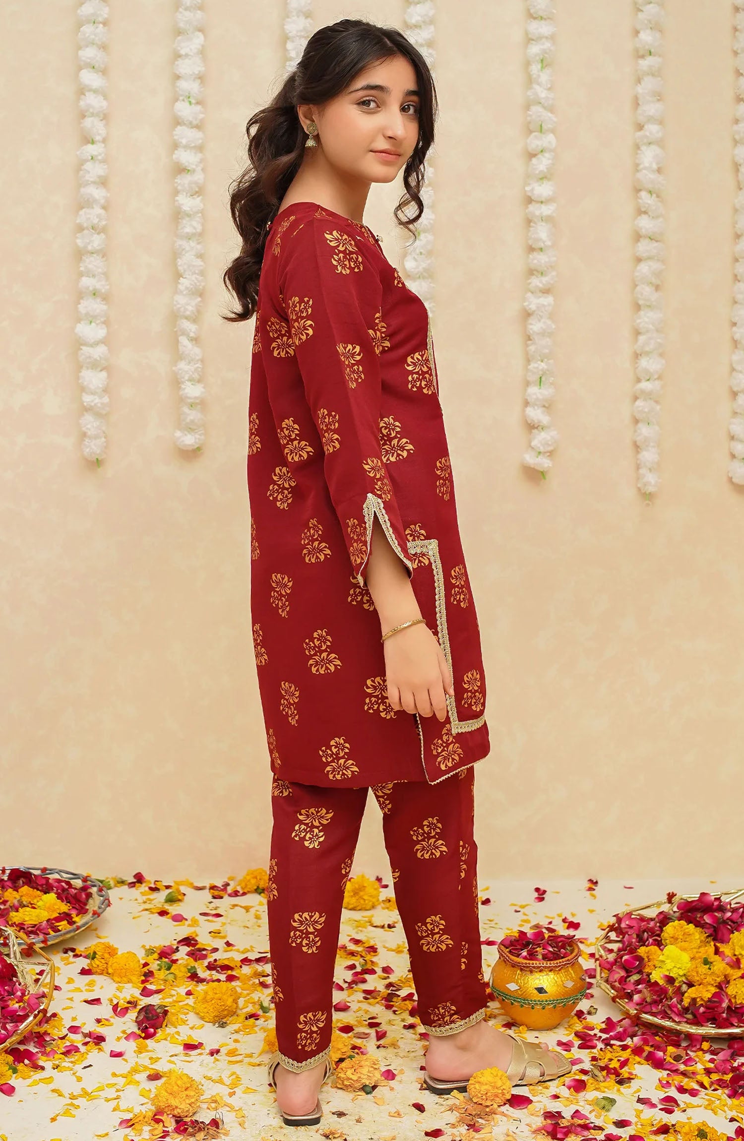 "This stunning Raw Silk shirt is beautifully designed with intricate neck detailing and daman golden lace embellishment. Itâ¬â¢s paired with a straight trouser,  making it an ideal choice for festive events and celebrations
