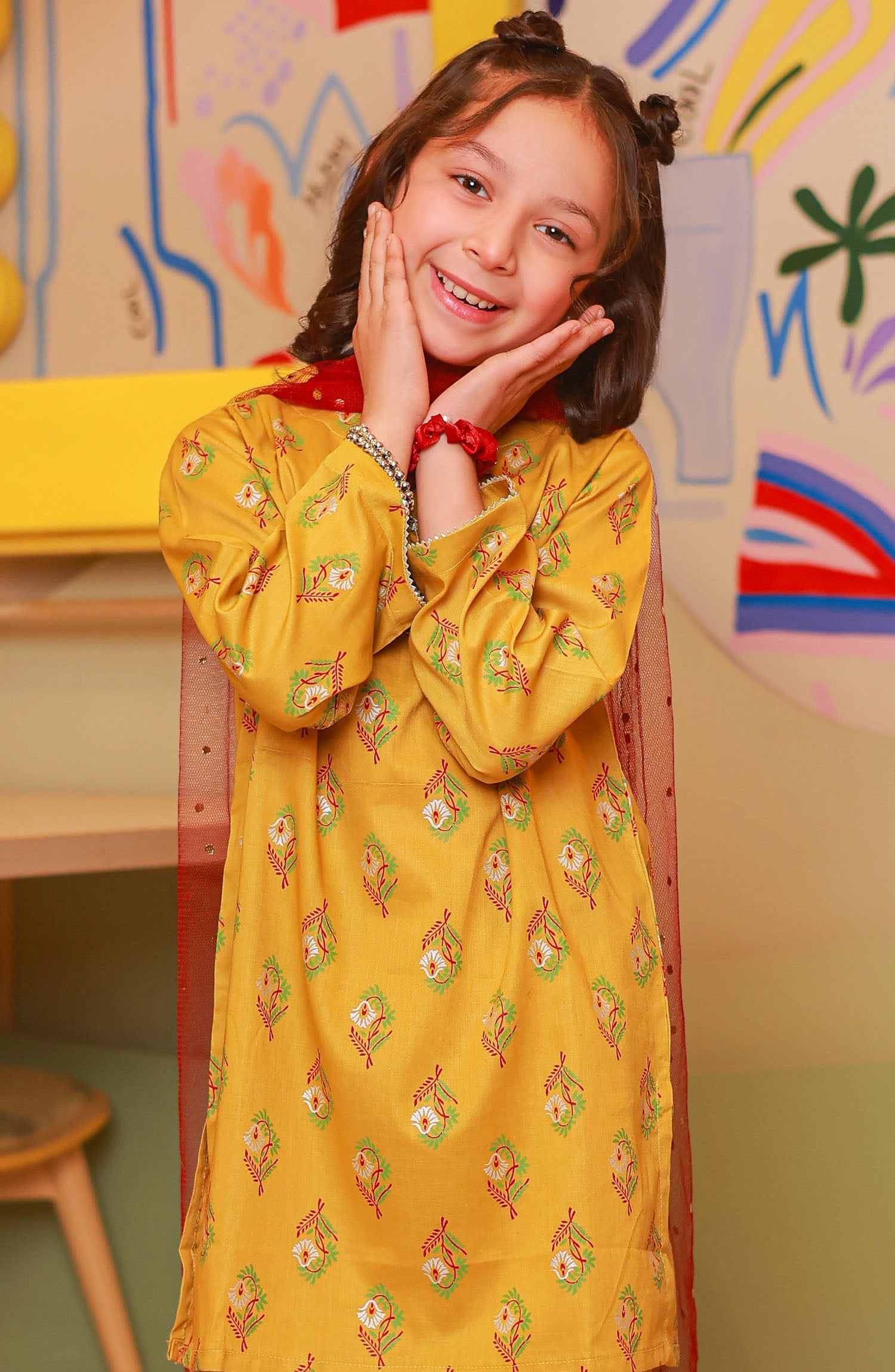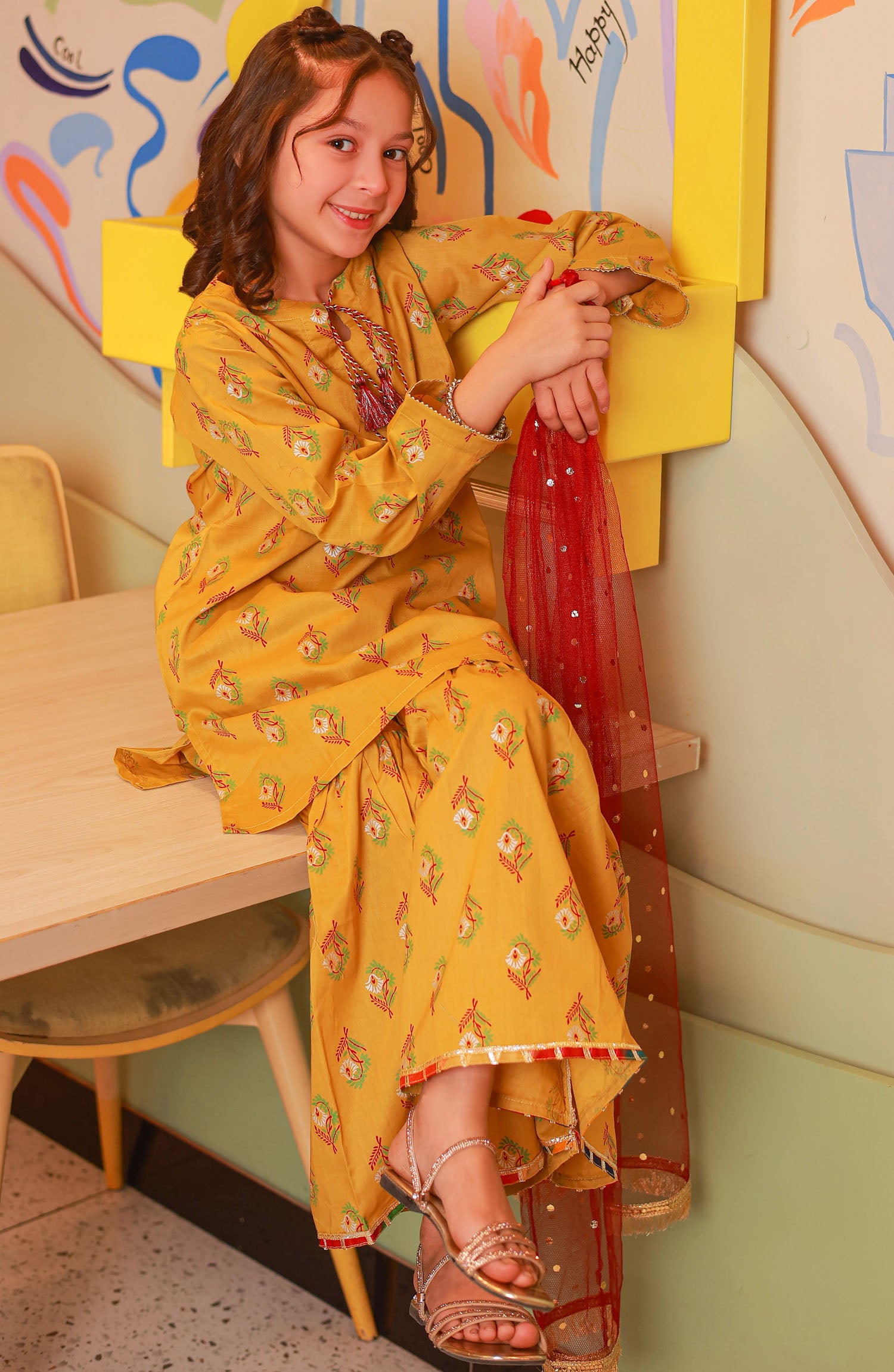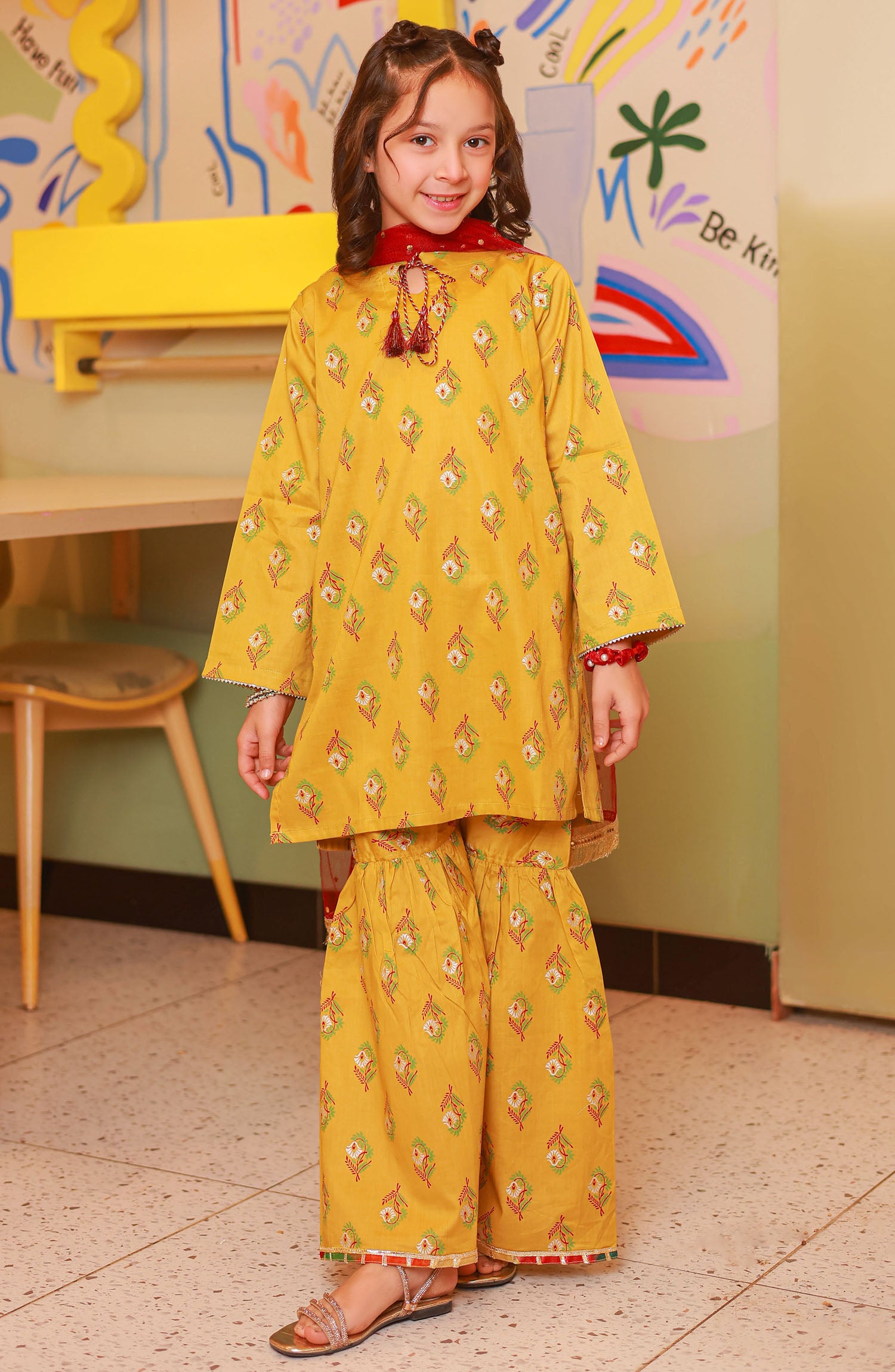 The standard style comes as a long-sleeved kameez with dupatta and trouser/shawlar.