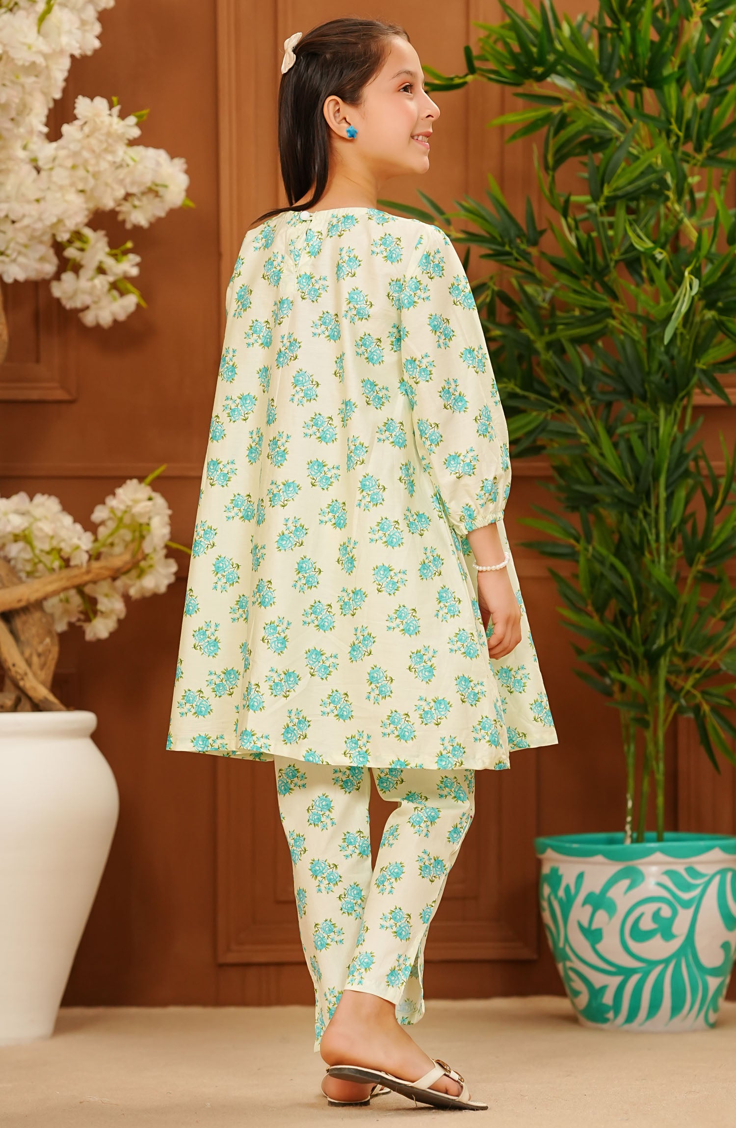Home Guriya by Amna Khadija Printed Lawn Stitched 2 Piece Frock - GFE-03 - AM25GFE - Off White - Summer Girls Collection