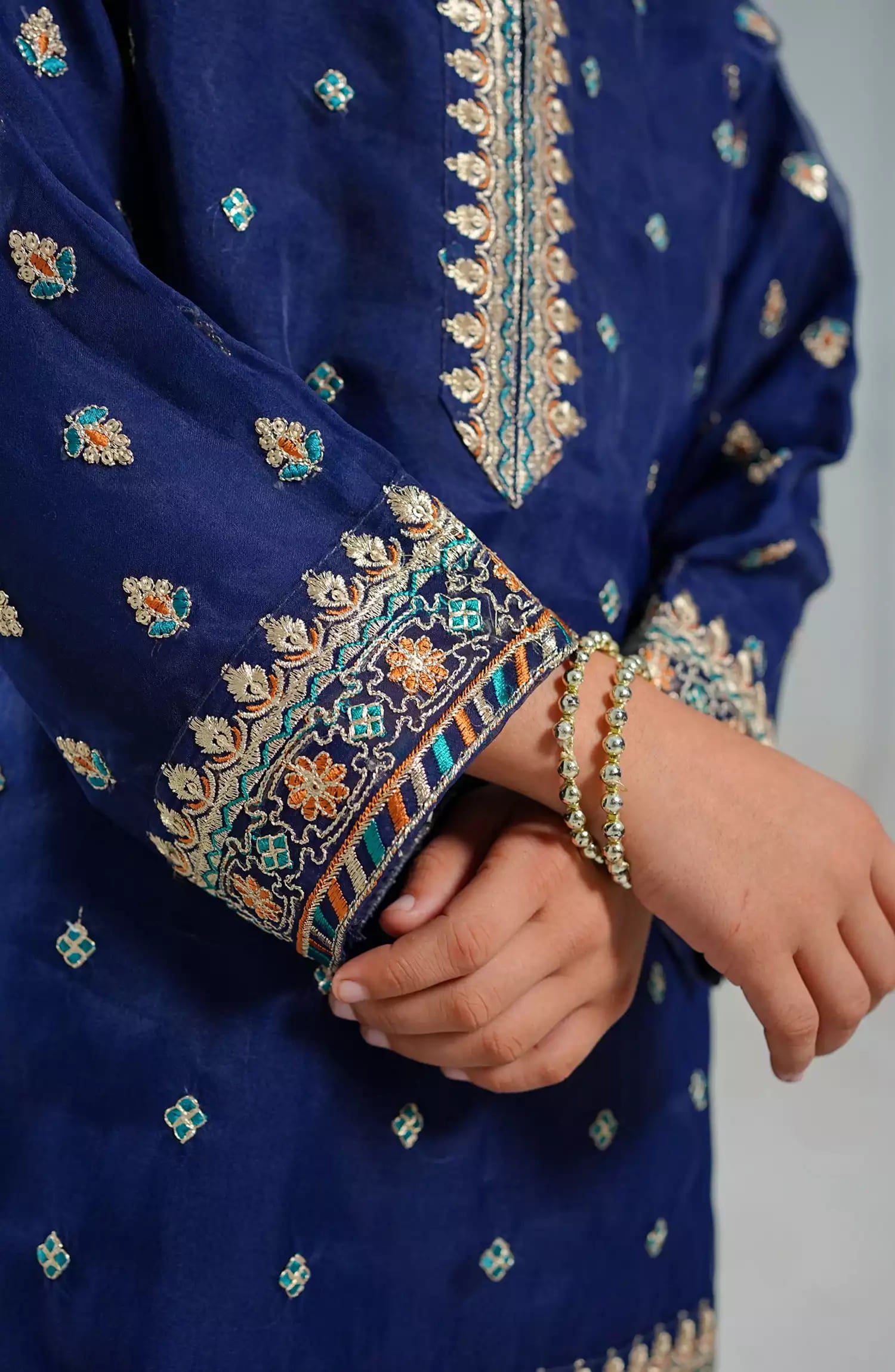 The standard style comes as a long-sleeved kameez with dupatta and trouser/shawlar.