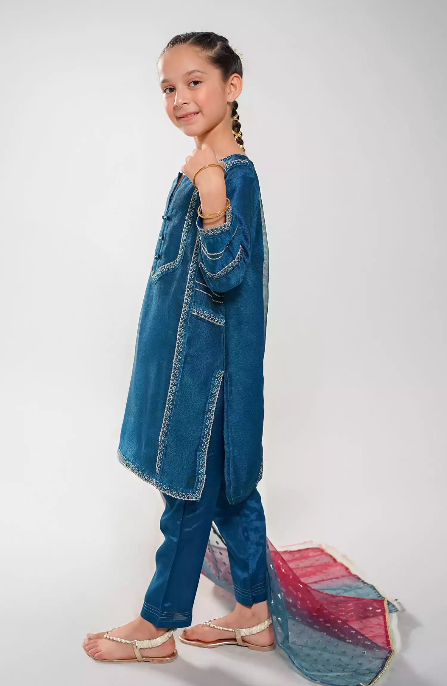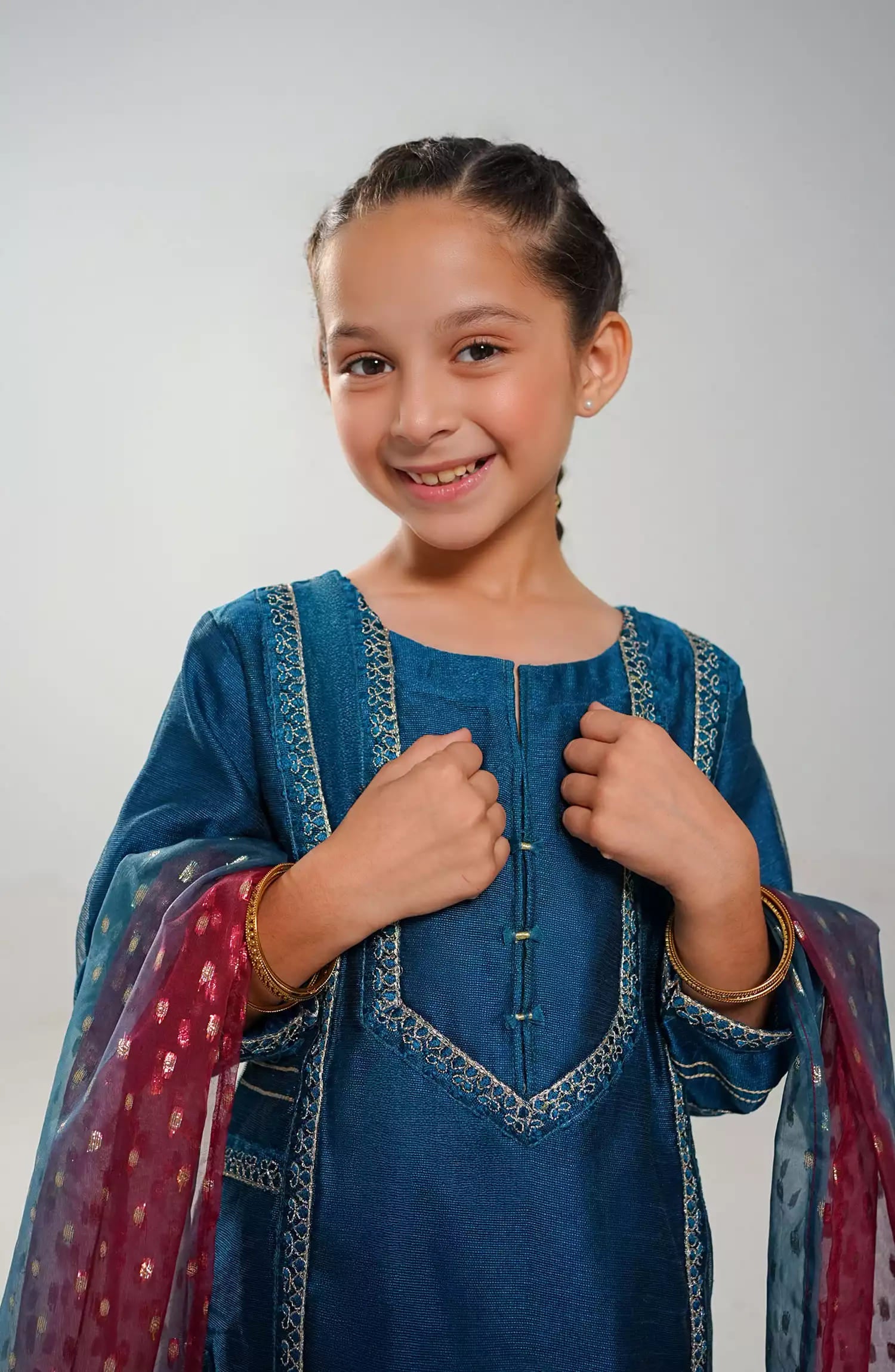 The standard style comes as a long-sleeved kameez with dupatta and trouser/shawlar.