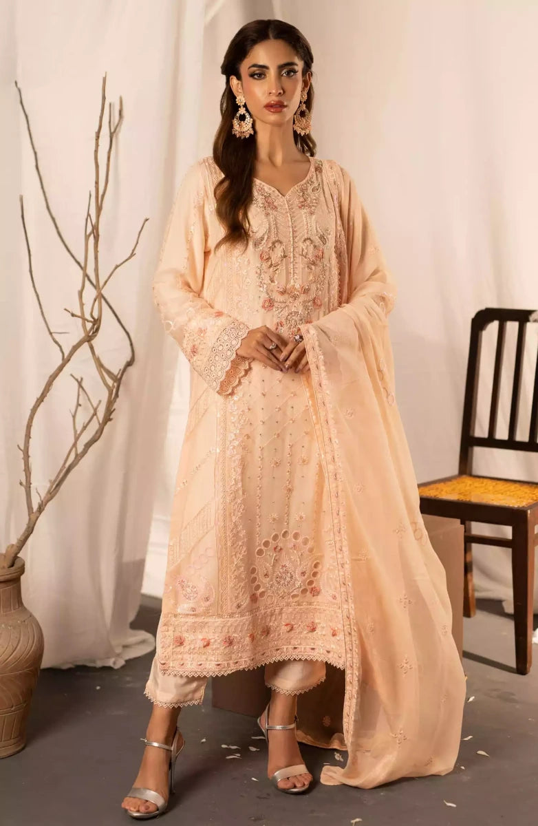 BACK EMBROIDERED CHIFFON EMBROIDERED WITH CUT WORK