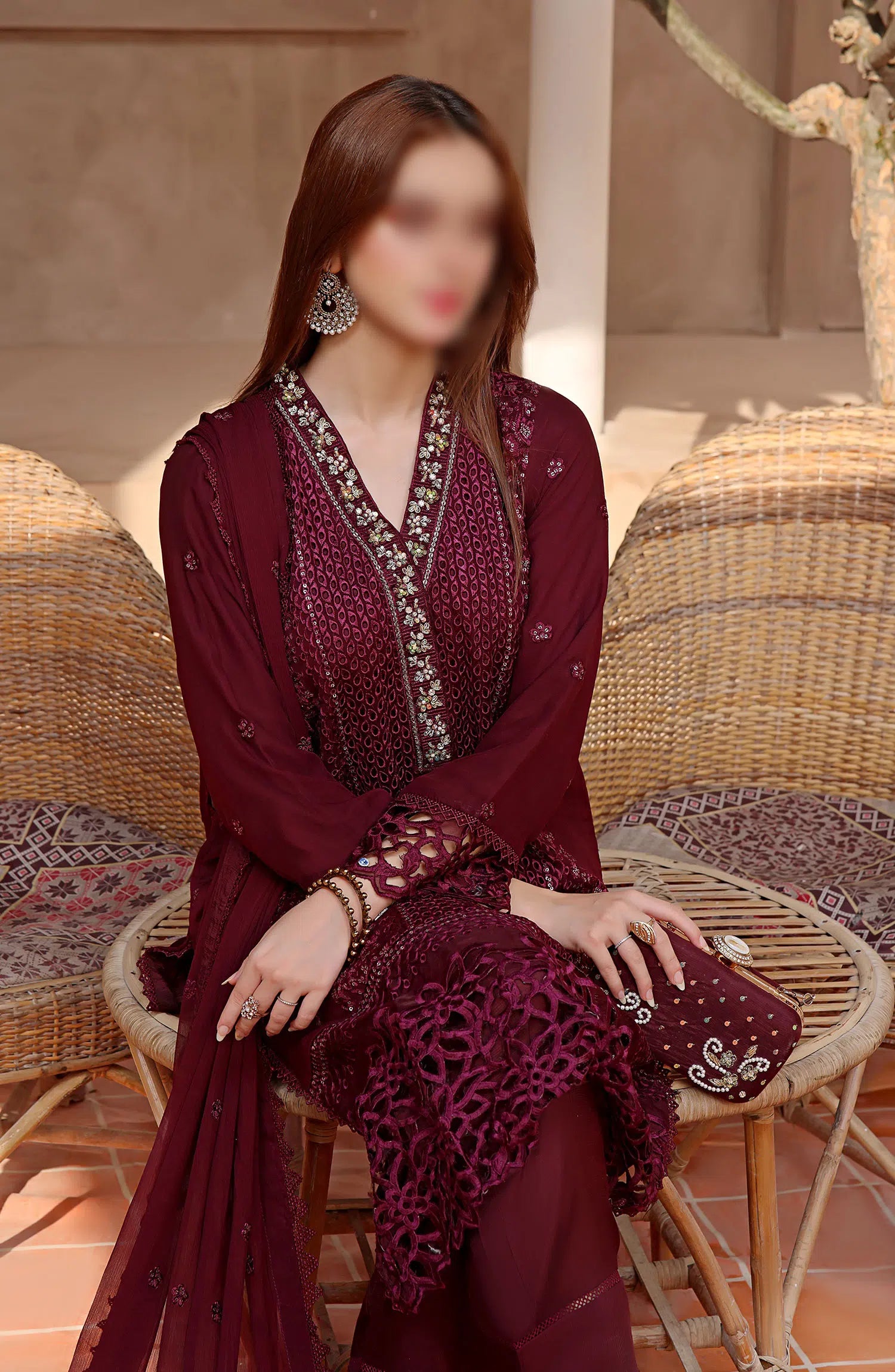 Guzel Hazel Formal 3 Piece Stitched Collection - CRIMSON