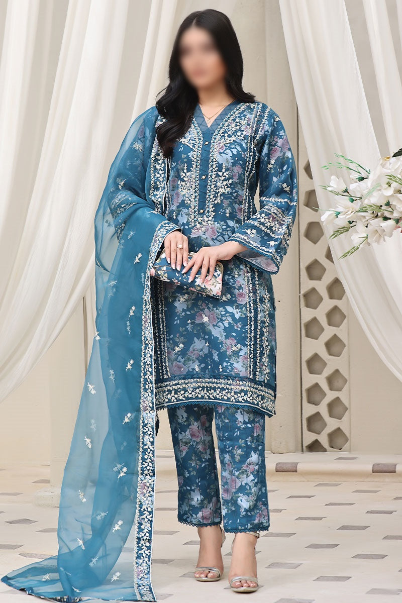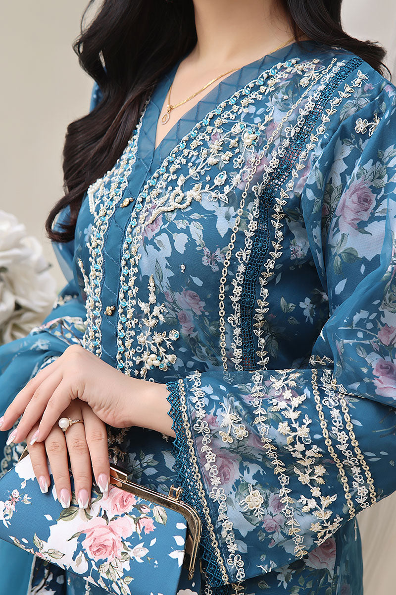Guzel Rangreza Flora Organza Formal 3 piece Stitched Collection has been styled in the image for photography and illustrative purposes.