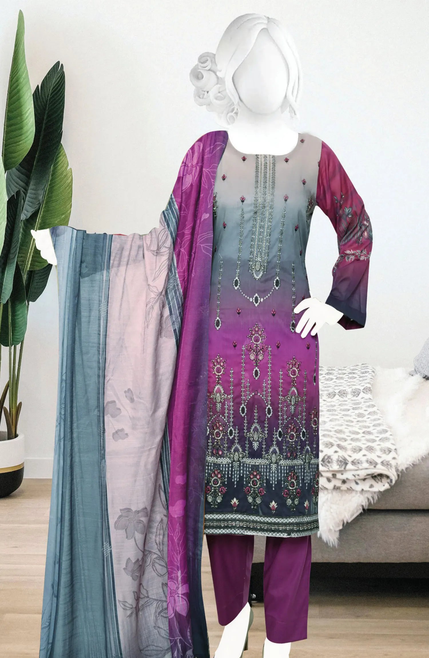 Afsanay by Sadabahar Embroidered Chiffon Stitched 3 Piece Suit - Design-06 - SBD25AFSN - Purple - Luxury Collection