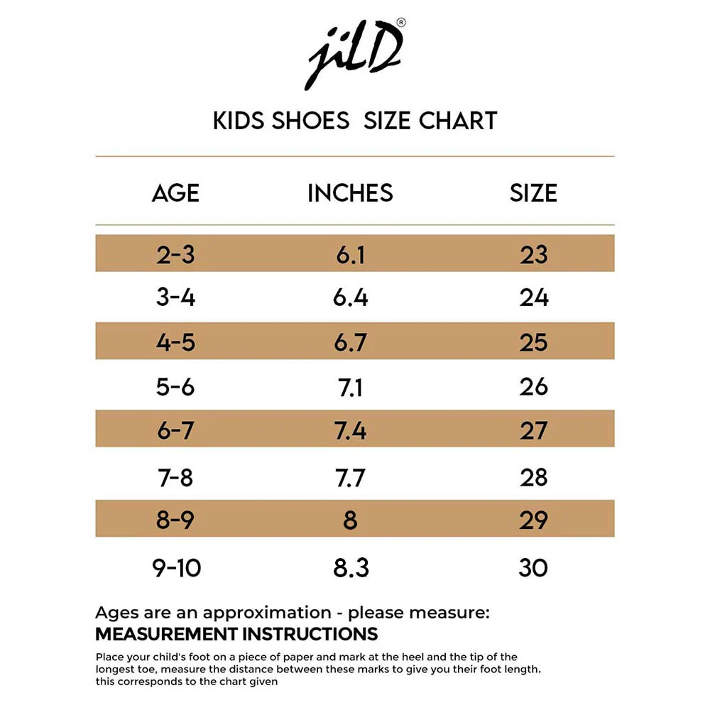 Place your child's foot on a piece of paper and mark at the heel and the tip of the longest toe, measure the distance between these marks to give you their foot length, this corresponds to the chart below.