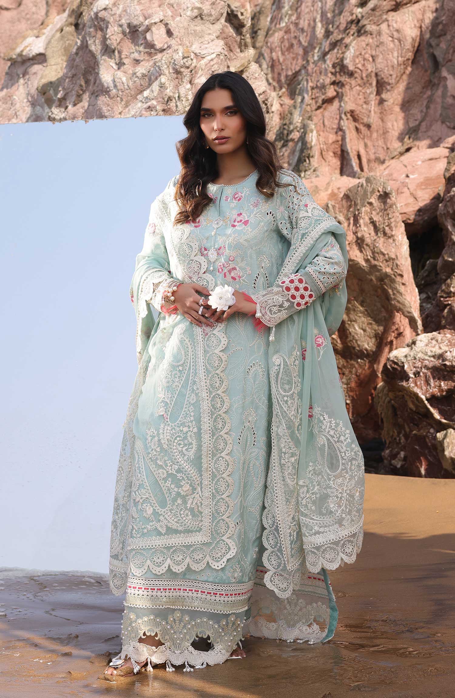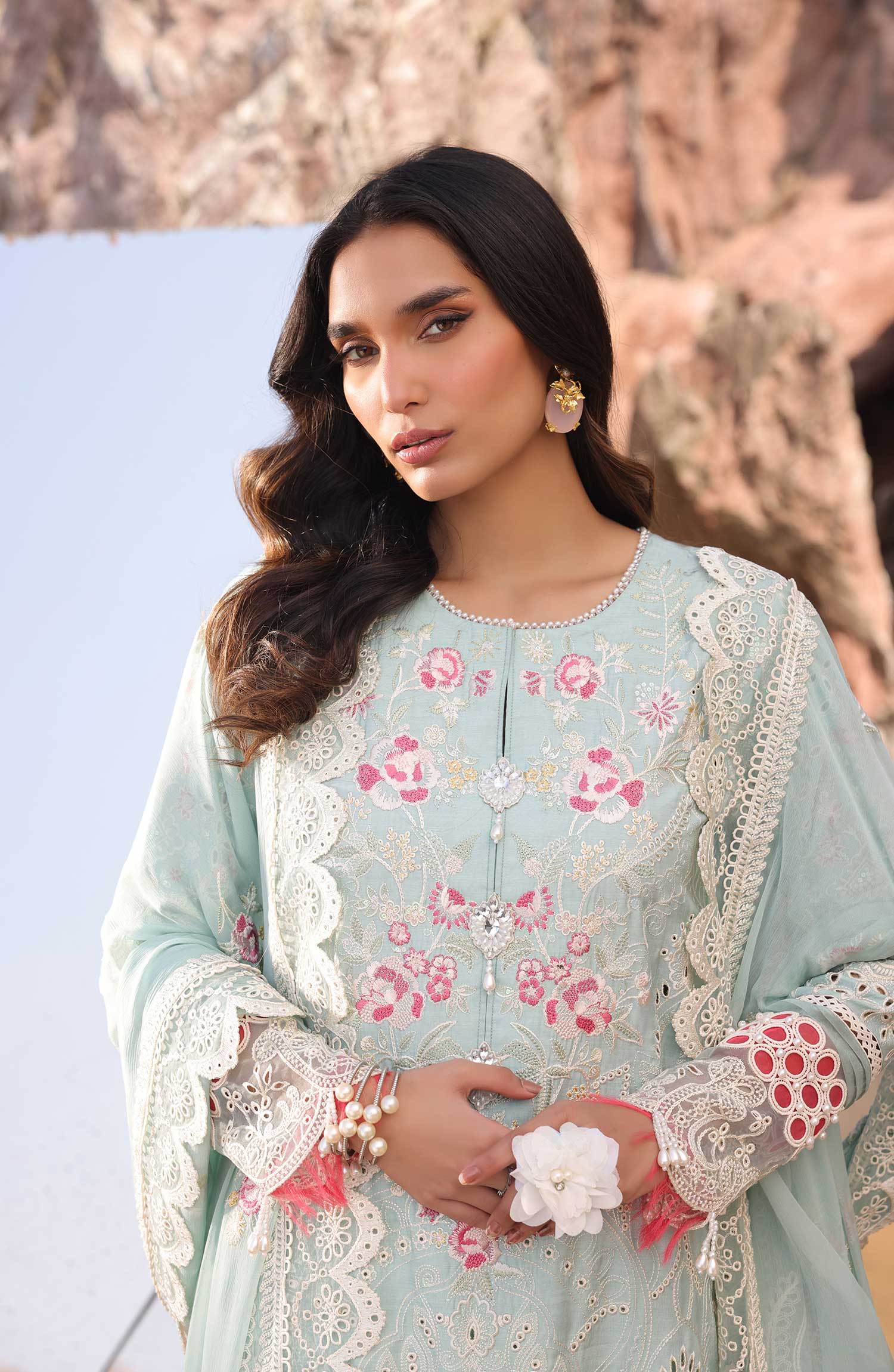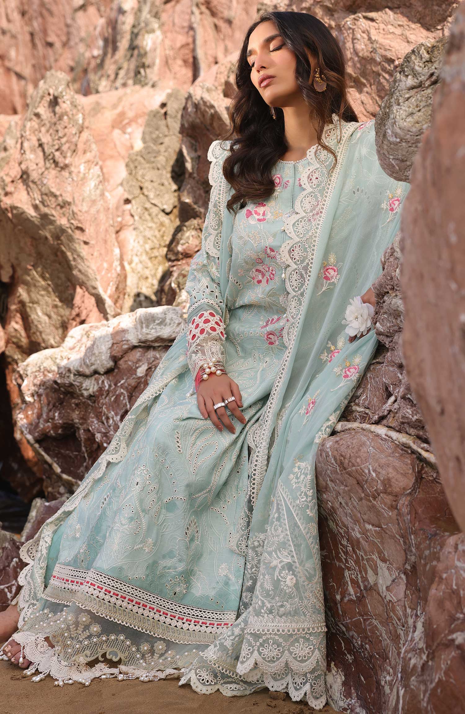 Hania Luxury Lawn Collection 2025 By Serene has been styled in the image for photography and illustrative purposes.