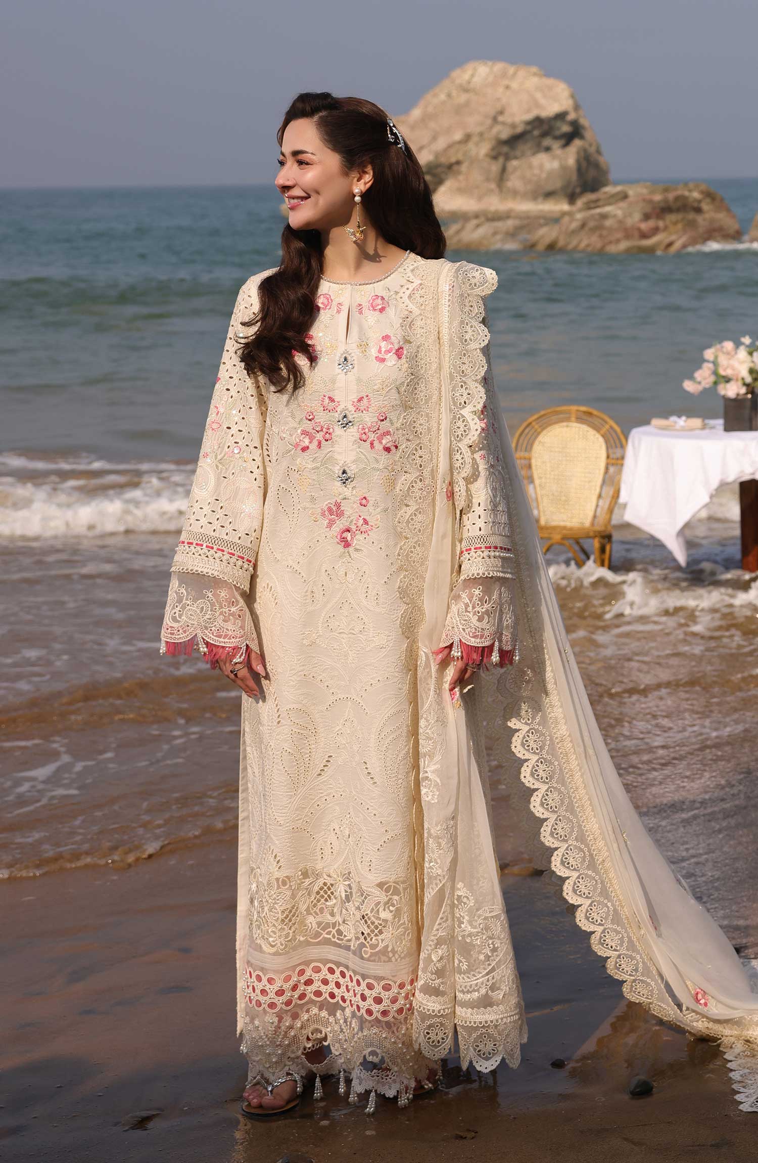 Hania Luxury Lawn Collection 2025 By Serene has been styled in the image for photography and illustrative purposes.