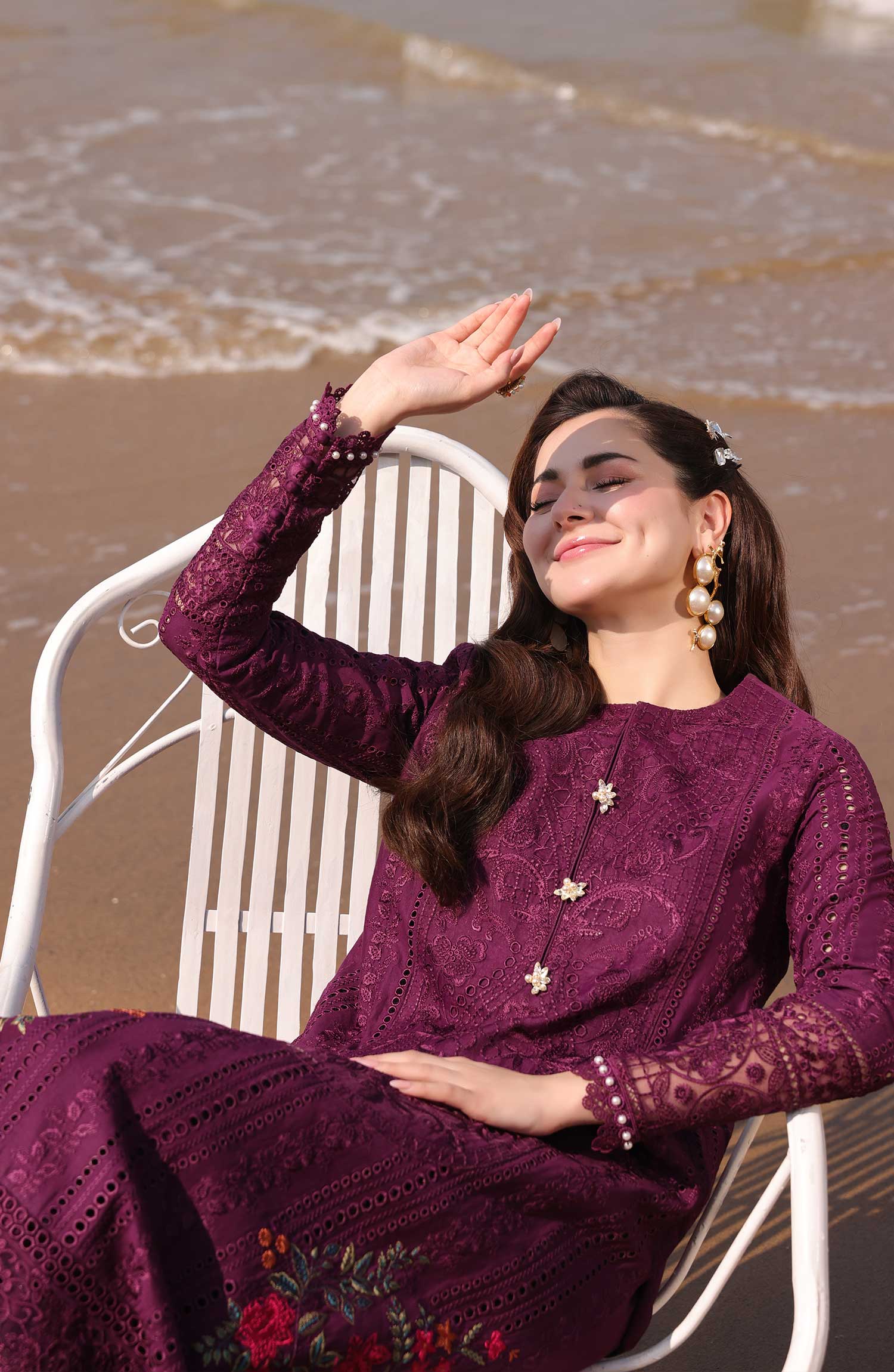 Hania Luxury Lawn Collection 2025 By Serene has been styled in the image for photography and illustrative purposes.
