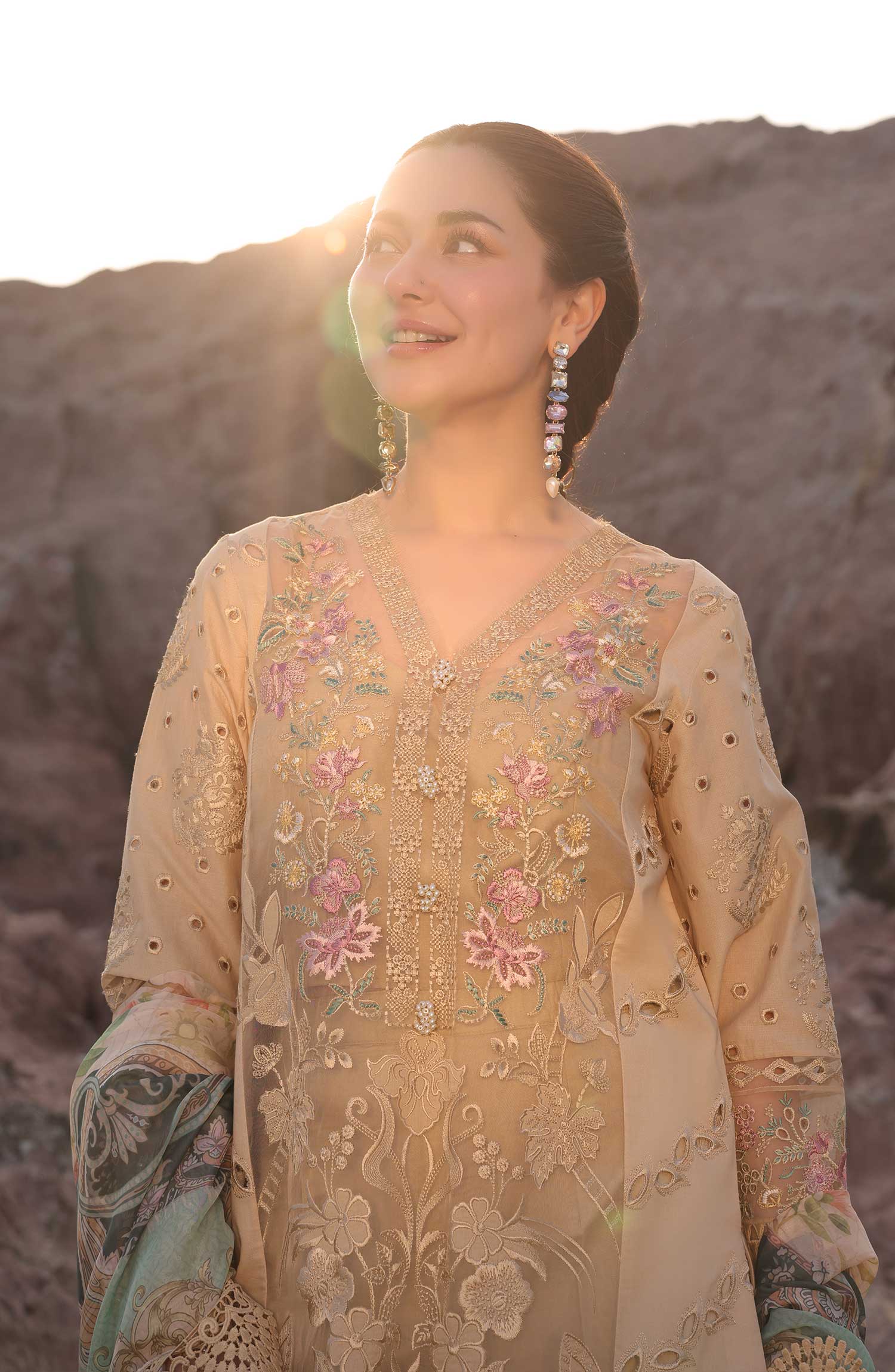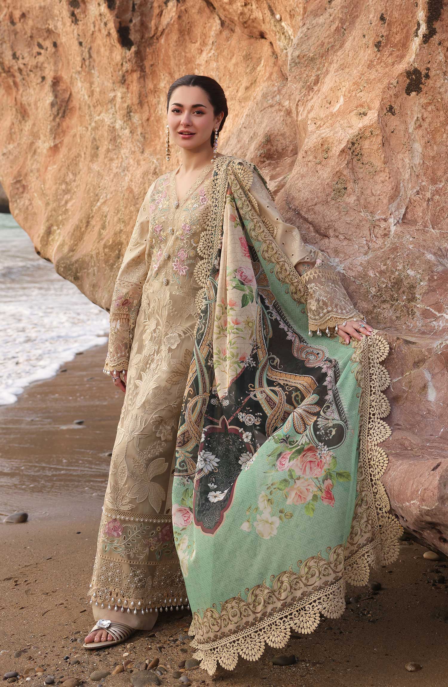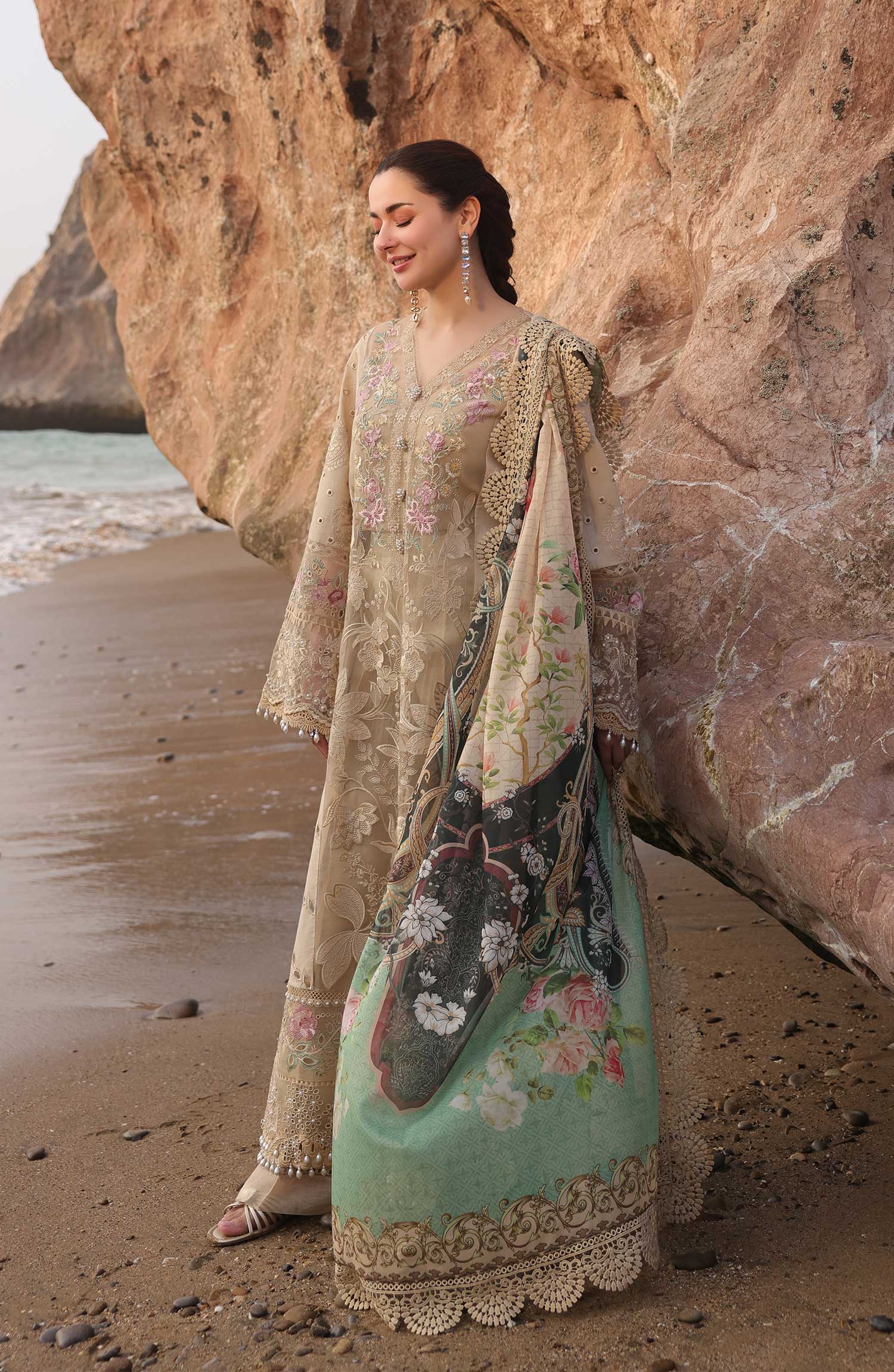 Hania Luxury Lawn Collection 2025 By Serene has been styled in the image for photography and illustrative purposes.