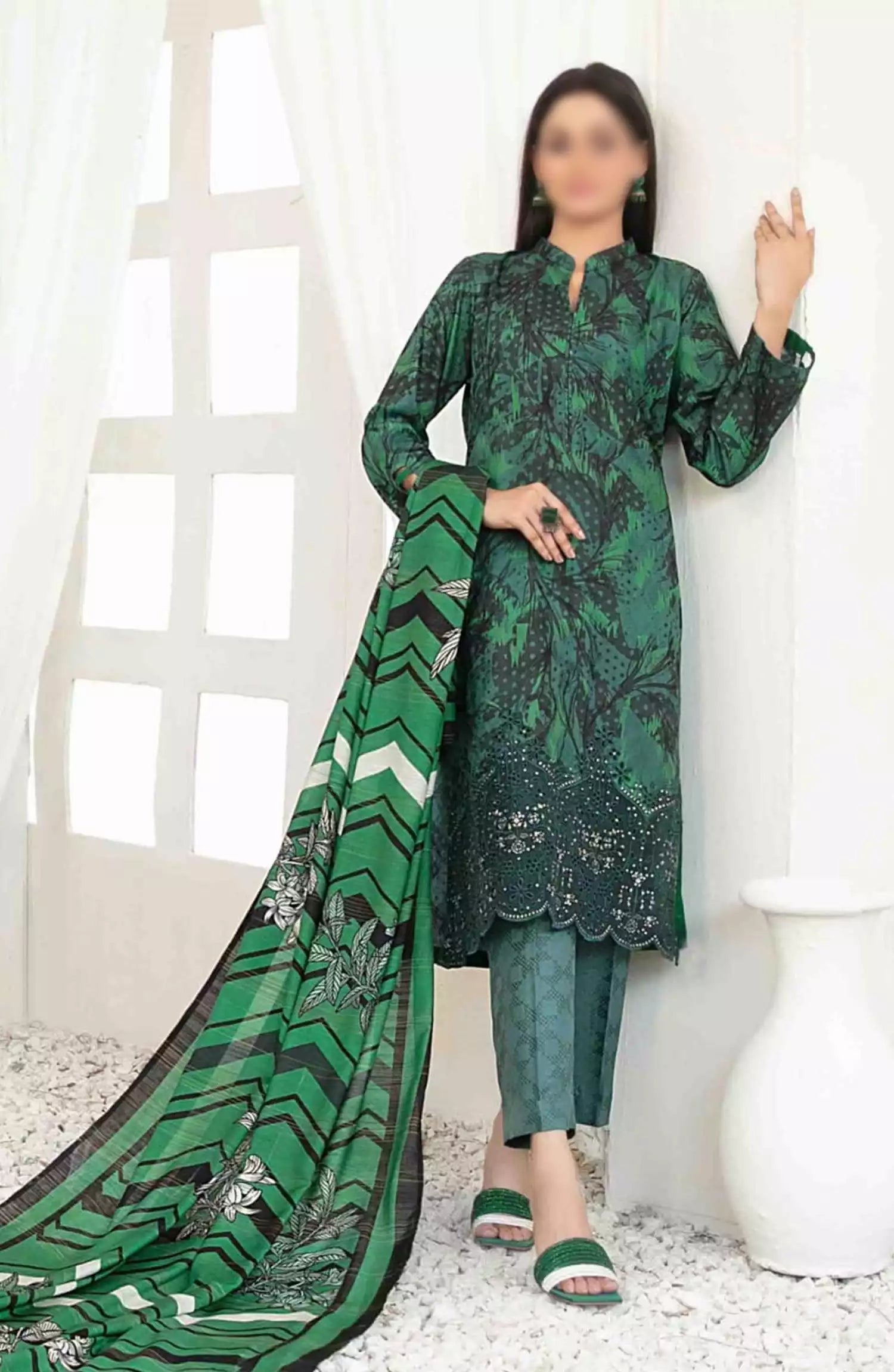 Sadabahar Luxury Embroidered Dhanak Stitched 3 Piece Suit - Design-02 - SBD25LXD - Green - Winter Collection