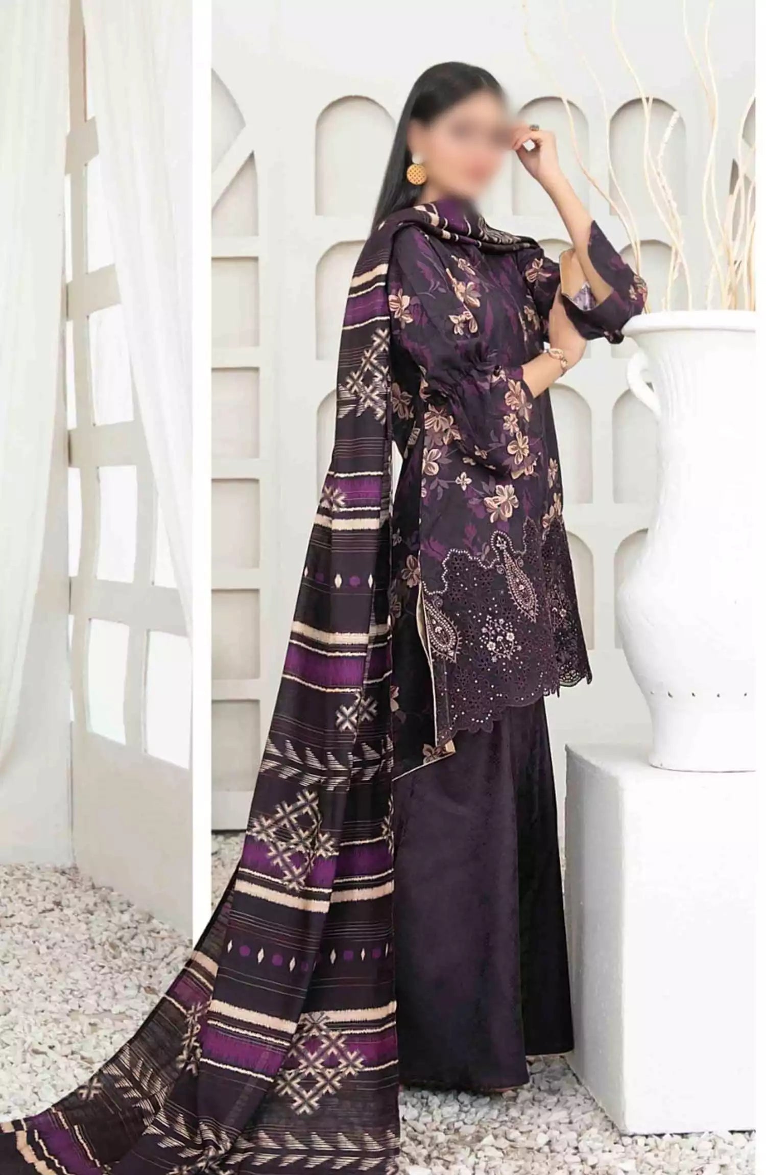 Harika - Embroidered Digital Viscose Jacquard Collection has been styled in the image for photography and illustrative purposes.