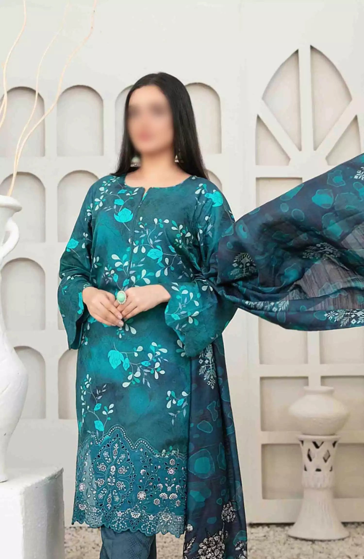 Sadabahar Printed Khaddar Stitched 3 Piece Suit - Design-04 - SBD25SHIMR - Teal - Winter Collection