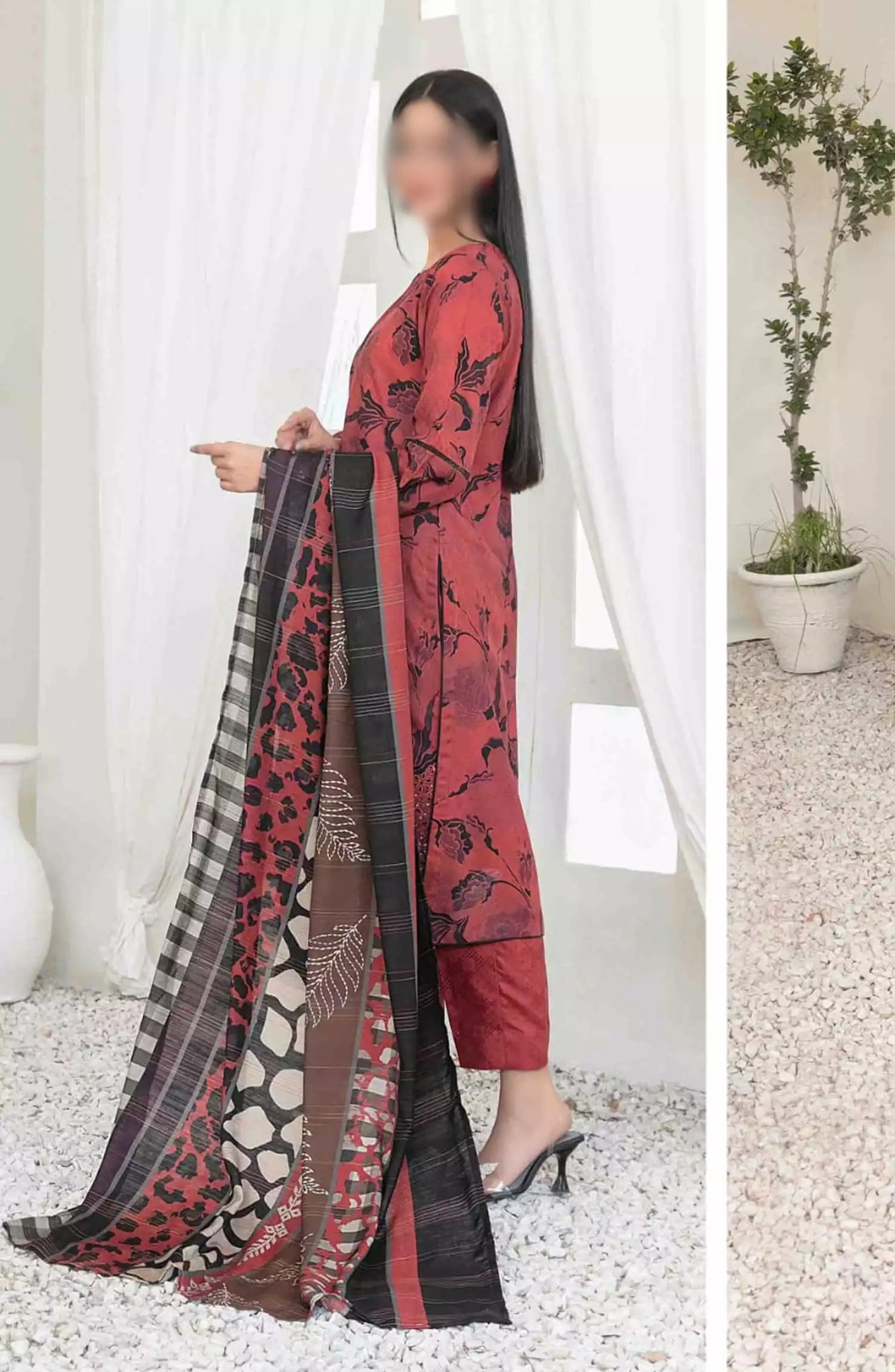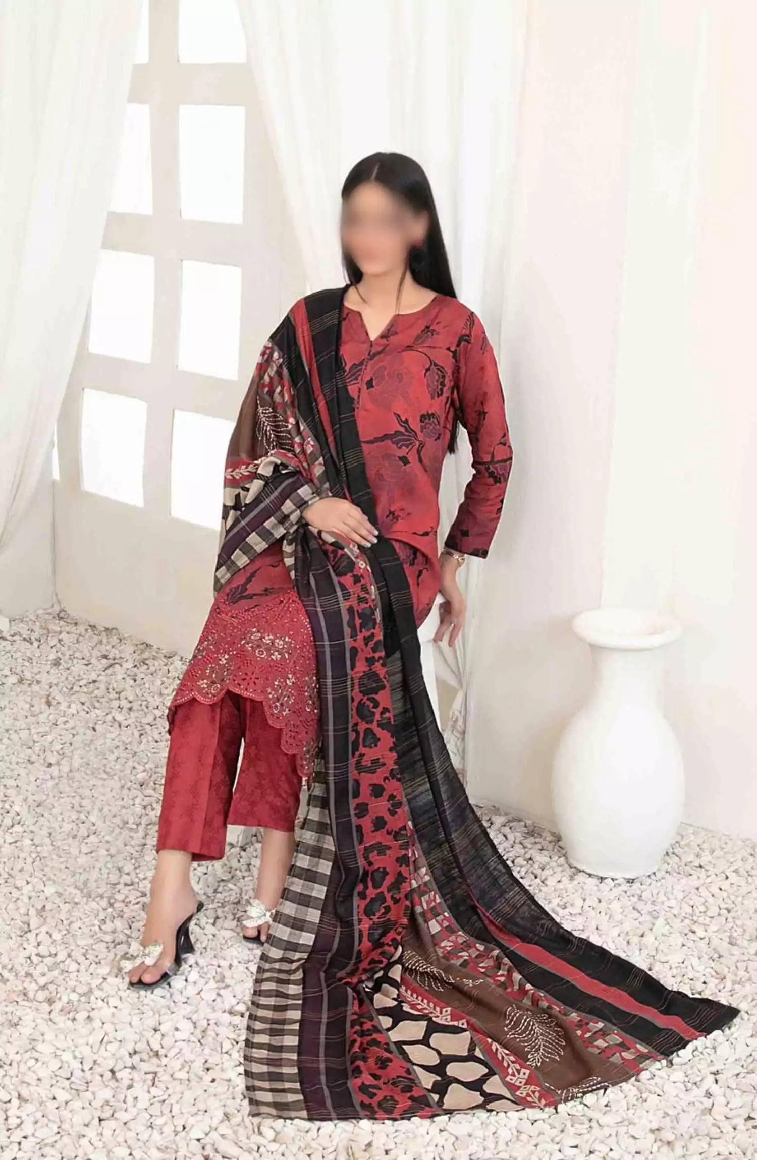 Sadabahar Luxury Embroidered Dhanak Stitched 3 Piece Suit - Design-03 - SBD25LXD - Red - Winter Collection