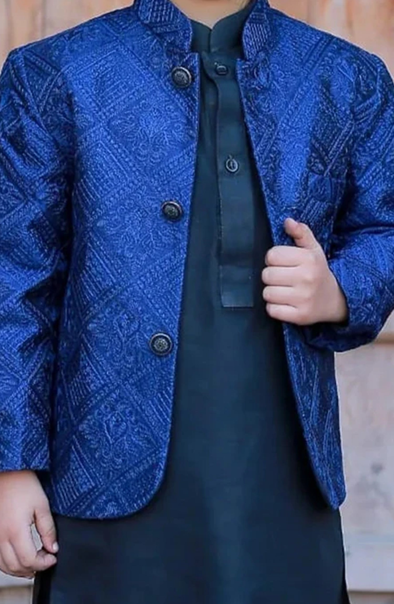 This blue prince coat is a stunning piece with intricate embroidery. It looks elegant and majestic. The blue colors adds a touch of sophistication, while the embroidery adds a unique and eye-catching detail. It’s the perfect choice for a special occasion or when you want to make a statement.