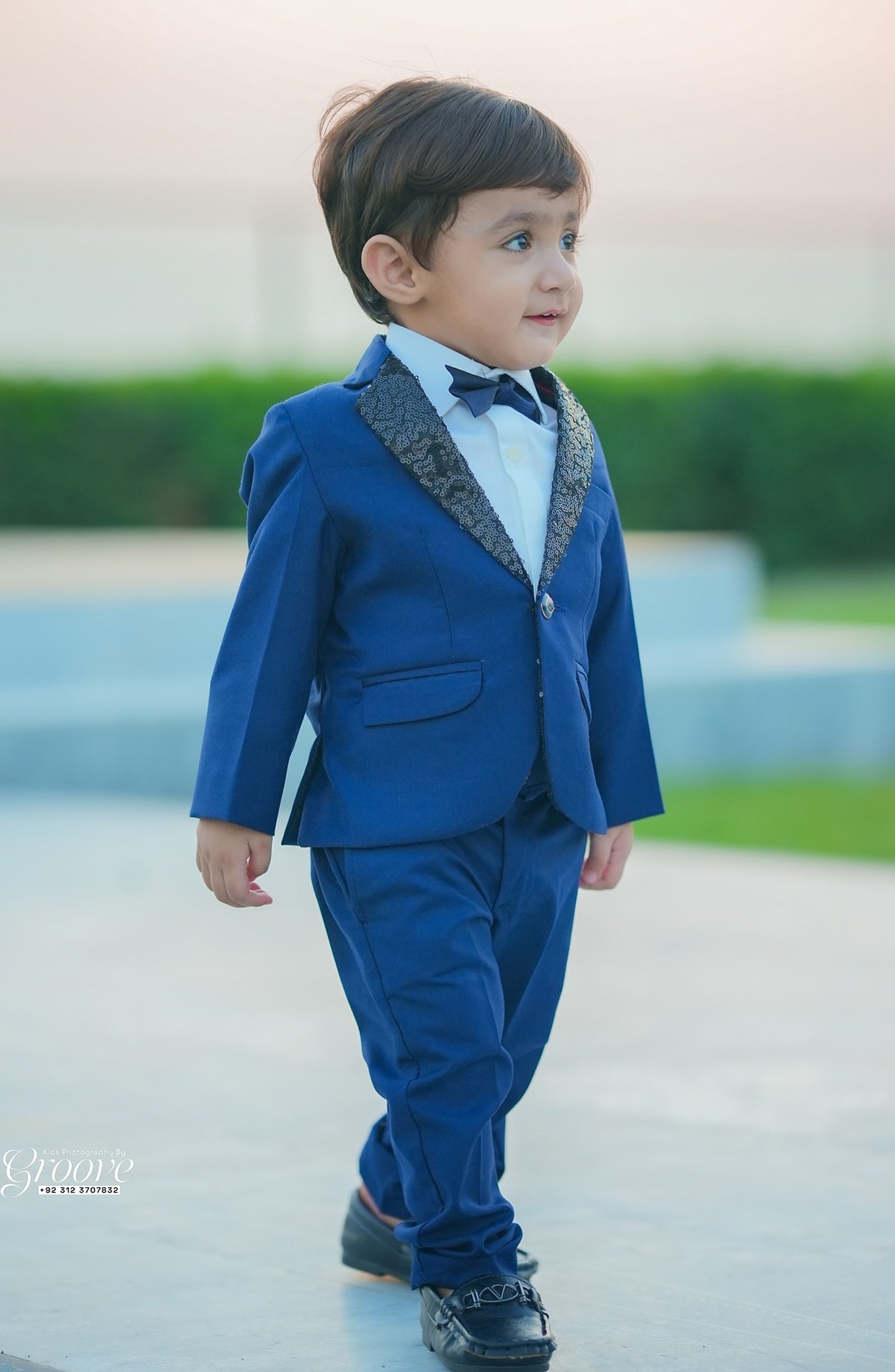 The coat pant is made from rich blue fabric and features intricate sequin work that adds a touch of sparkle and elegance. The bow tie adds a classy and sophisticated touch to the ensemble.This coat pant is sure to make a statement at any formal event.