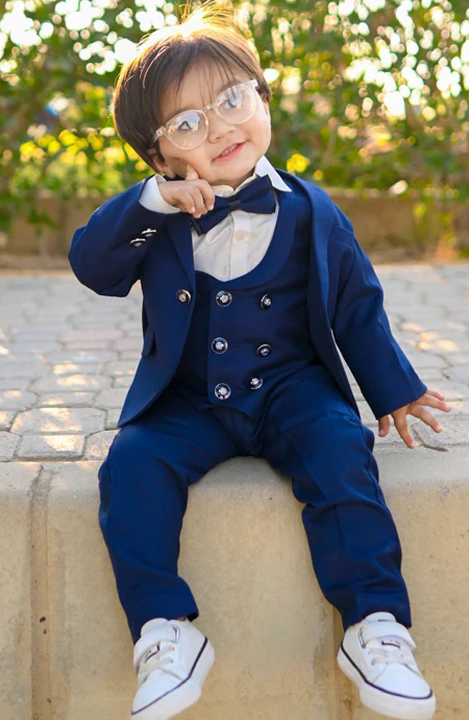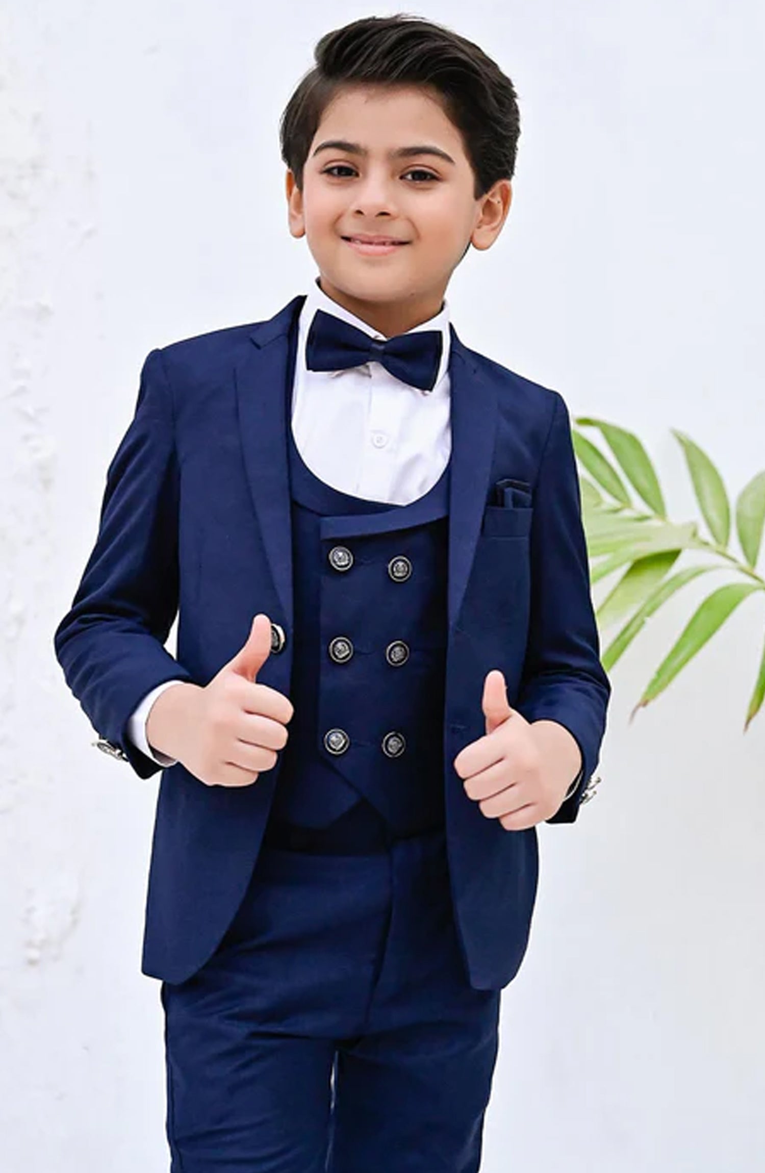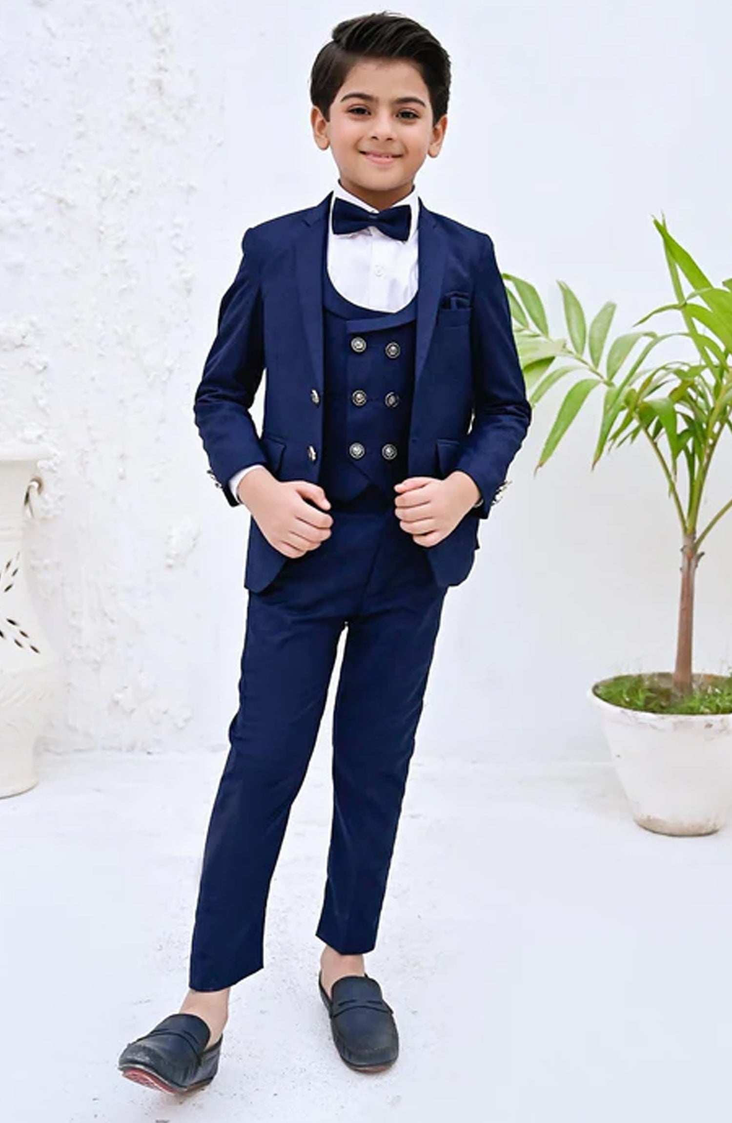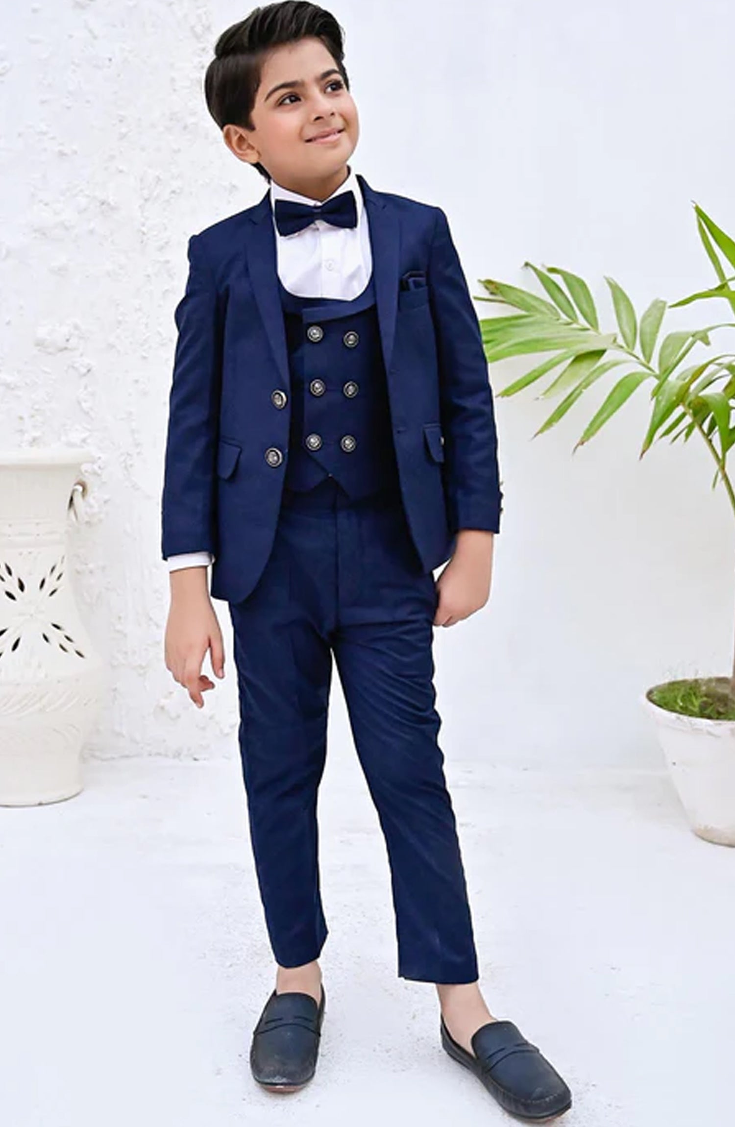 The suit features a sleek black coat with a tailored fit, giving you a polished and sophisticated look. The pants are perfectly matched, providing a clean and streamlined silhouette. The waistcoat adds an extra touch of style, with its matching black fabric and button detailing. The bow completes the ensemble, adding a touch of elegance and charm.Its a classic and timeless outfit that exudes confidence and class.