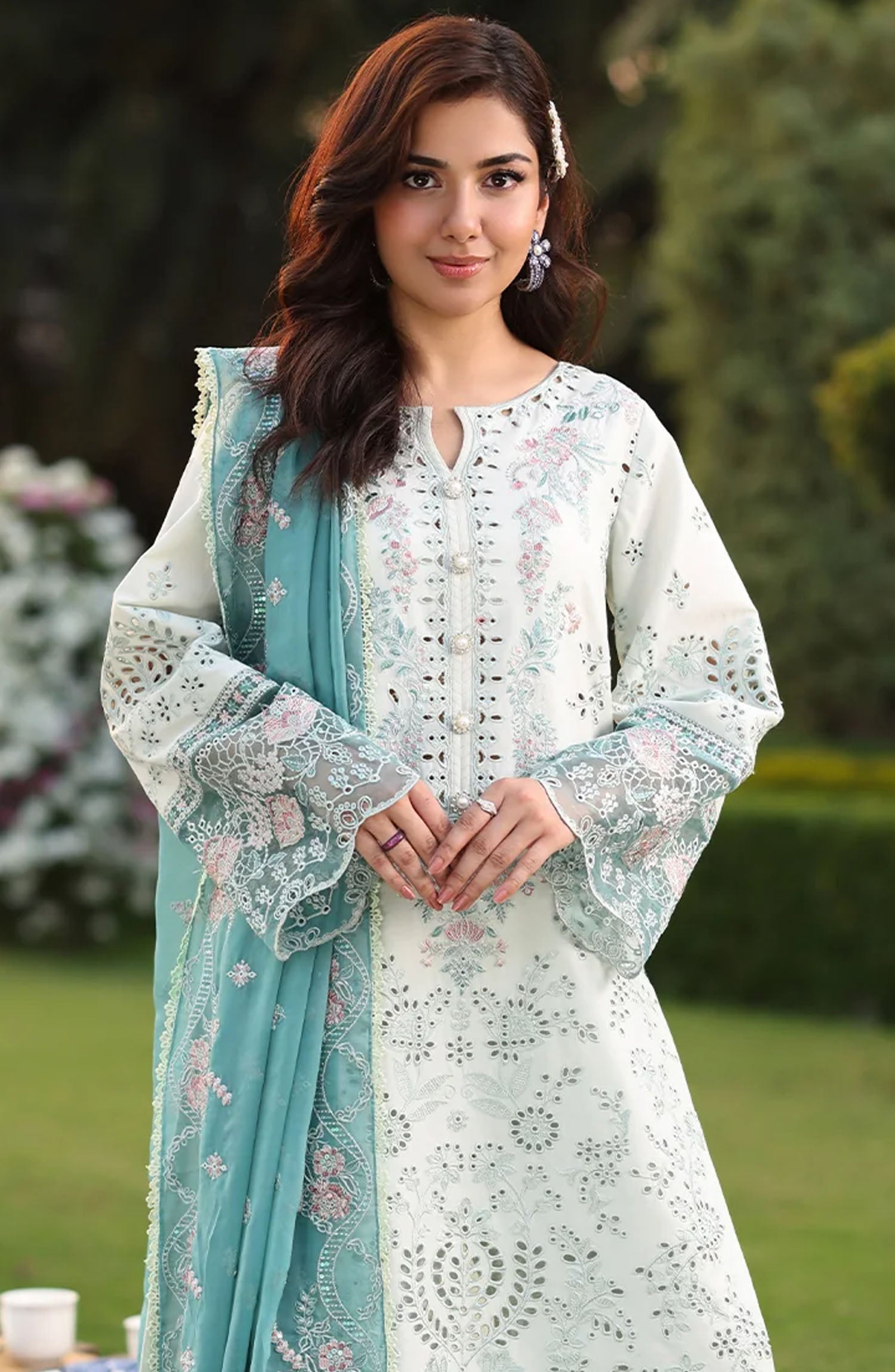 Hayam by Imrozia Embroidered Lawn Unstitched 3 Piece Suit - SL-88 Hiba - IMP25HELL - Blue - Luxury Summer Collection