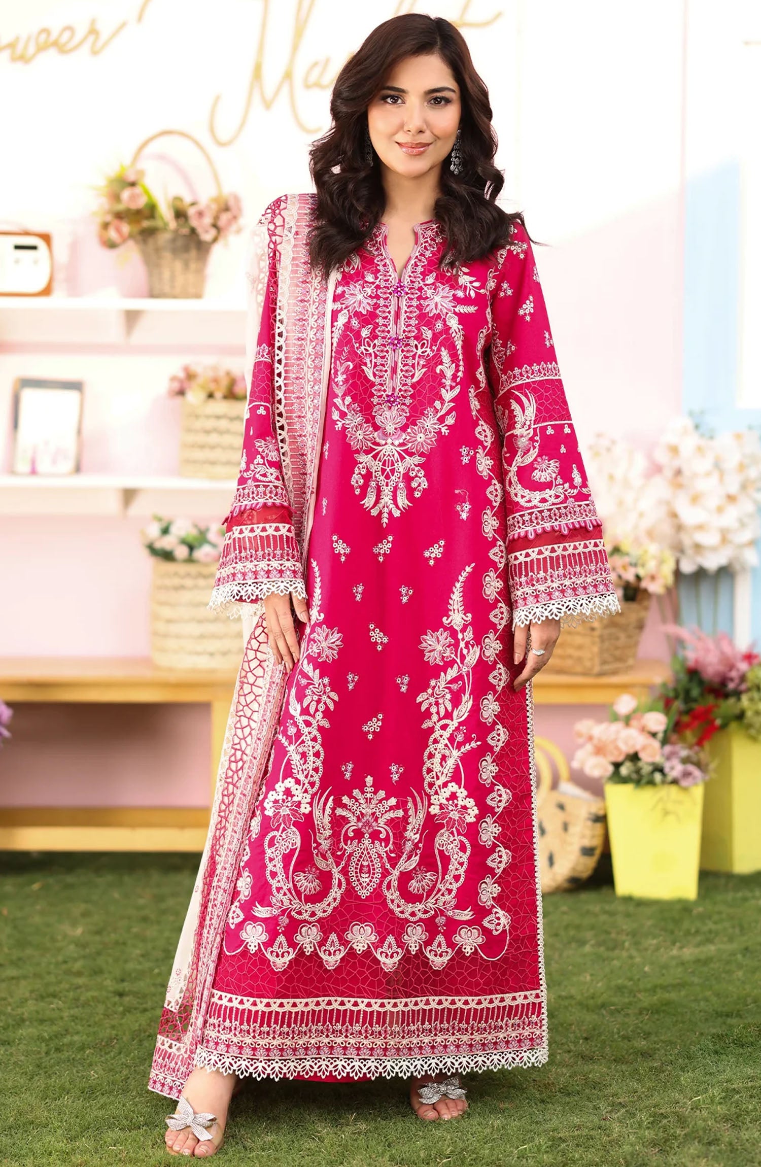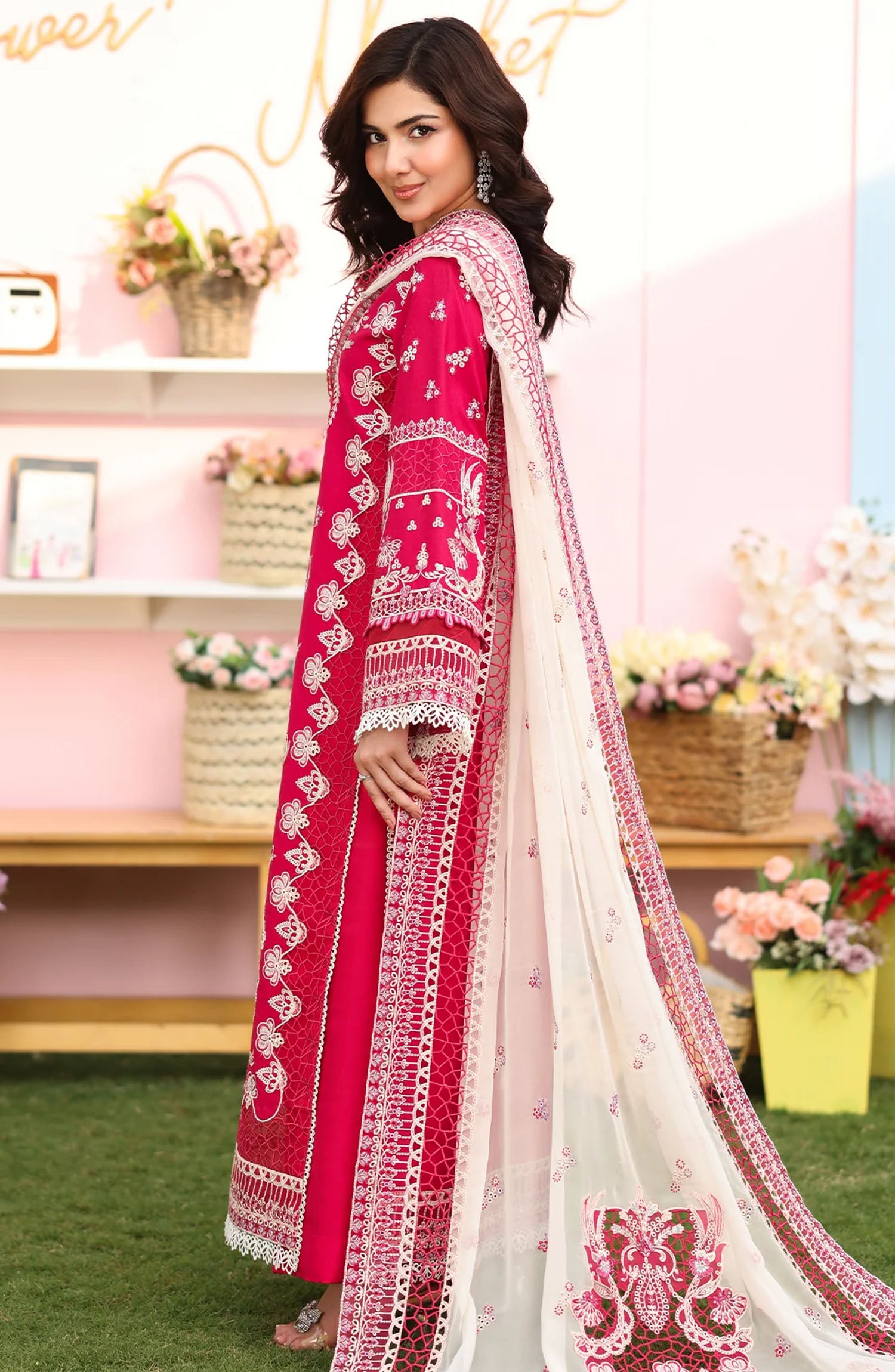 Hayam by Imrozia Embroidered Lawn Unstitched 3 Piece Suit - SL-90 Basma - IMP25HELL - Pink - Luxury Summer Collection