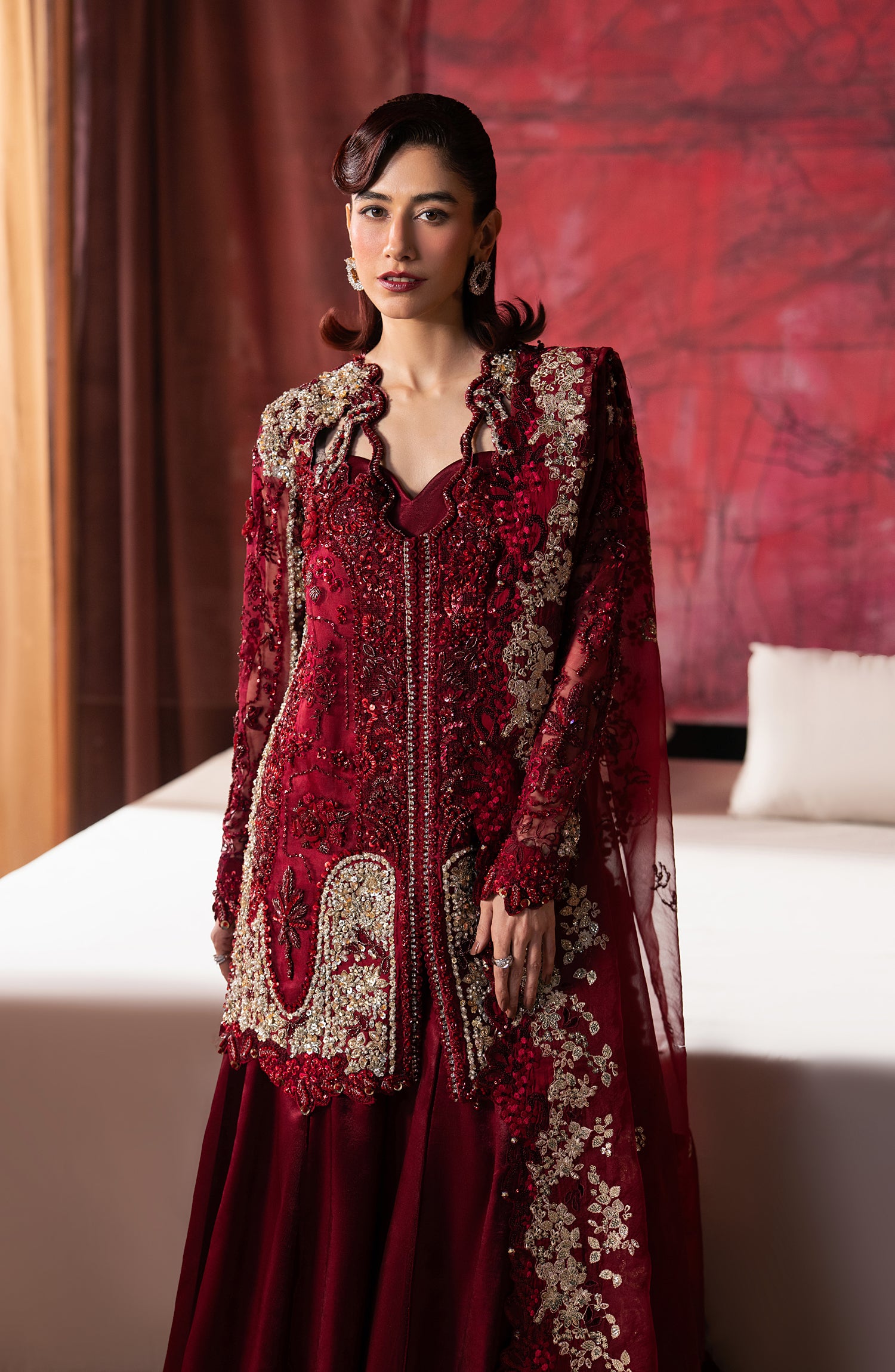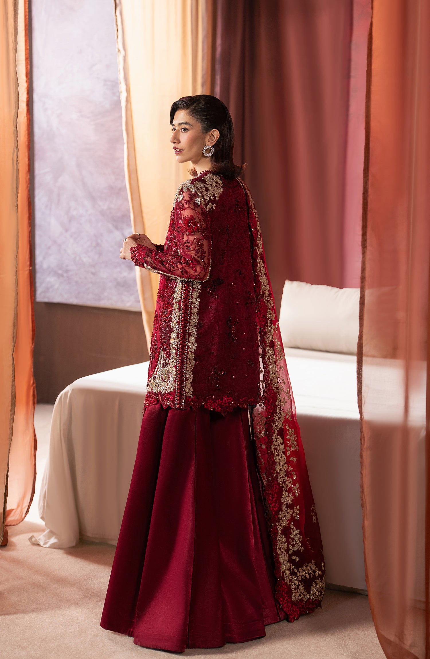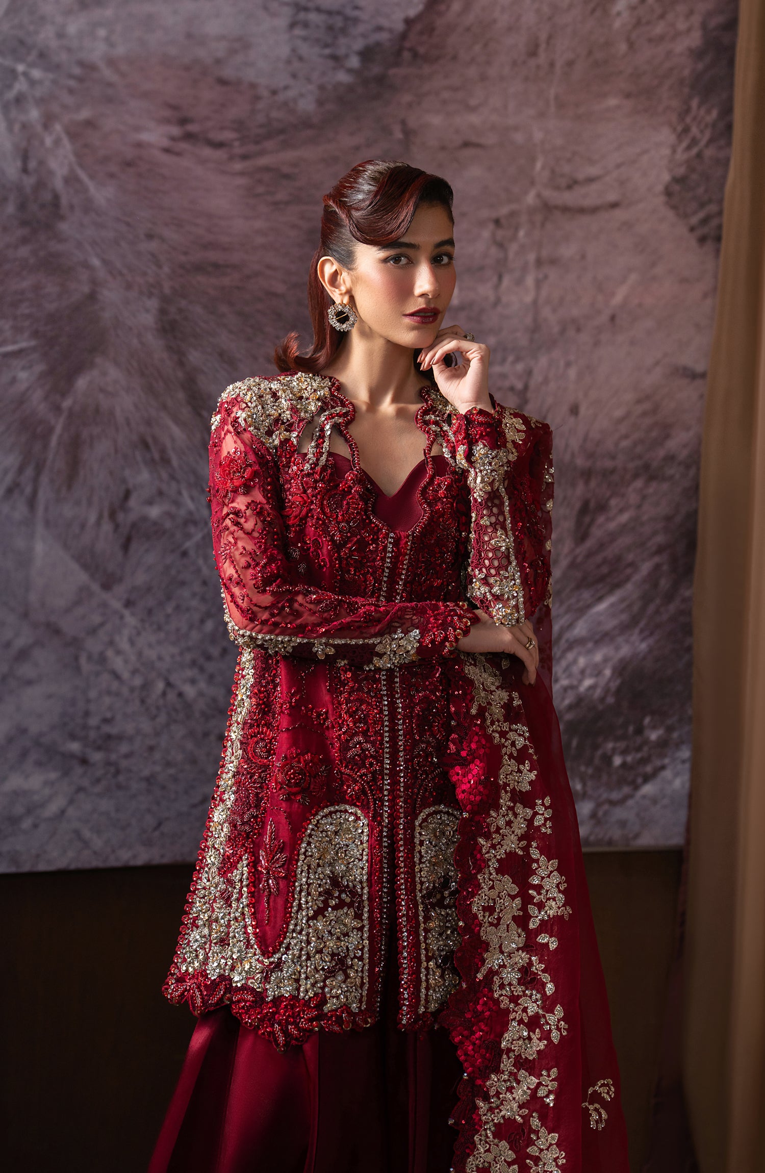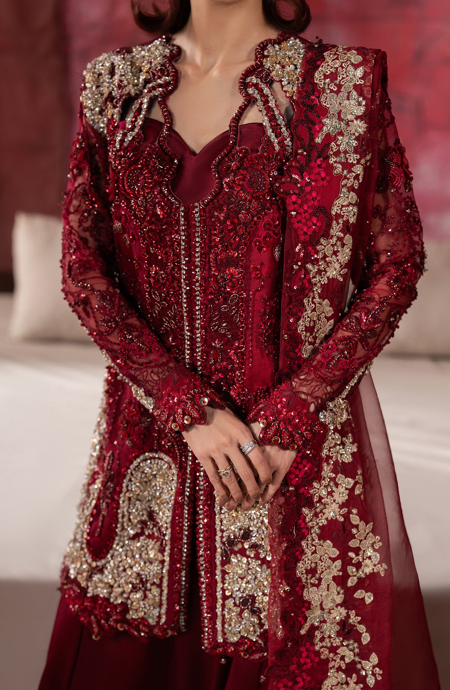 RED ORGANZA 46" HAND EMBELLISHED EMBROIDERED SLEEVE LEFT 2 PCS