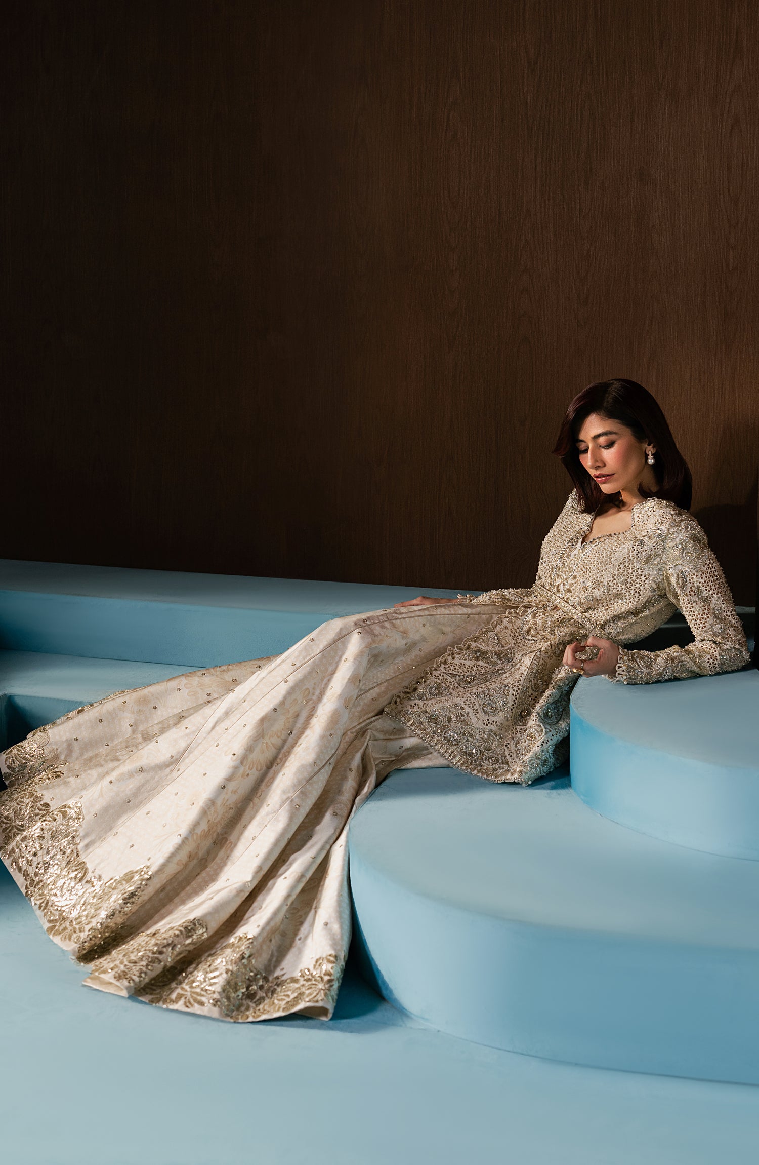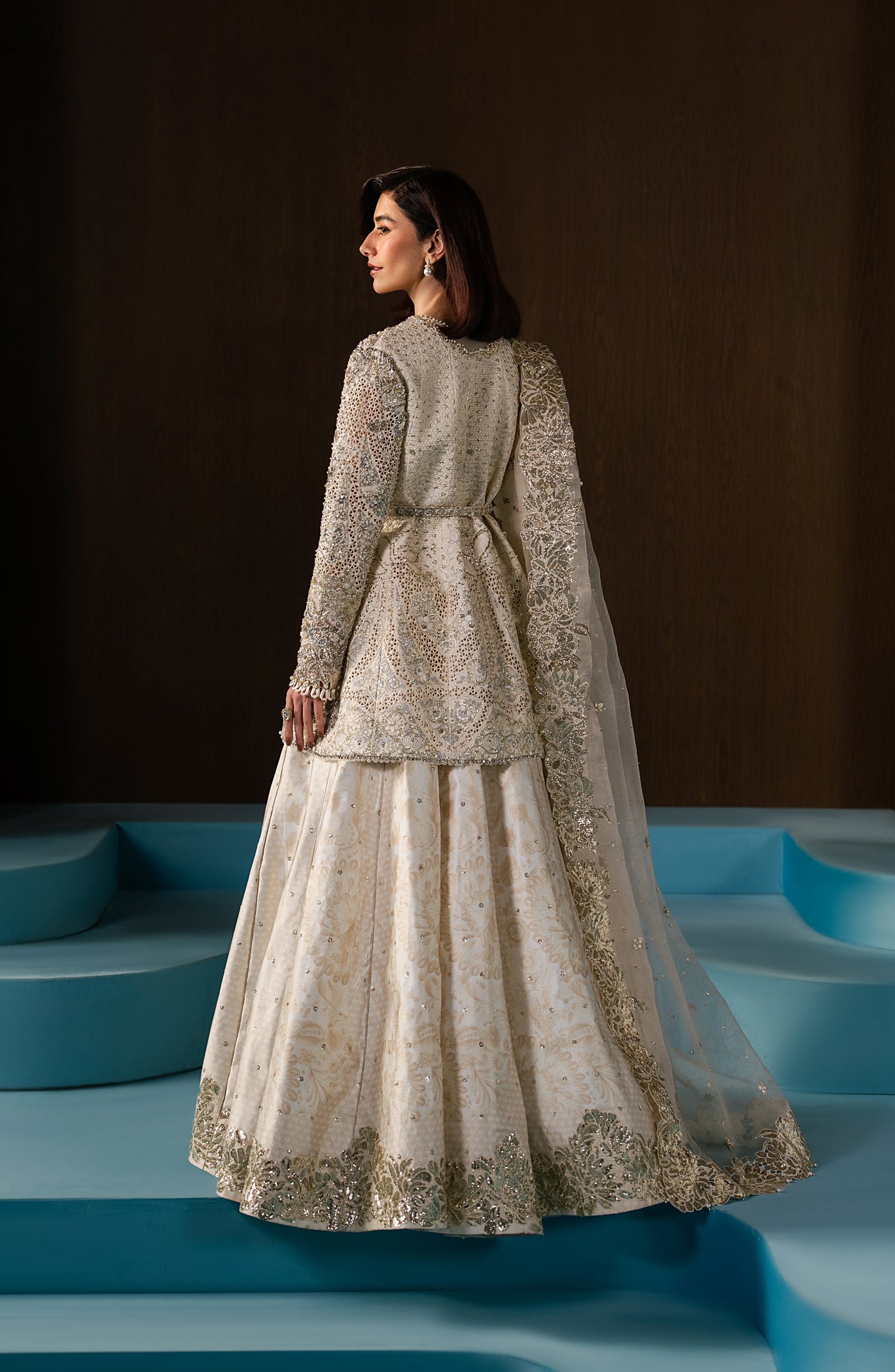 OFF WHITE RAW SILK 39" HAND EMBELLISHED EMBRIODERES FRONT RIGHT PANEL A 1 PC