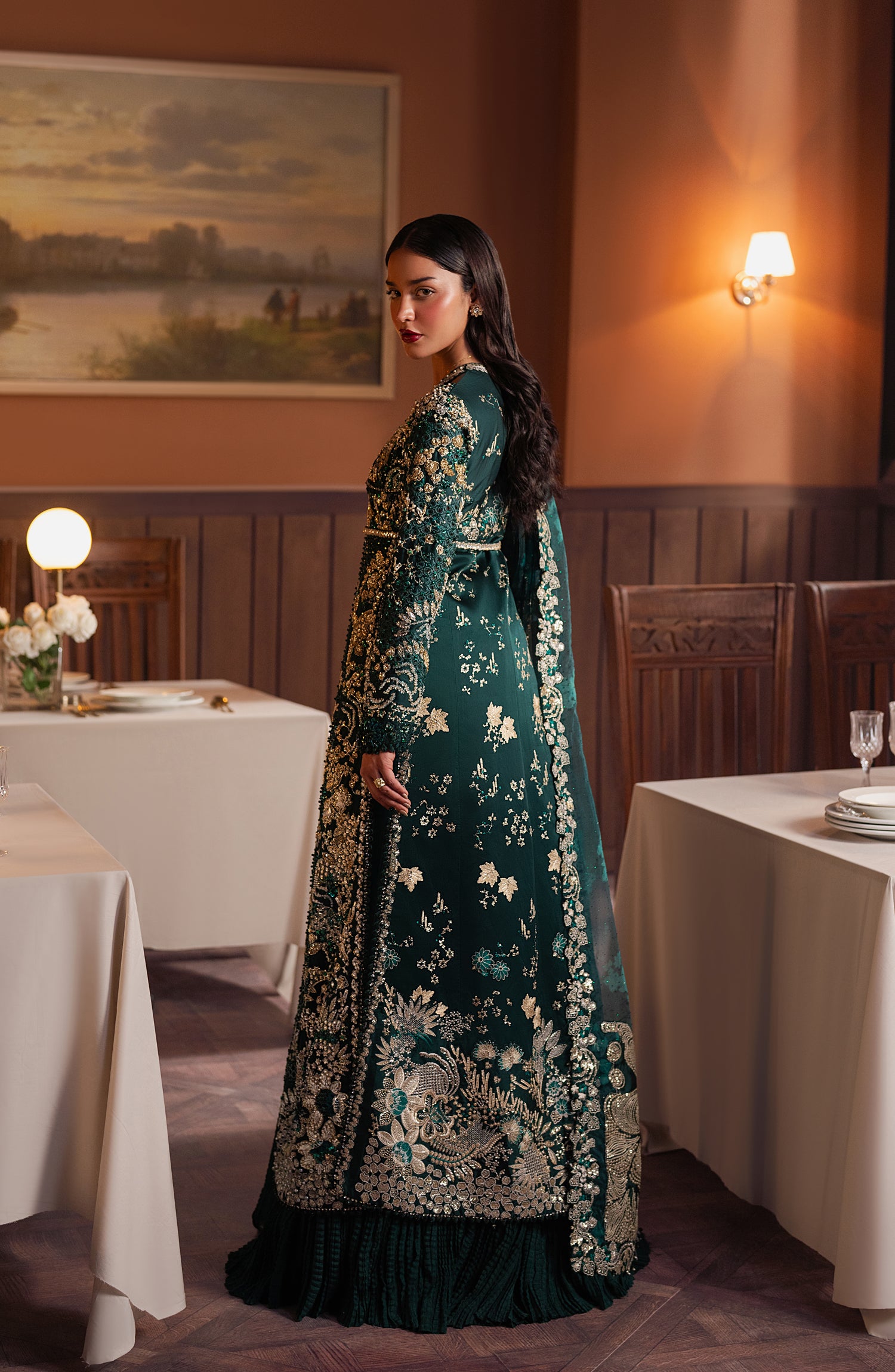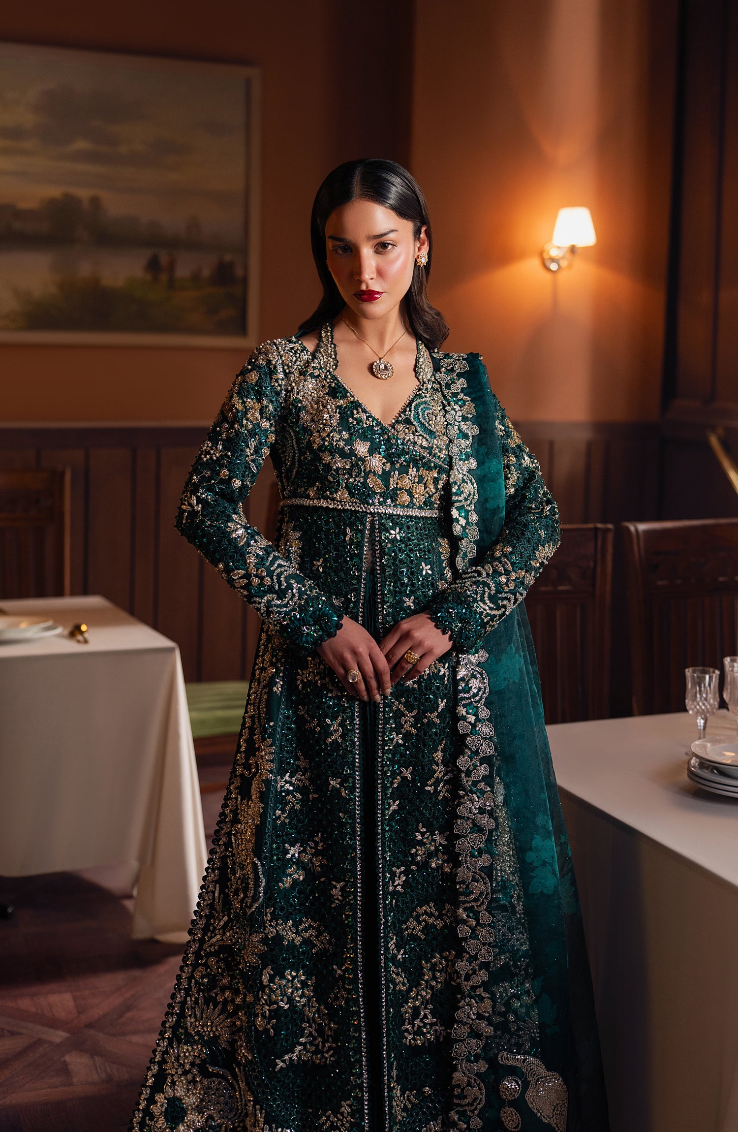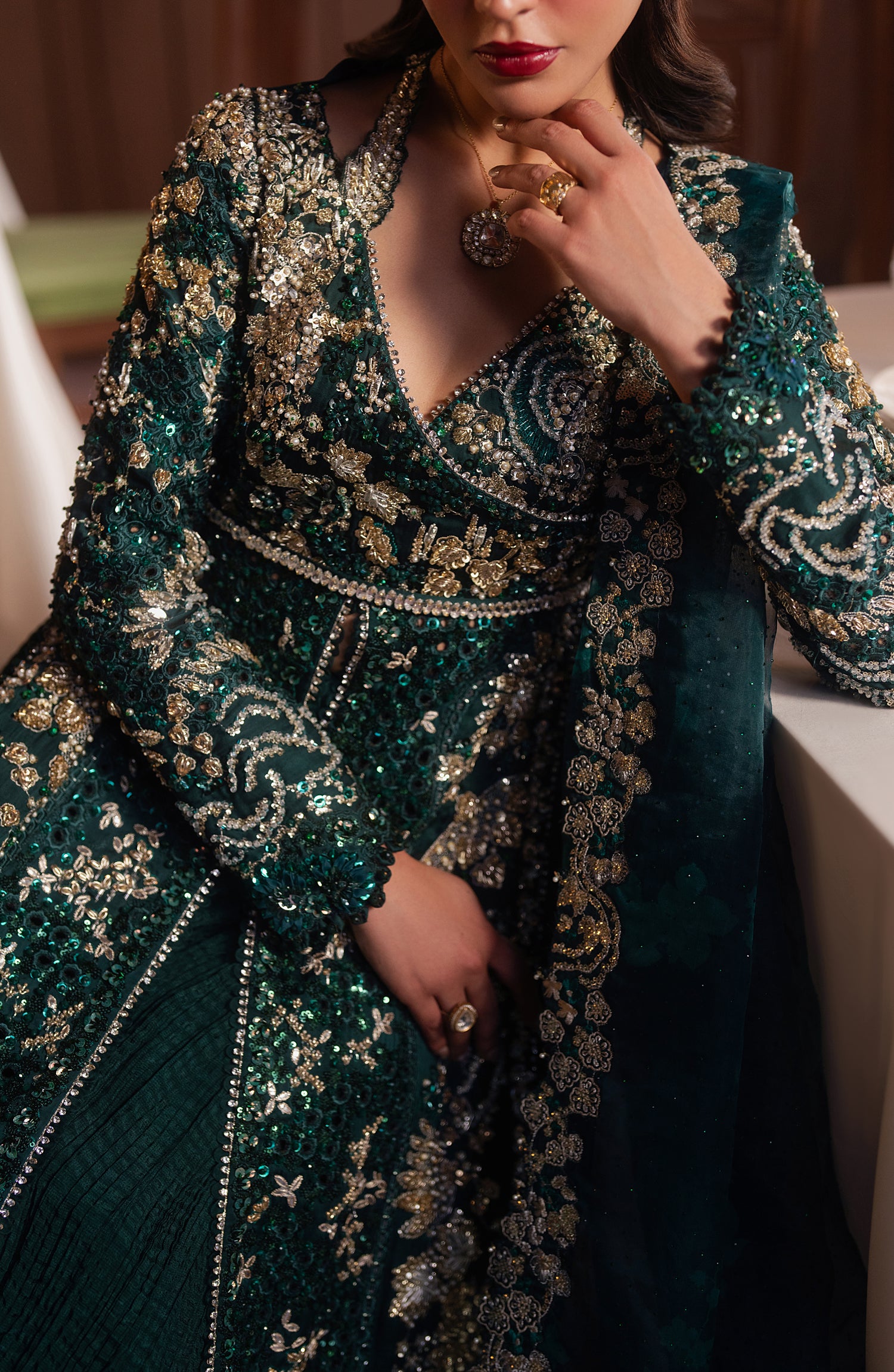 TEAL GREEN RAW SILK 39" HAND EMBELLISHED EMBROIDERED FRONT LEFT PANEL B 1 PC