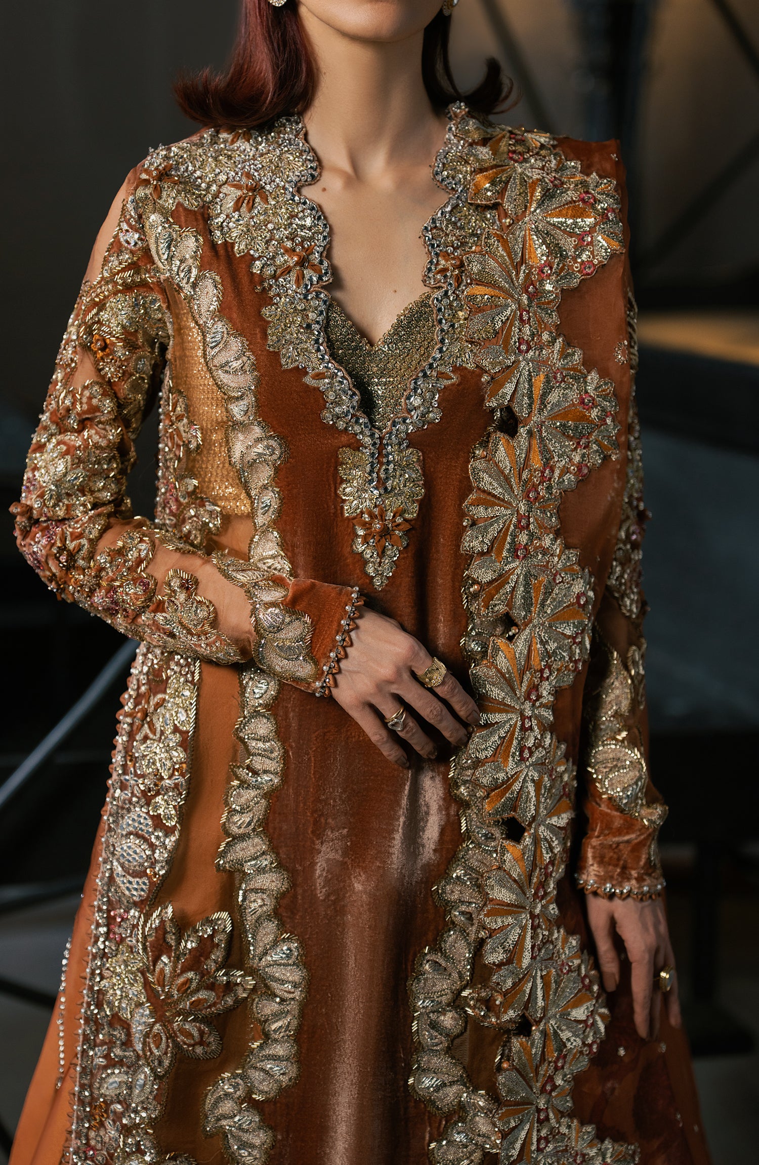 RUST VELVET 42" HAND EMBELLISHED EMBROIDERED FRONT HEM B 1 PC