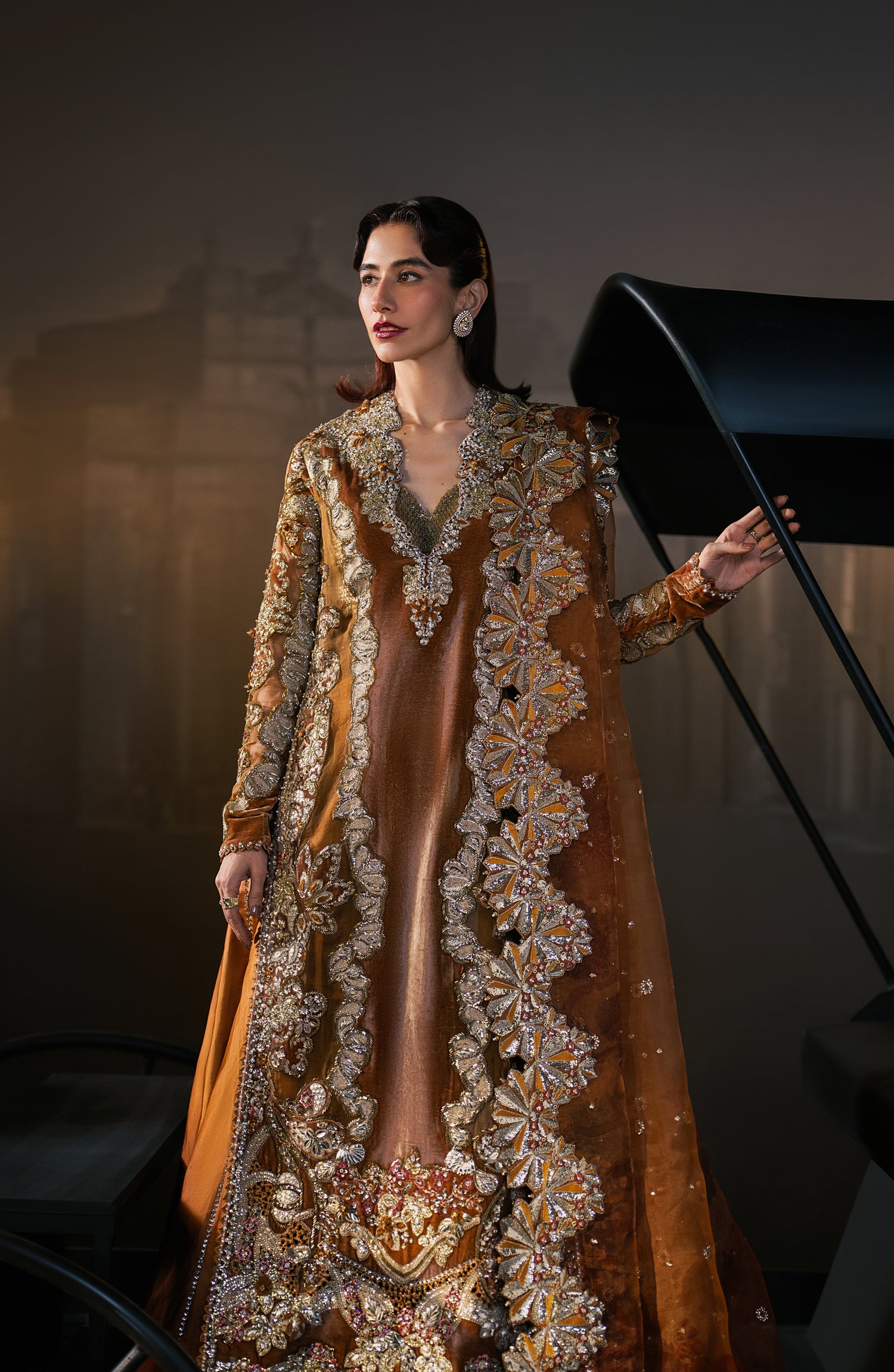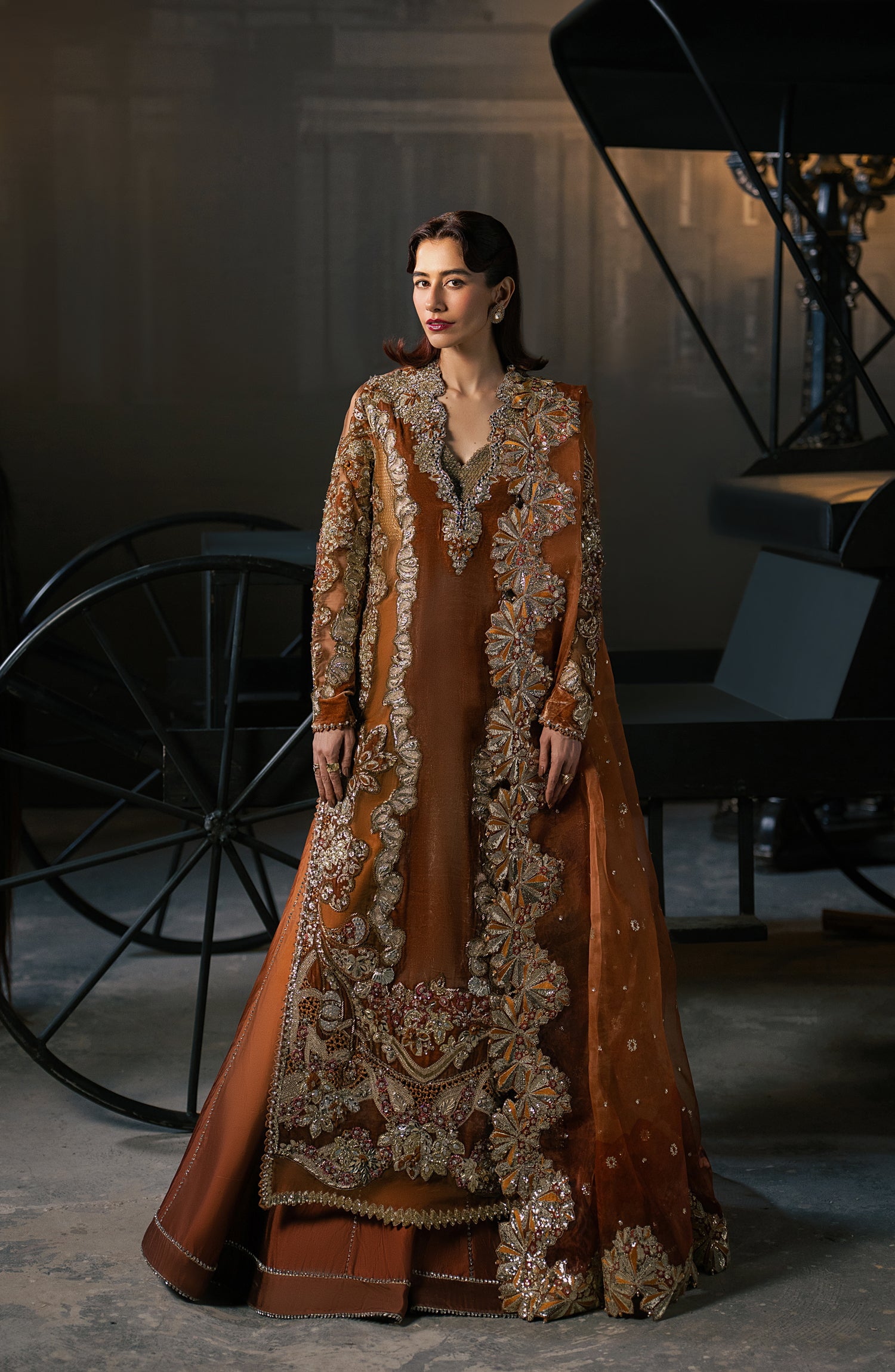 RUST ORGANZA 55" HAND EMBELLISHED EMBROIDERED FRONT RIGHT PANEL 1 PC