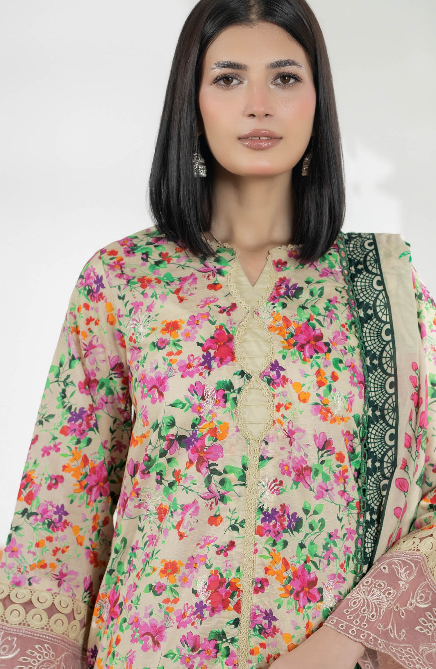 Printed & Embroidered Lawn Unstitched 3 Piece Suit with Printed Chiffon Dupatta