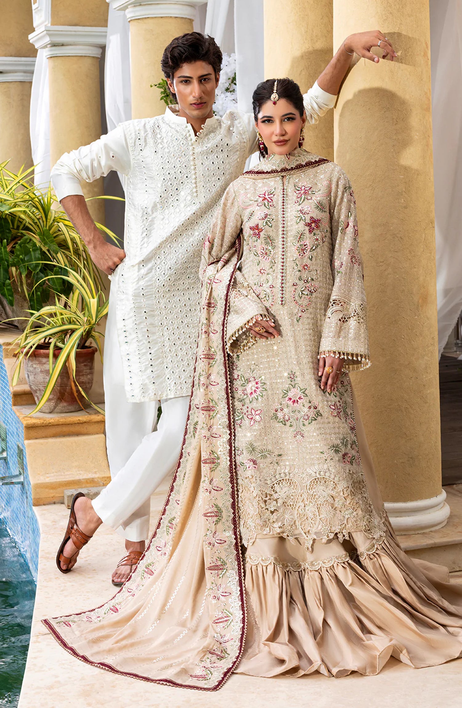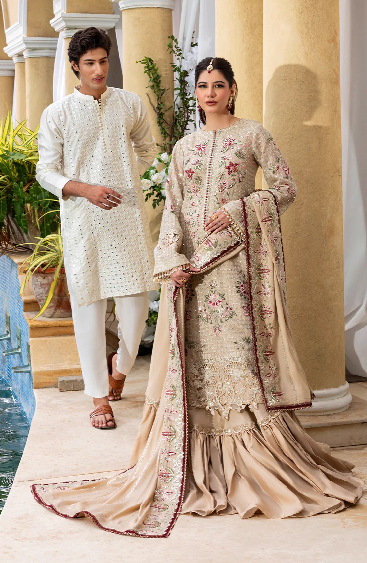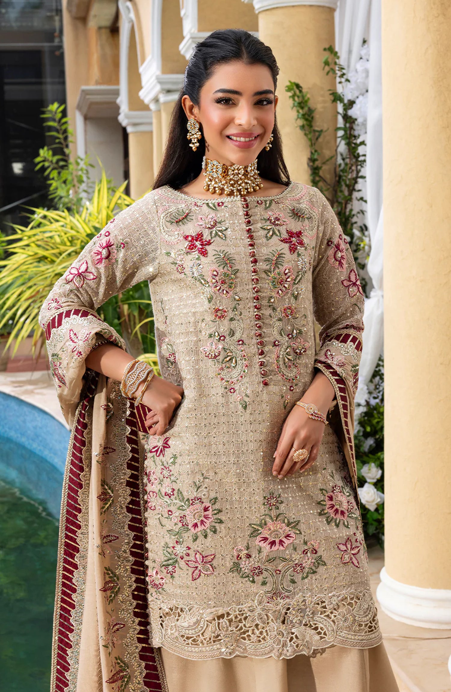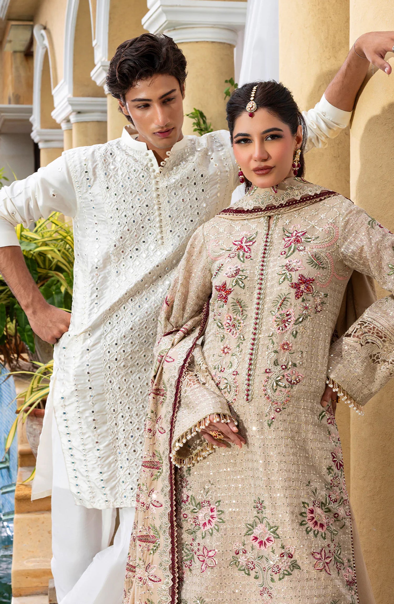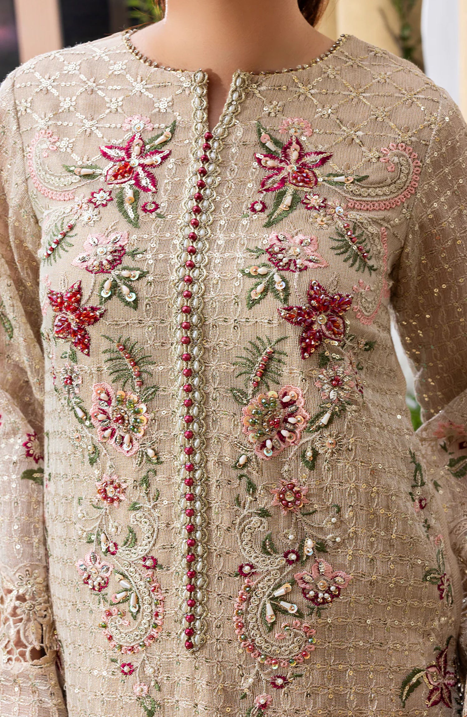 Sequins Embroidered Hand Embellished Front on Khaddi Net