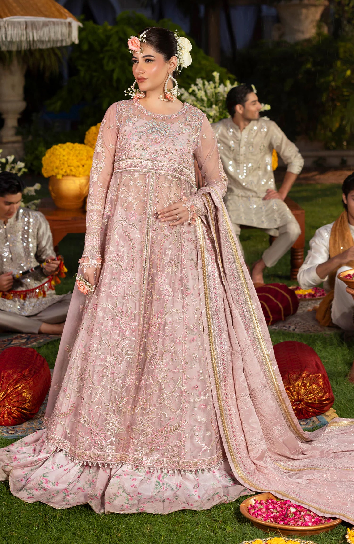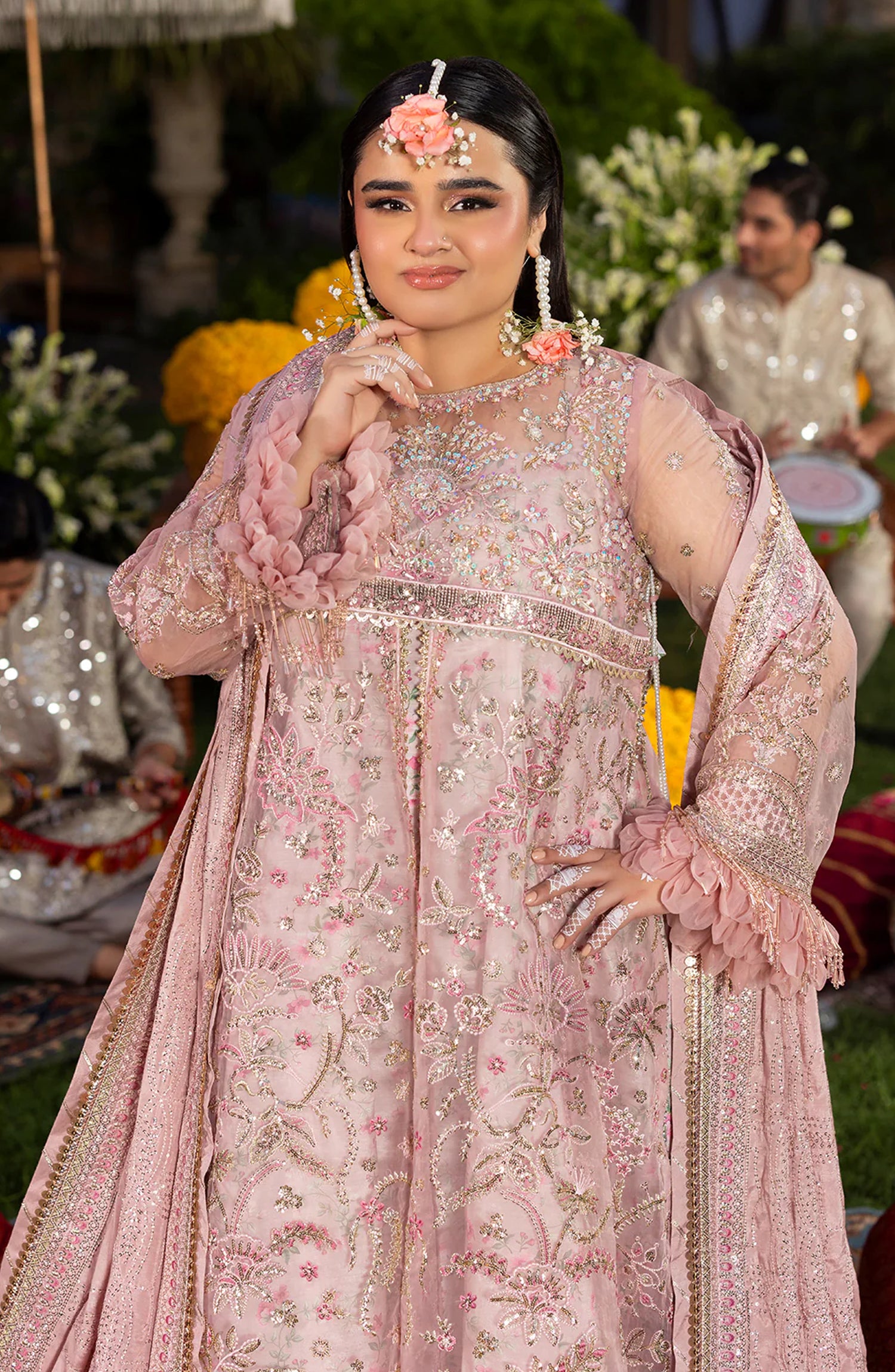 Sequins Embroidered Hand Embellished Front Body on Organza