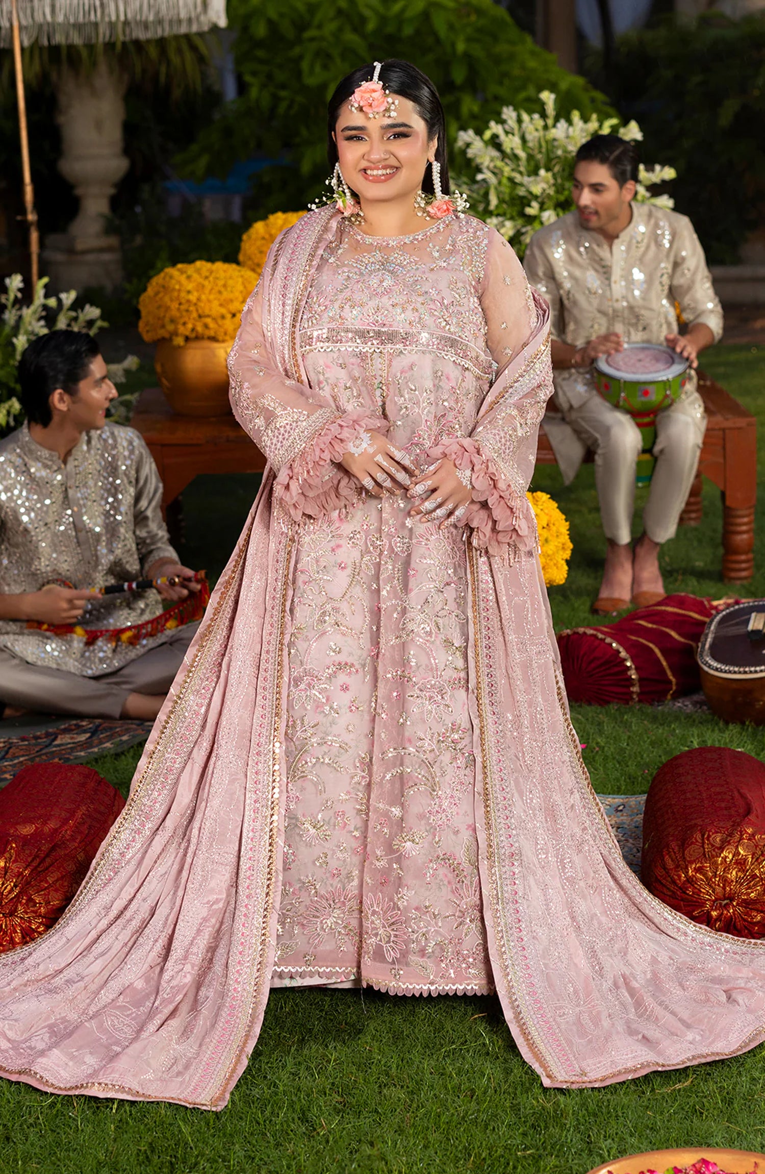 Sequins Embroidered Sleeves on Organza