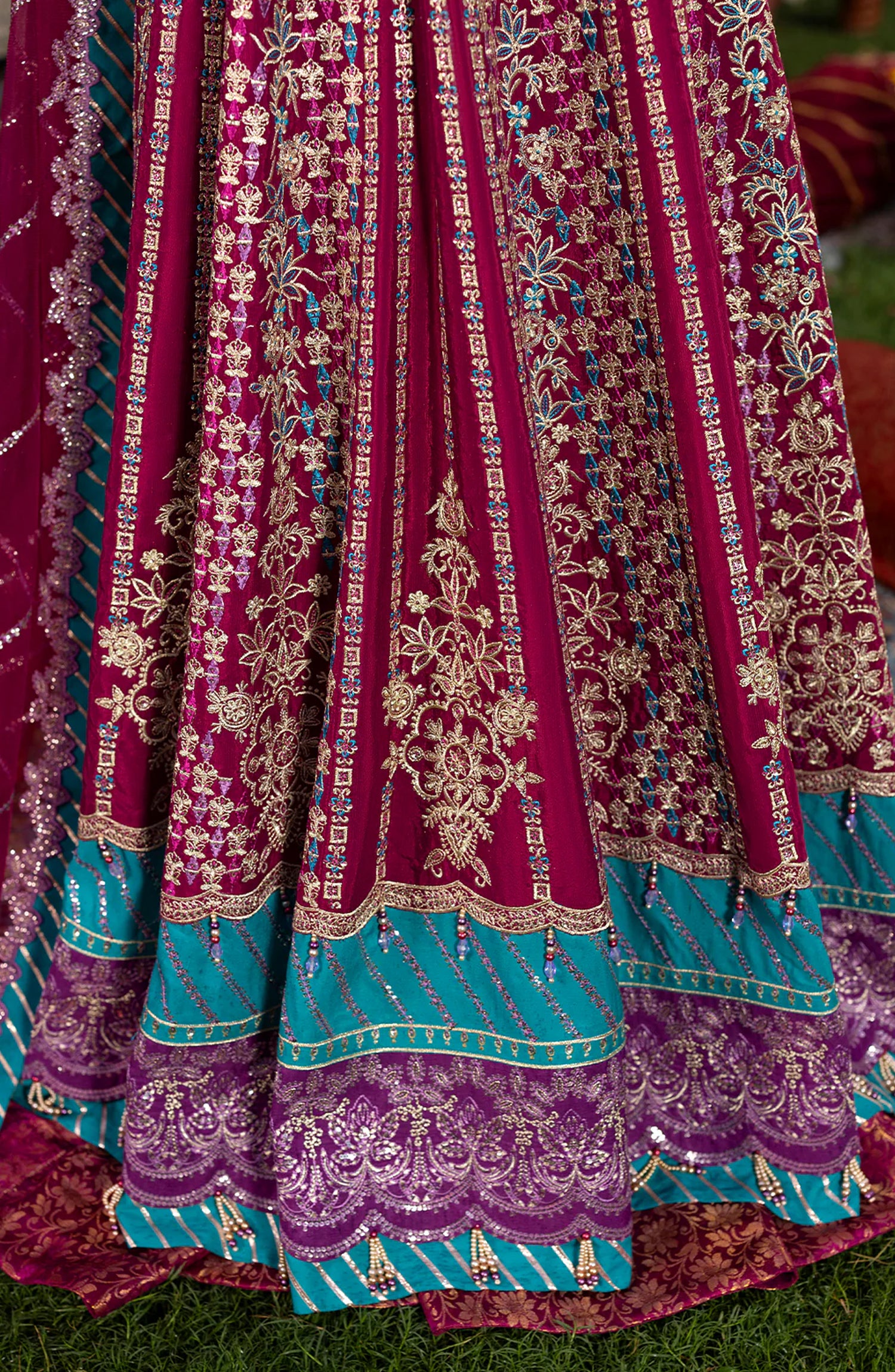 Sequins Embroidered Front & Back Daman Border on Raw Silk (Border 2 Purple)
