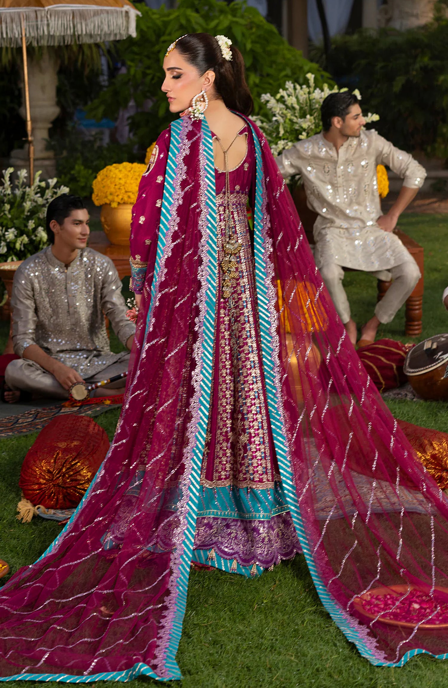 Sequins Embroidered Front & Back Body Border on Raw Silk