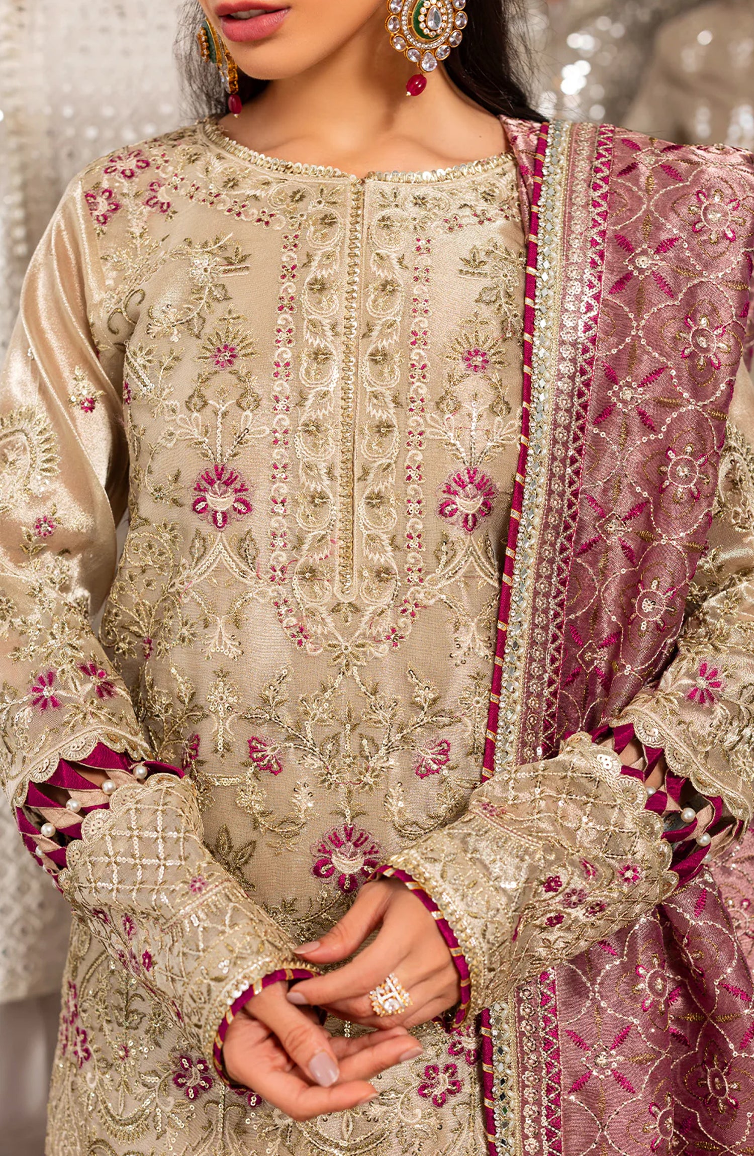 Sequins Embroidered Front Daman Border on Lama Tissue