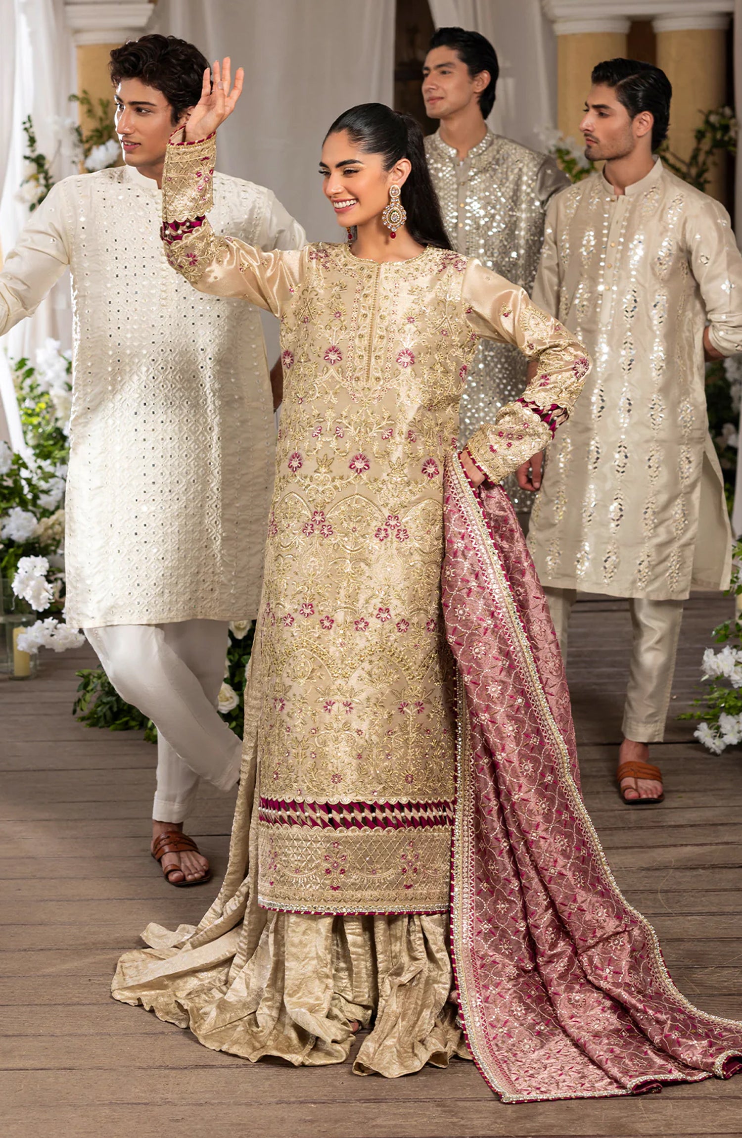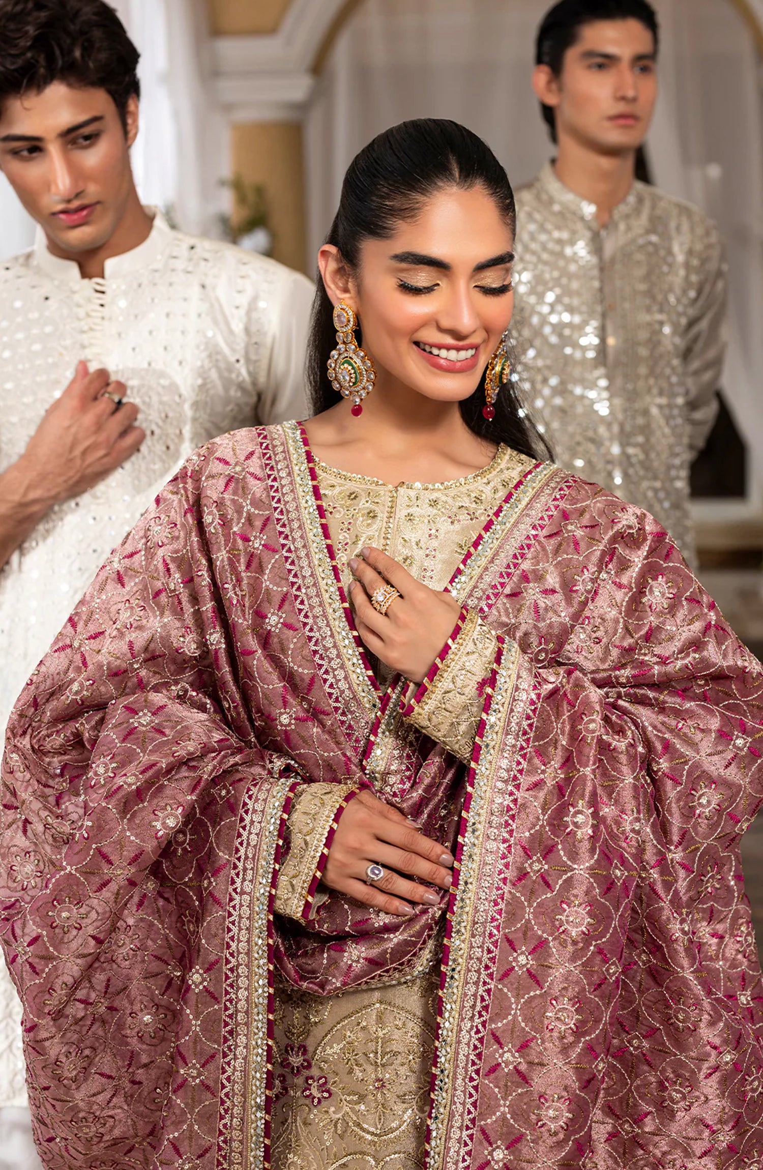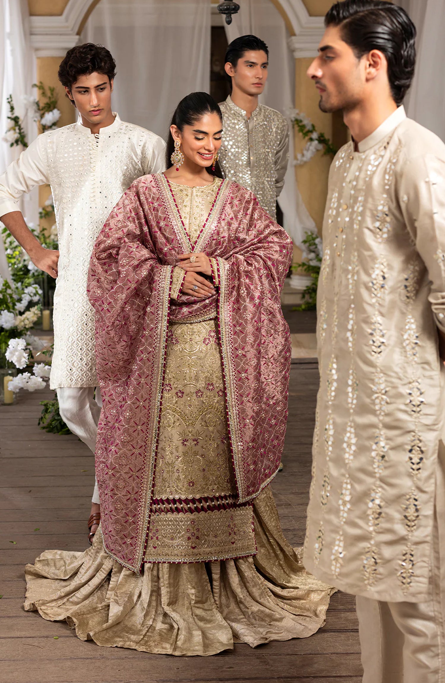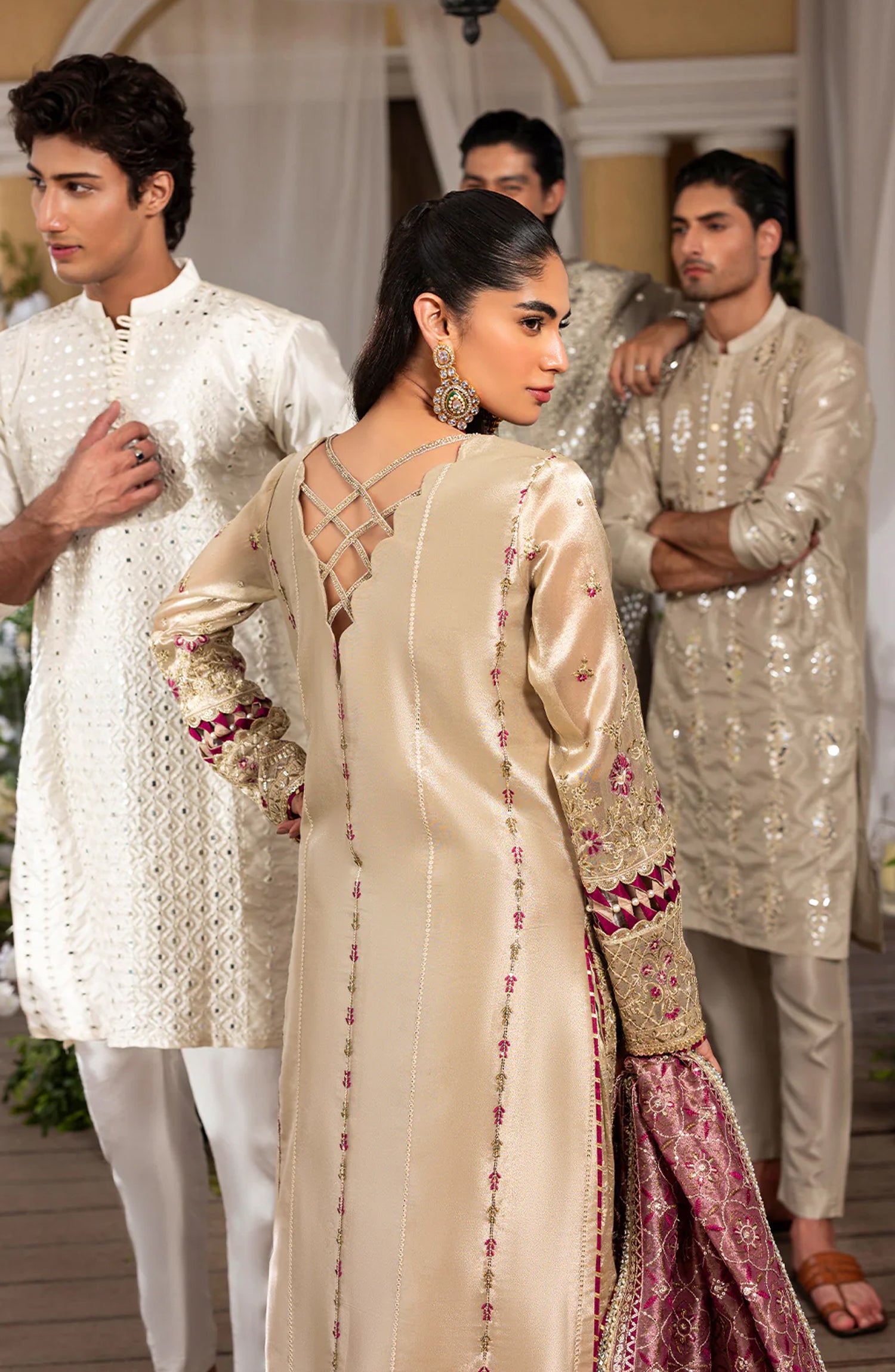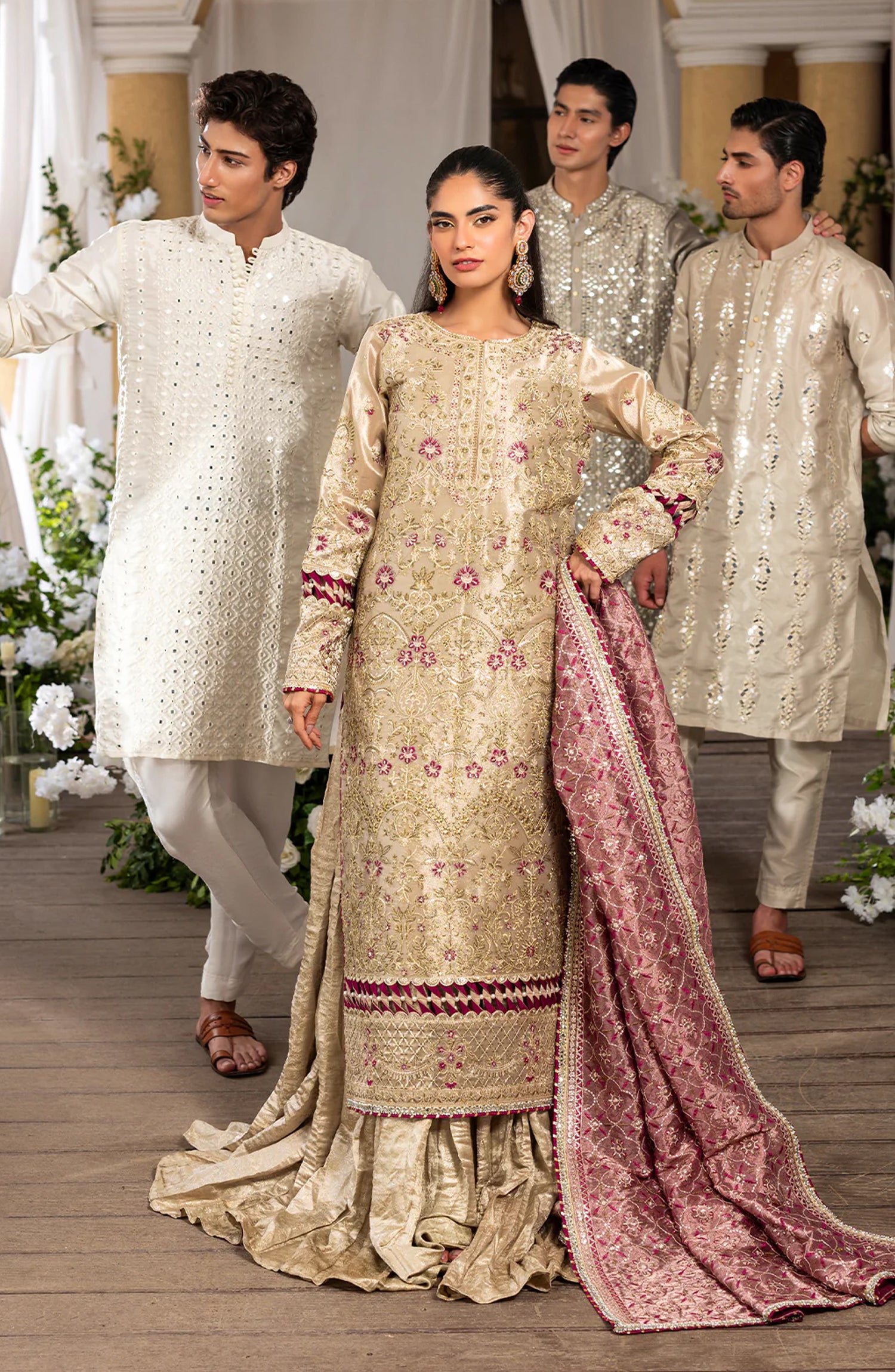Sequins Embroidered Sleeves Border on Lama Tissue
