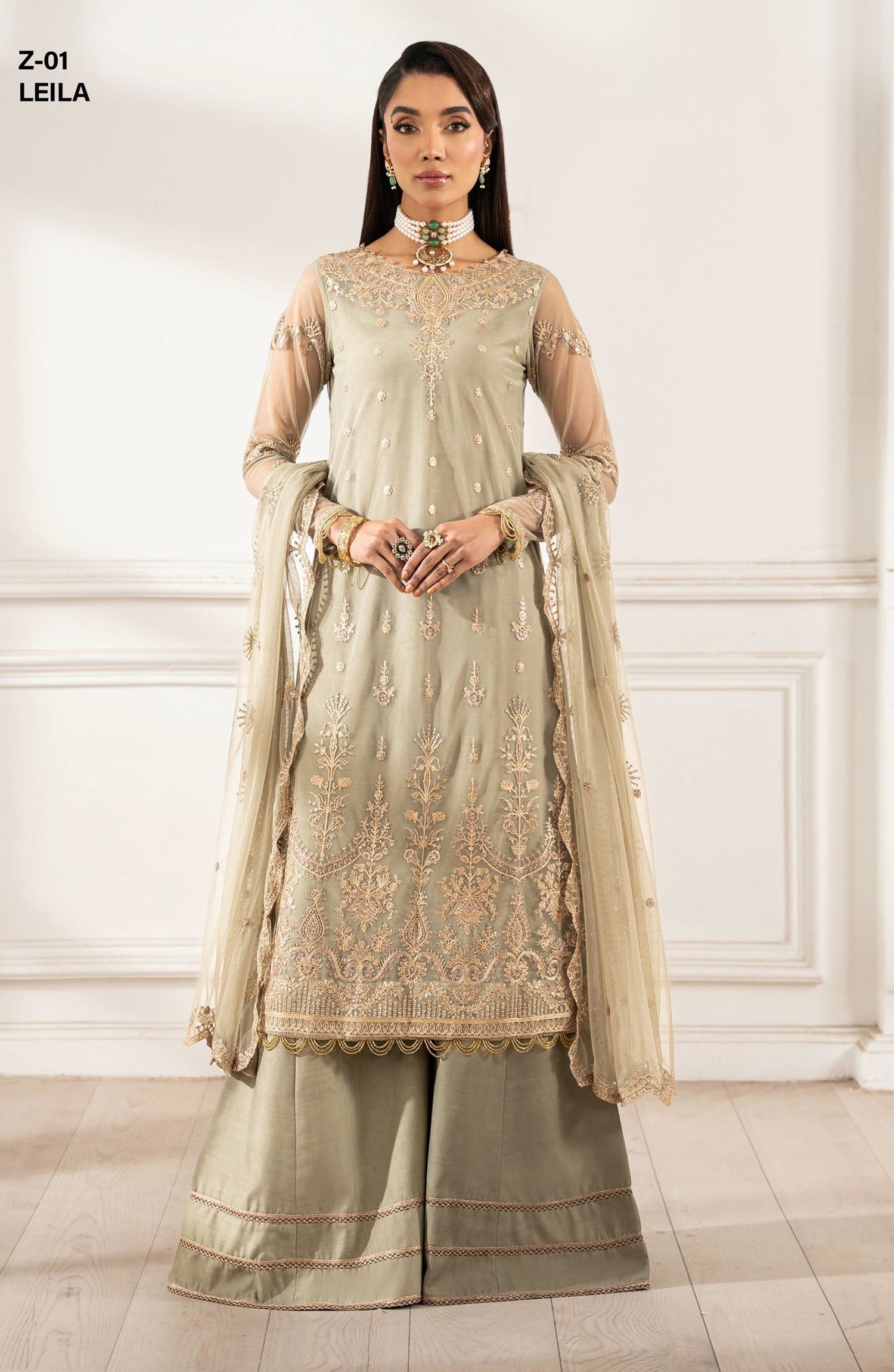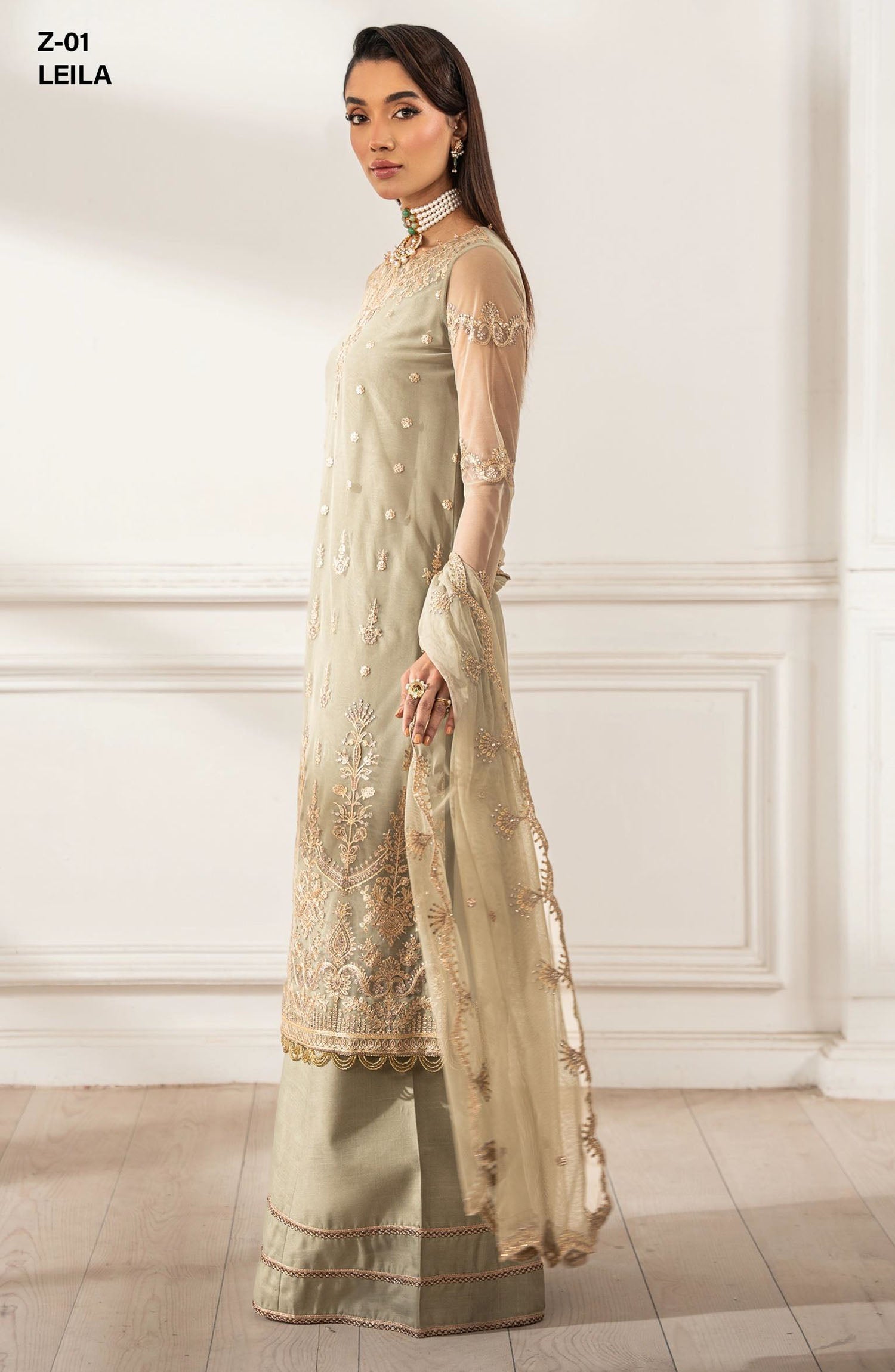 The standard style comes as a long-sleeved kameez with dupatta and trouser/shawlar.