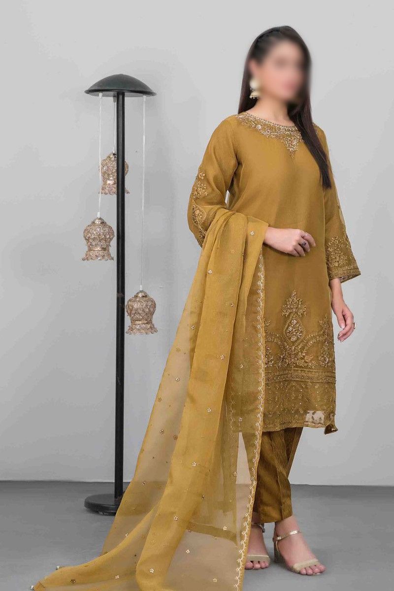 Stitched Fancy Heavy Embroidered Organza Shirt with Embellishments