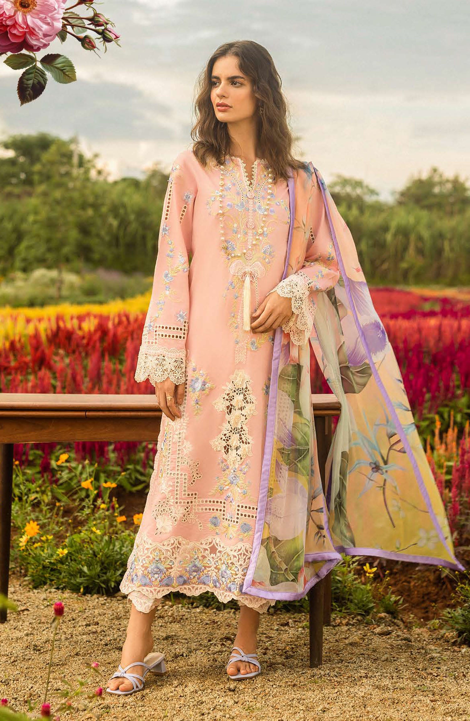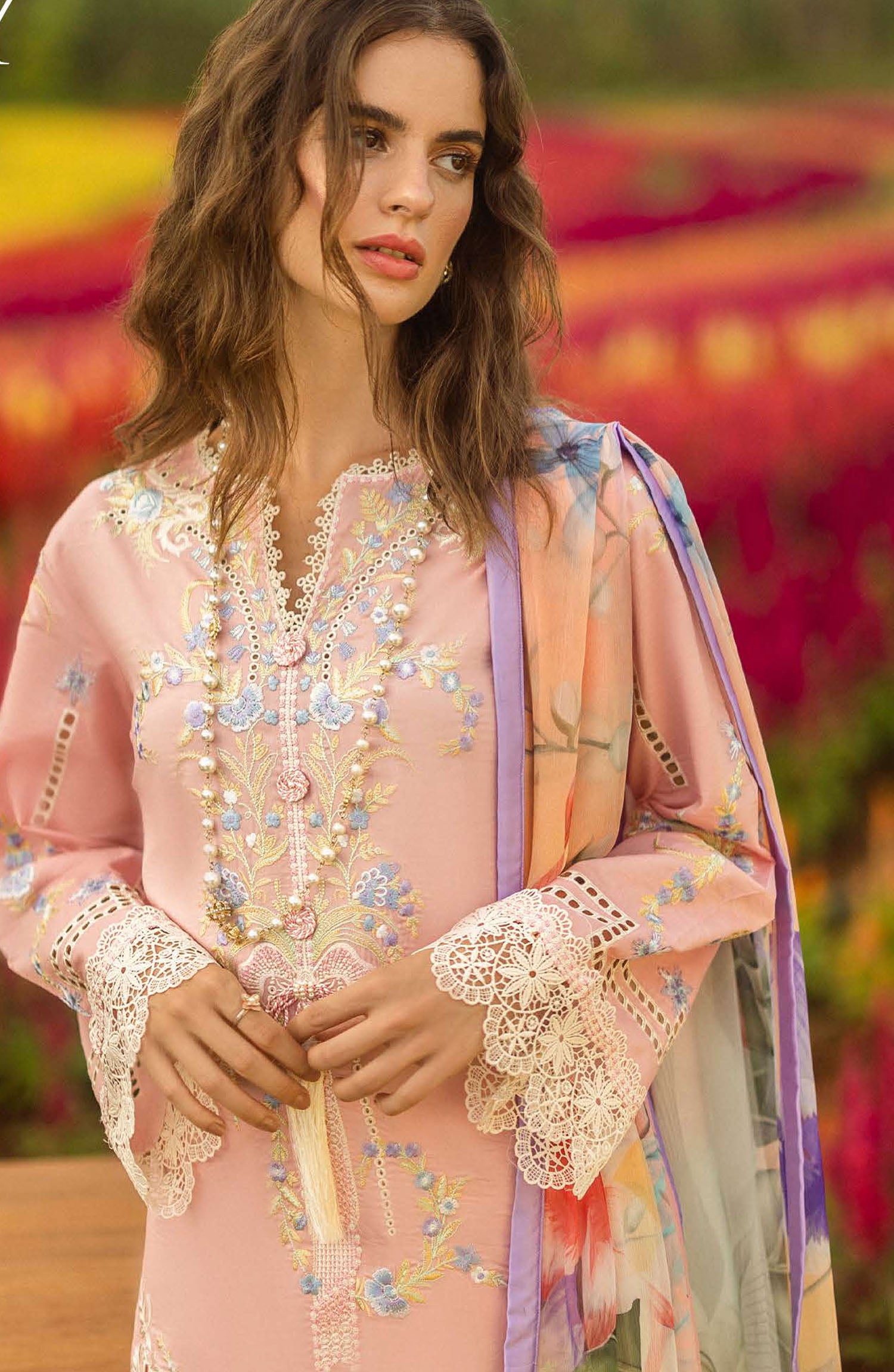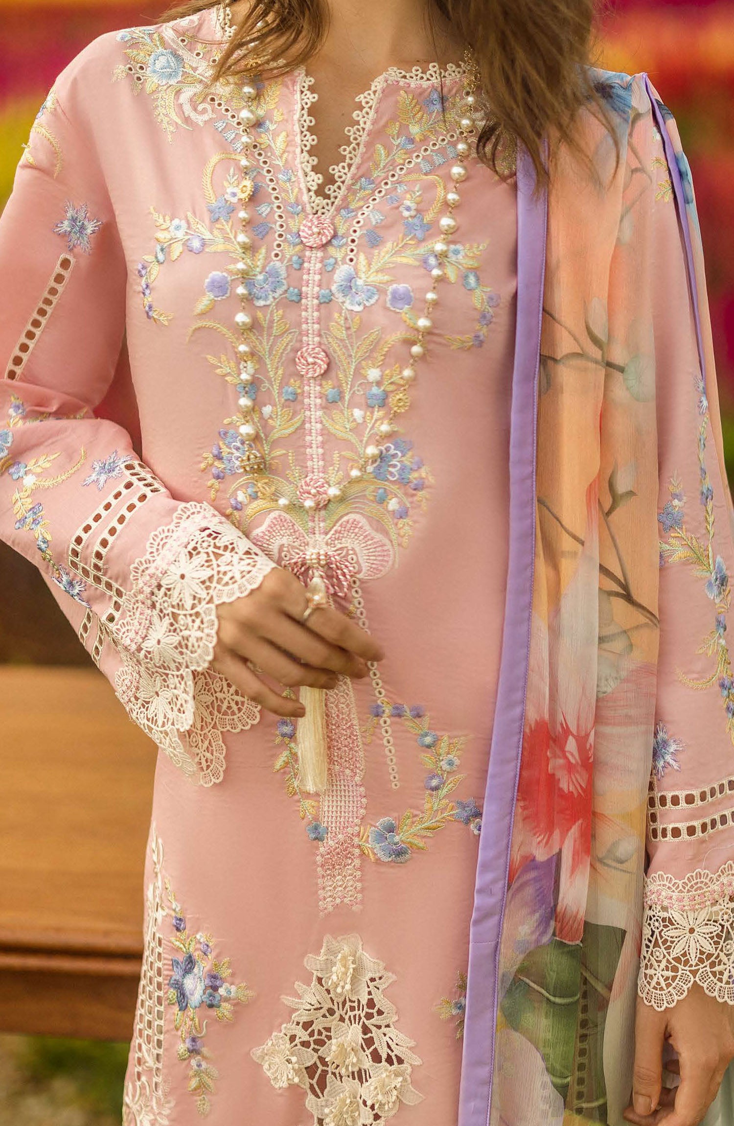 Embroidered front daman border (organza)