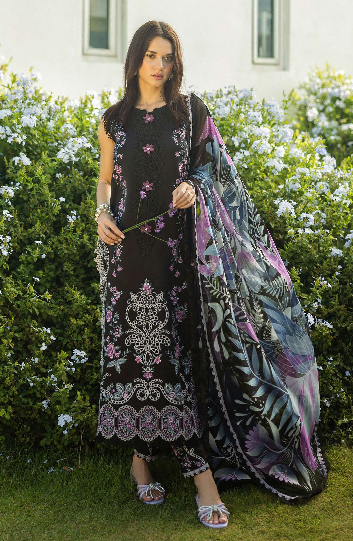 Chikan embroidered lawn back