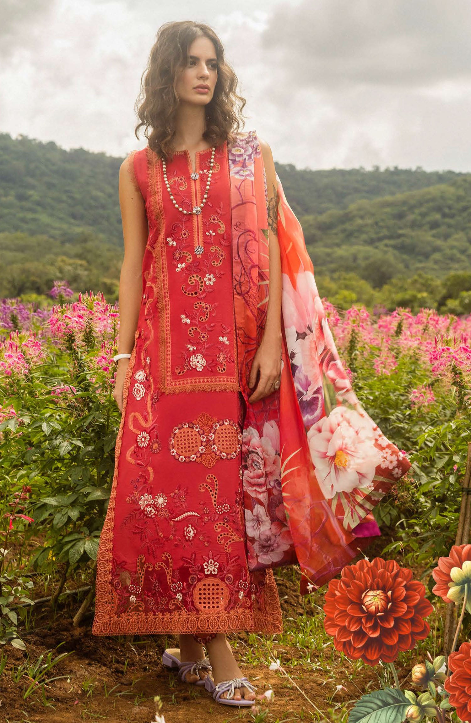 The standard style comes as a long-sleeved kameez with dupatta and trouser/shawlar.