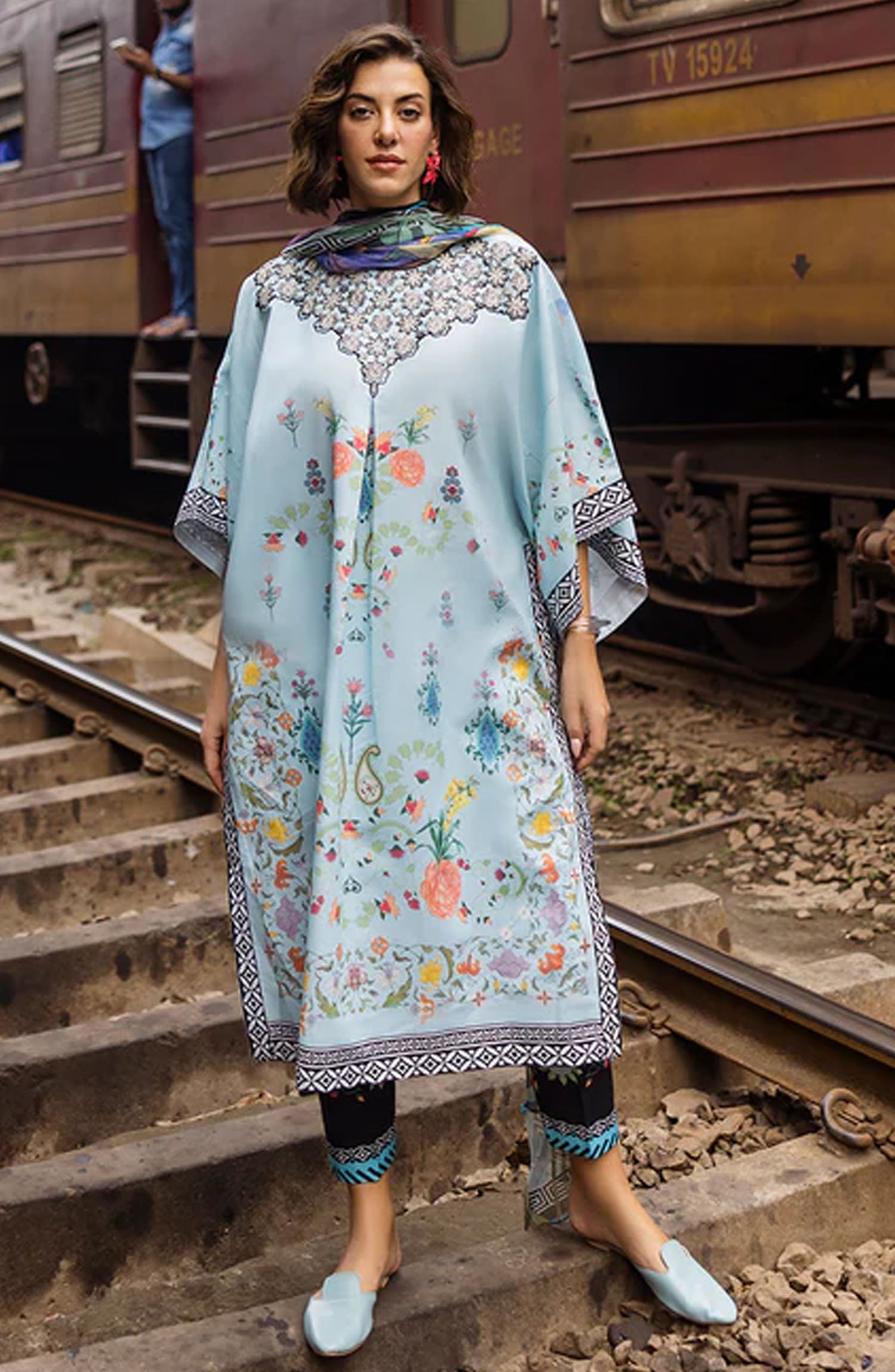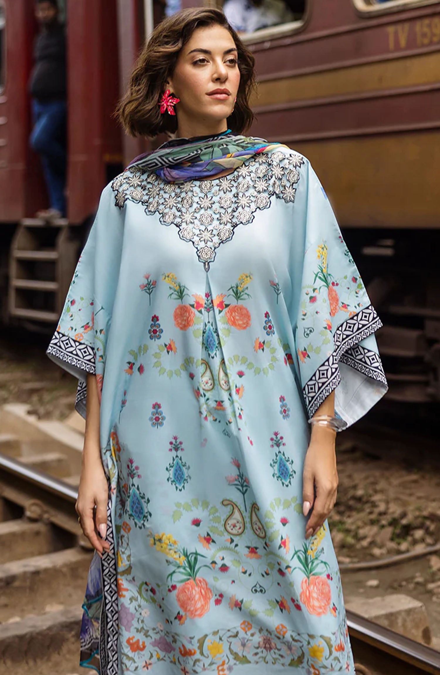 "Hemline by Mushq Embroidered Lawn Collection has been styled in the image for photography and illustrative purposes.
