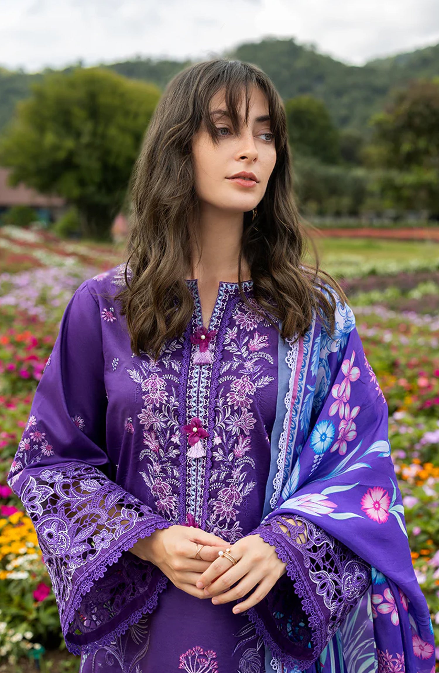 • Embroidered lawn sleeves
