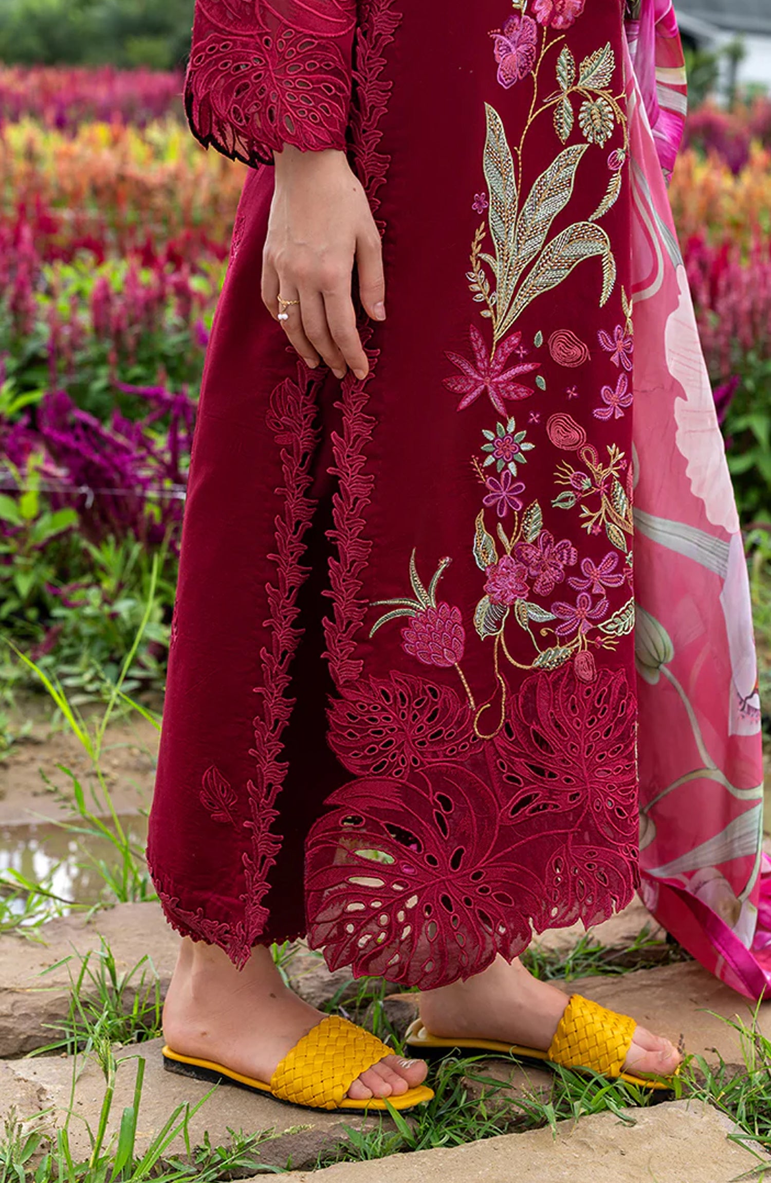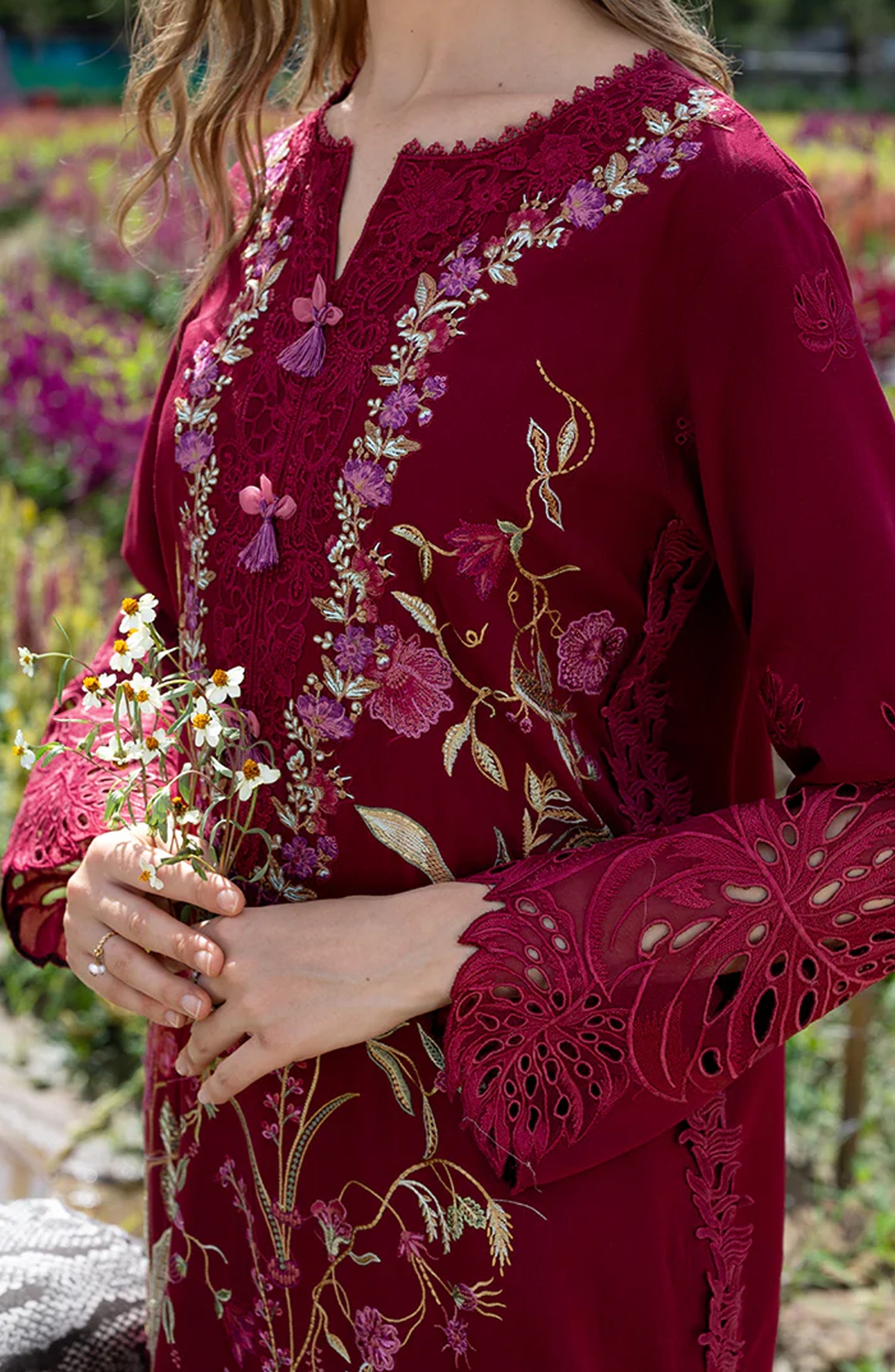 • Embroidered lawn front