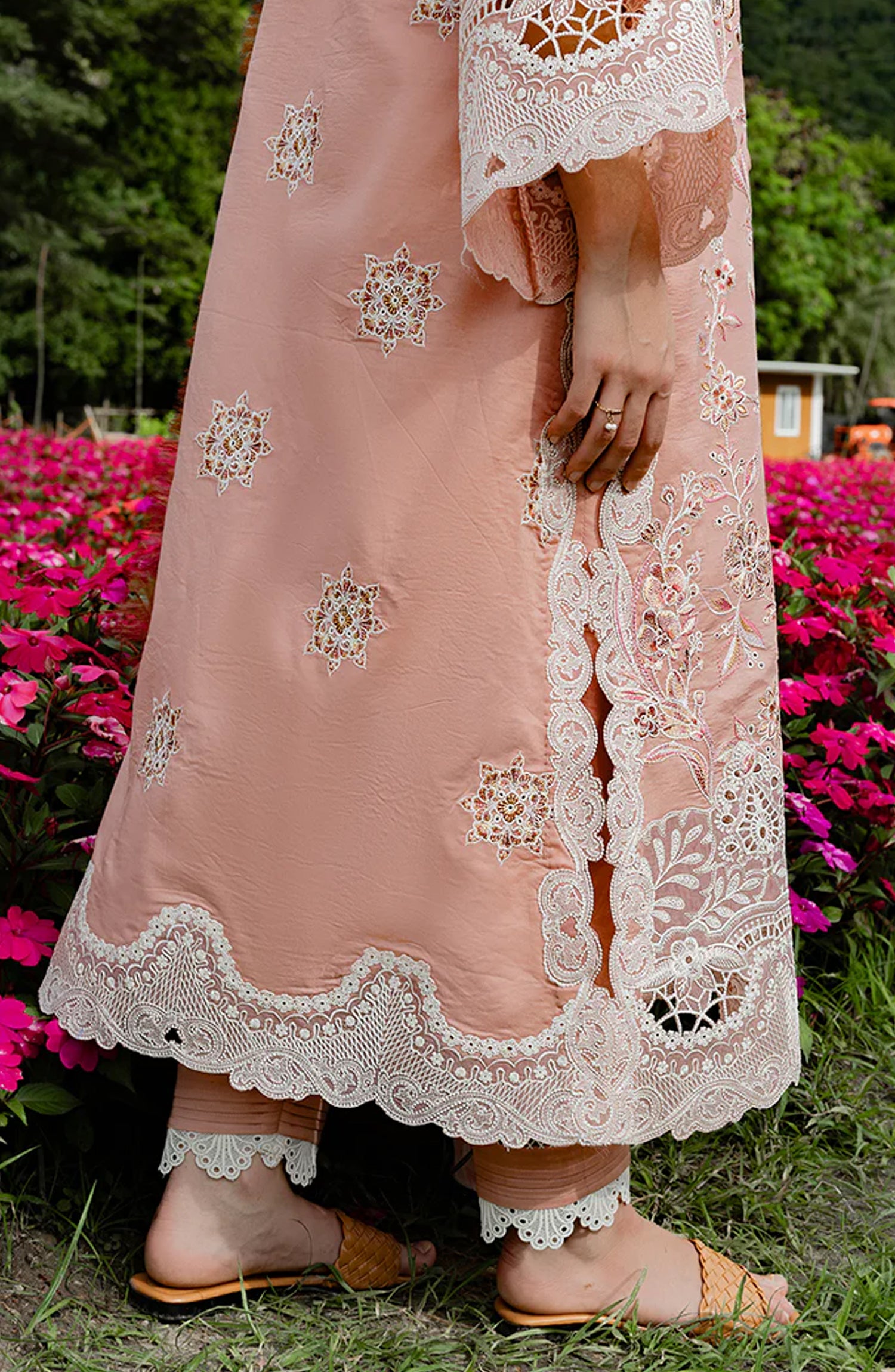 • Embroidered side slit lace (organza)