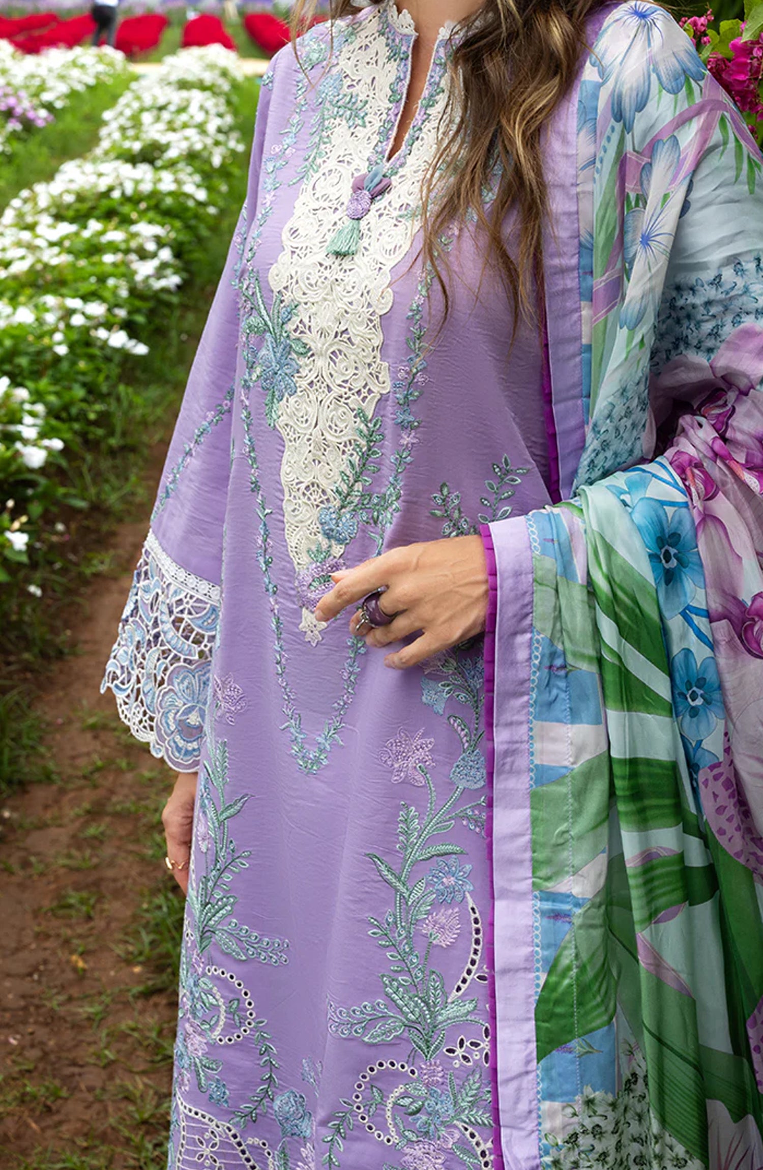 • Embroidered lawn sleeves